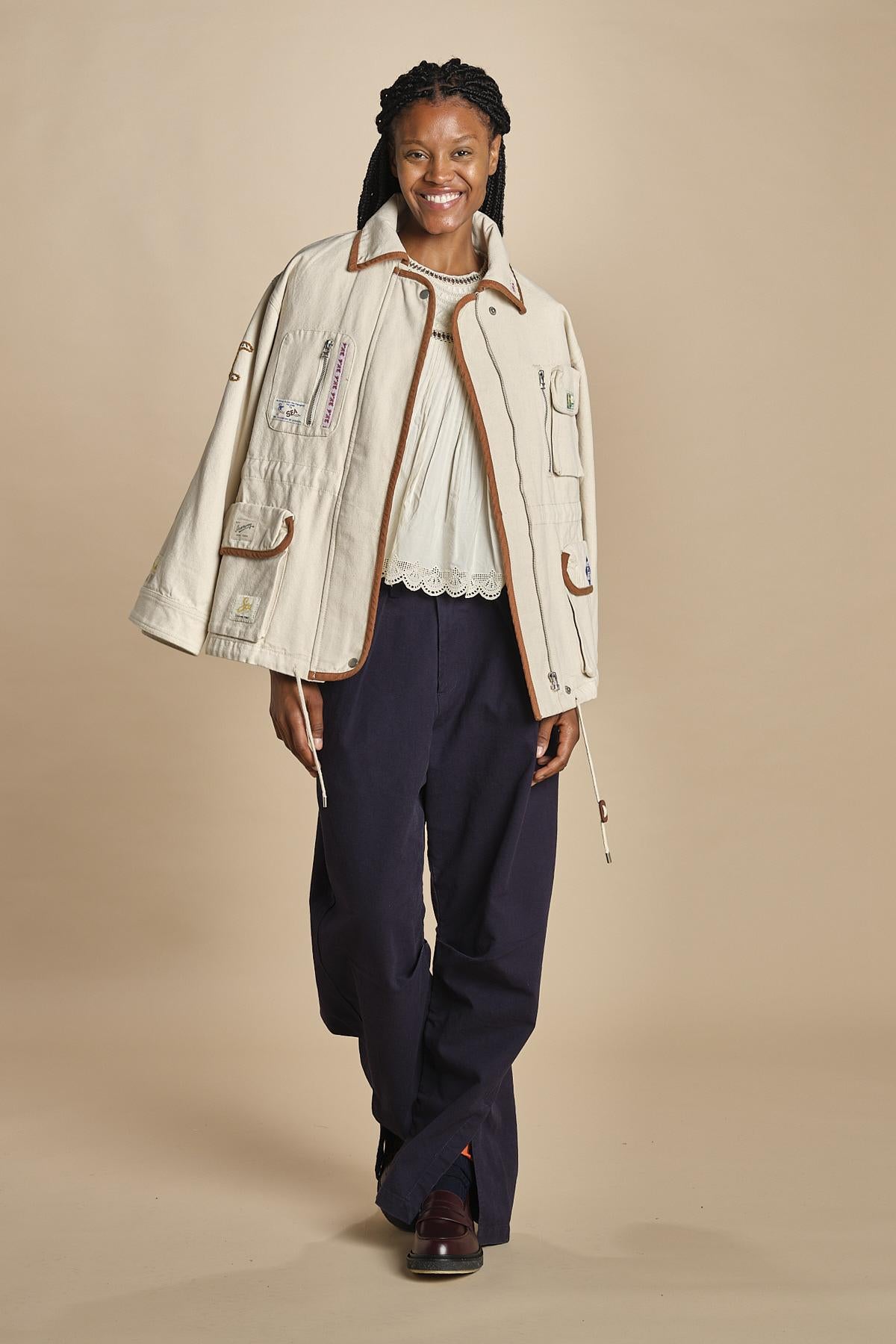 field jacket. La modella è alta 174 cm e indossa una taglia xs.