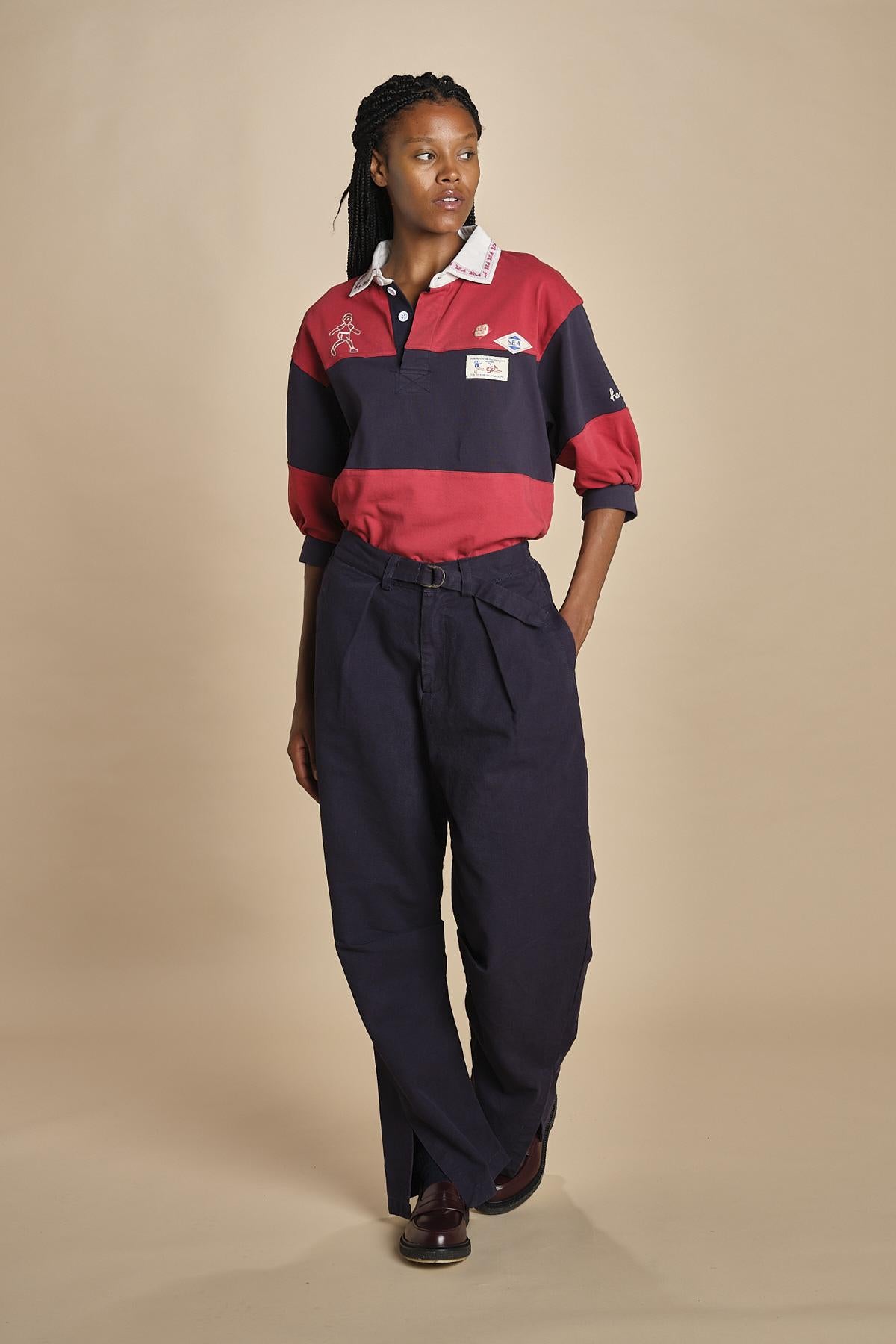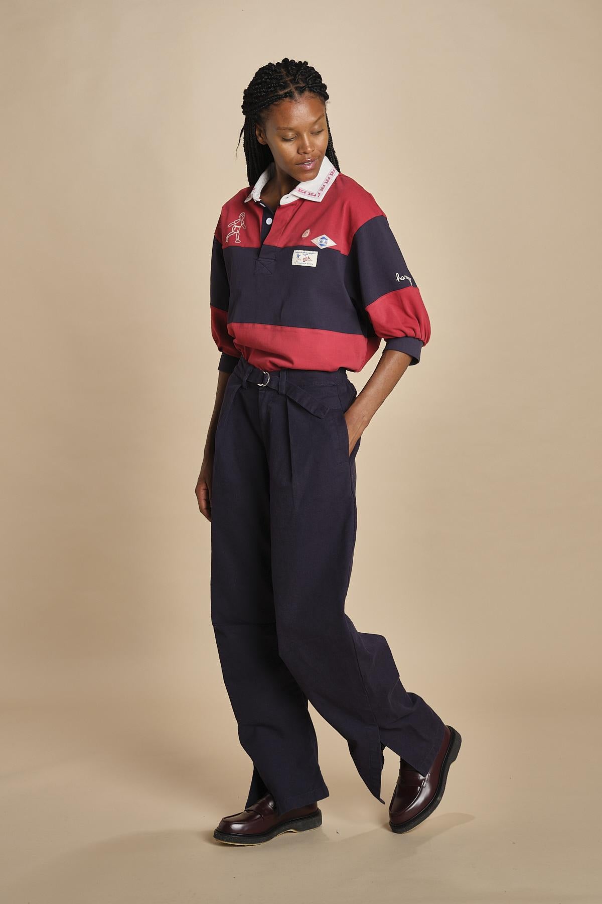 pantalone con cintura. La modella è alta 174 cm e indossa una taglia 0.