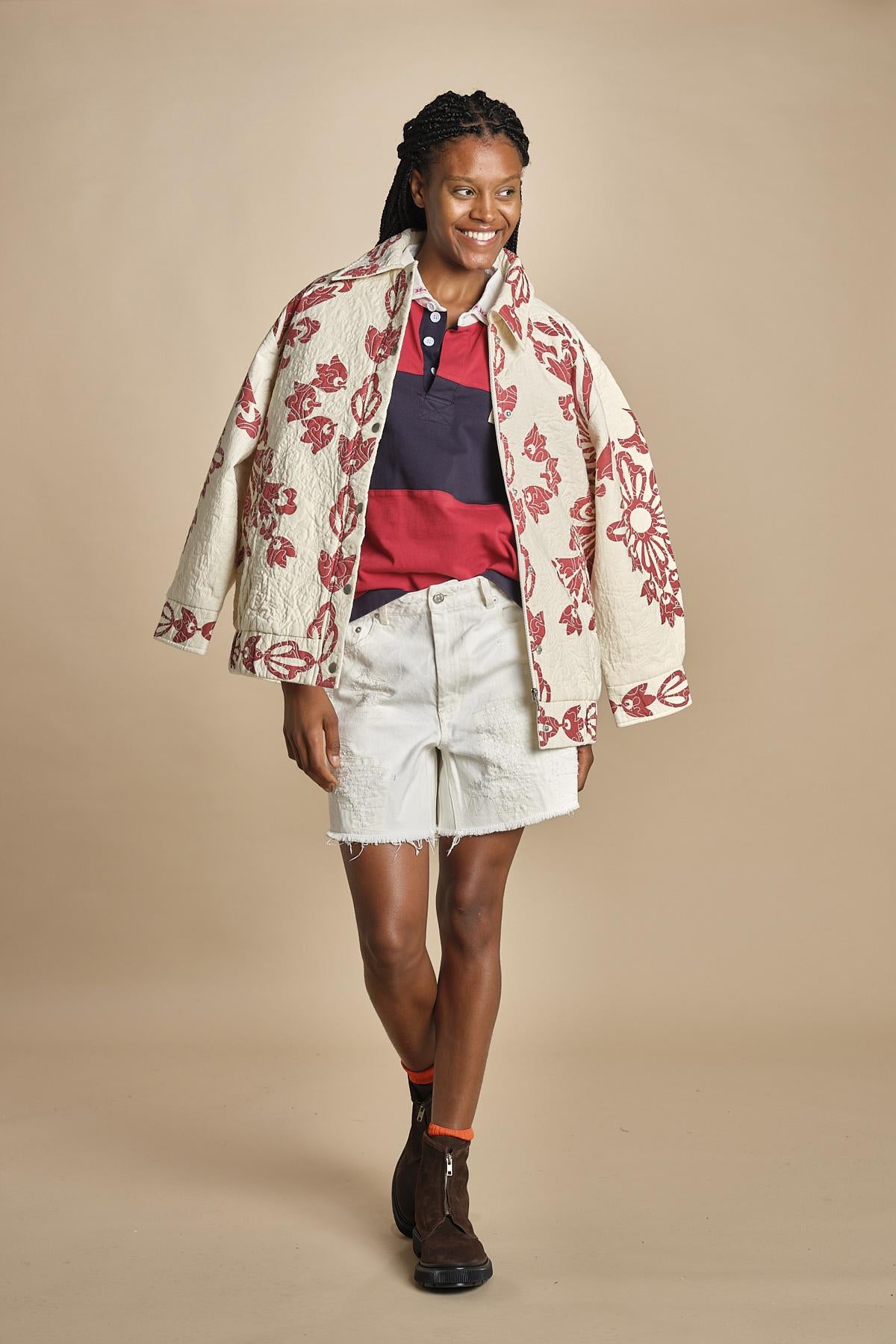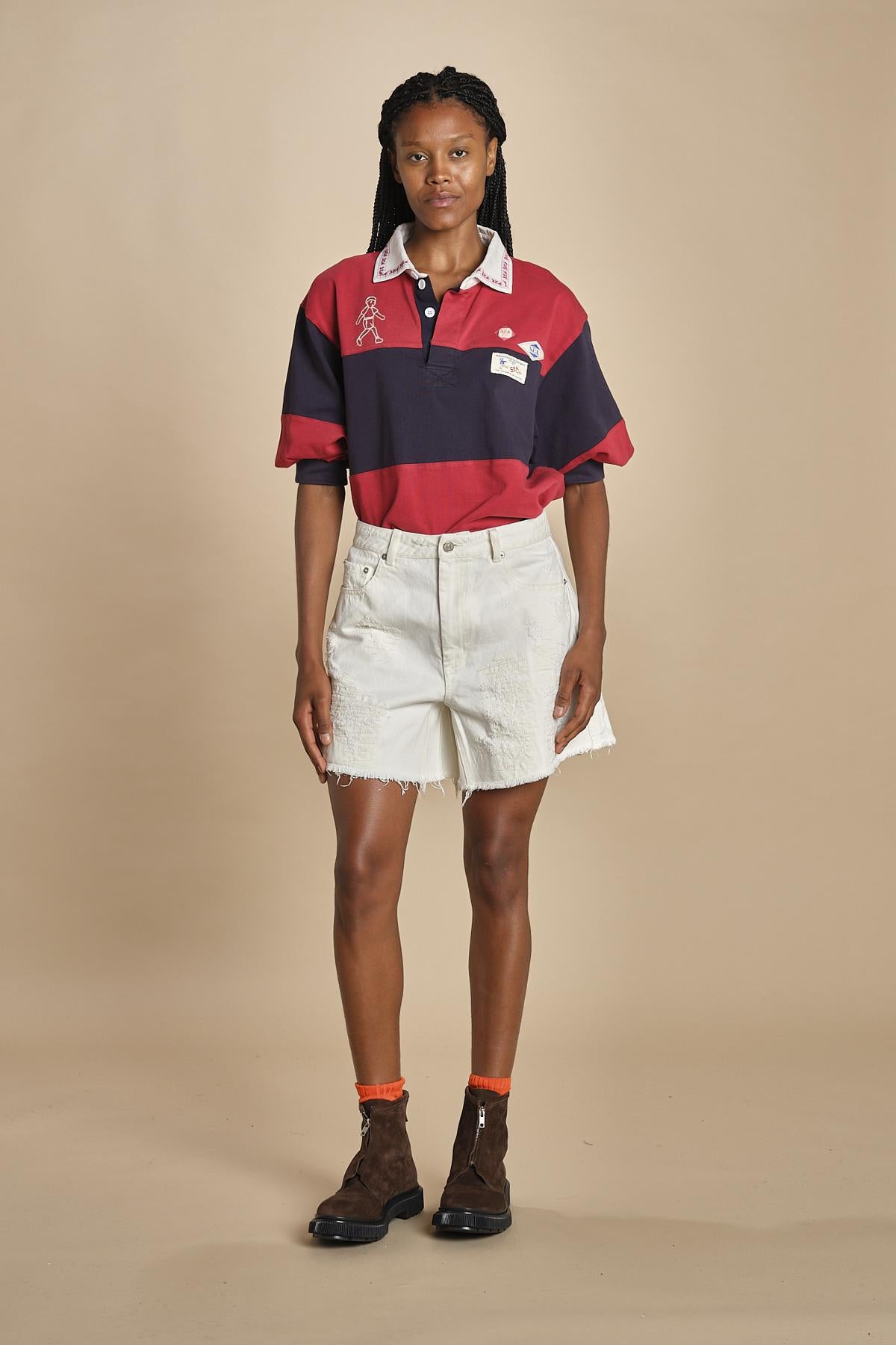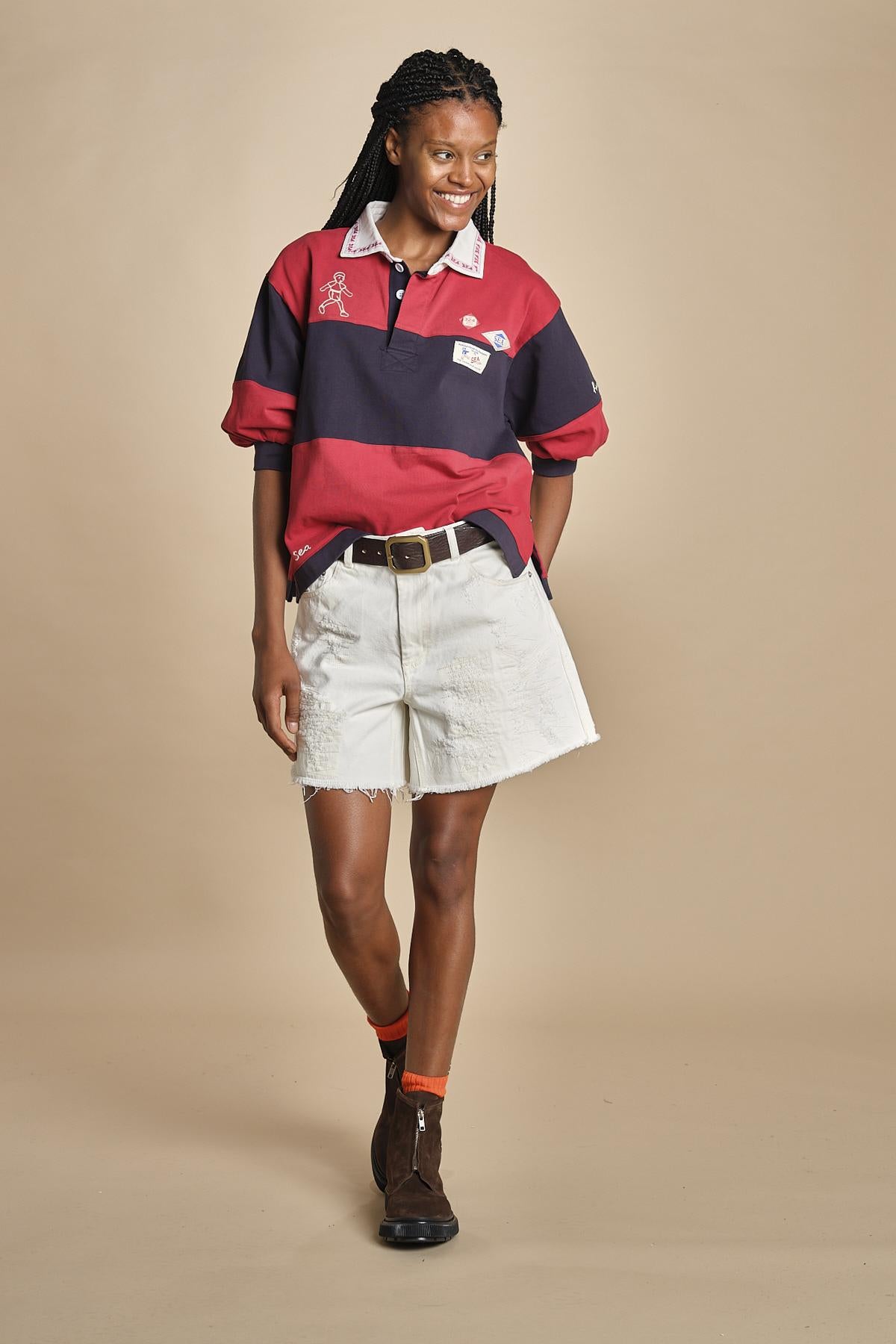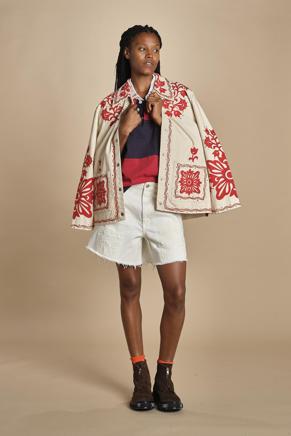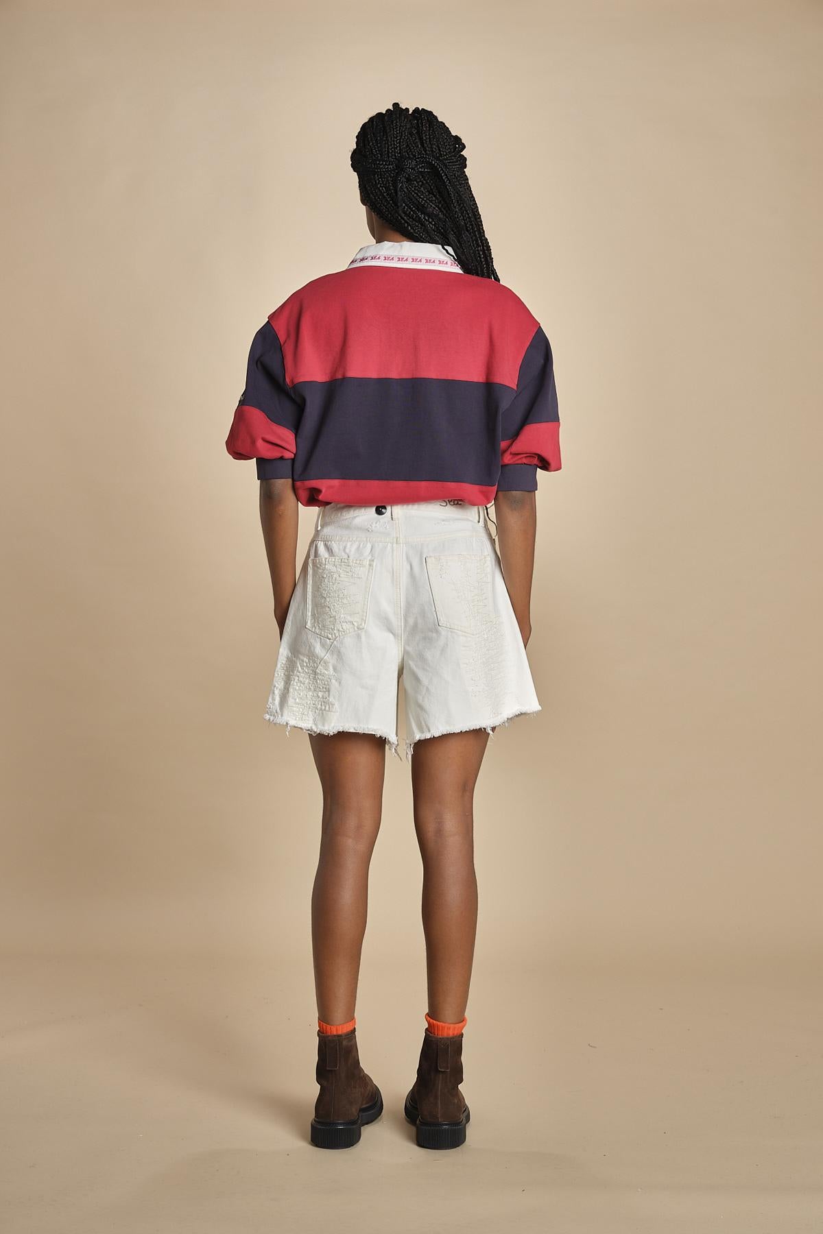 bermuda ricamato. La modella è alta 174 cm e indossa una taglia 2