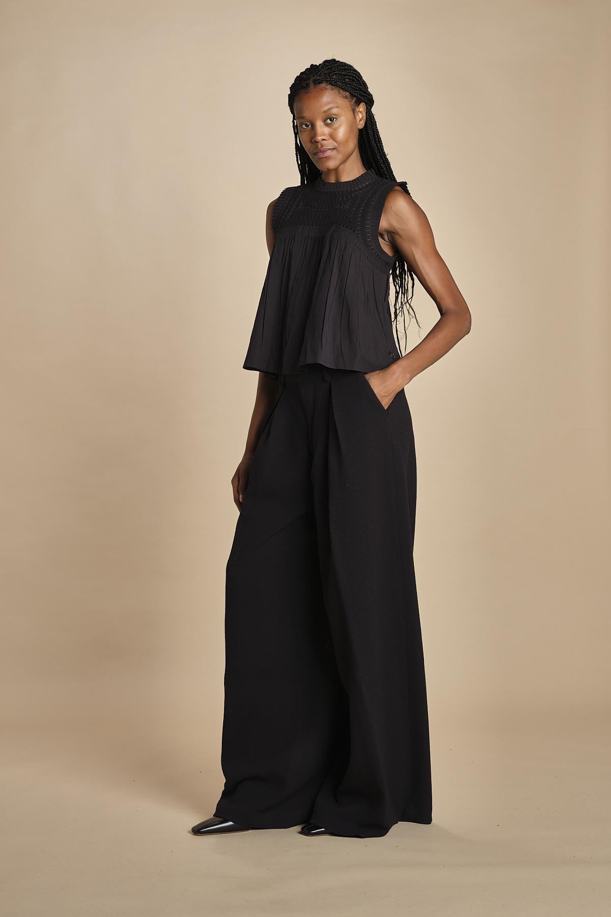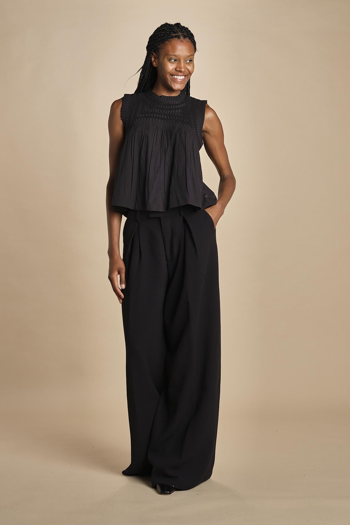 top plisse senza maniche