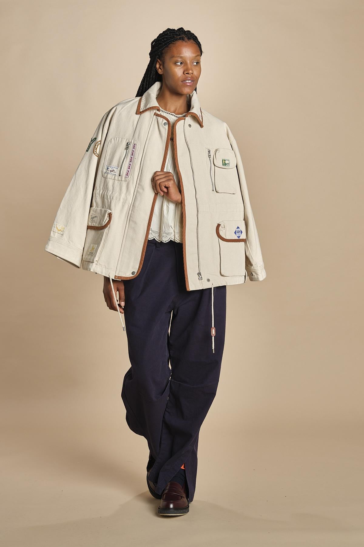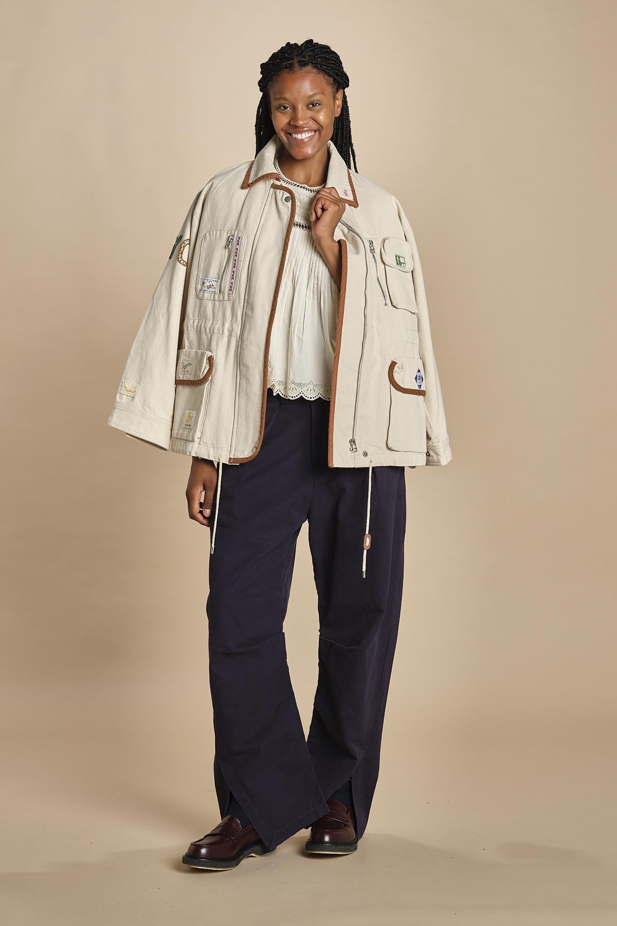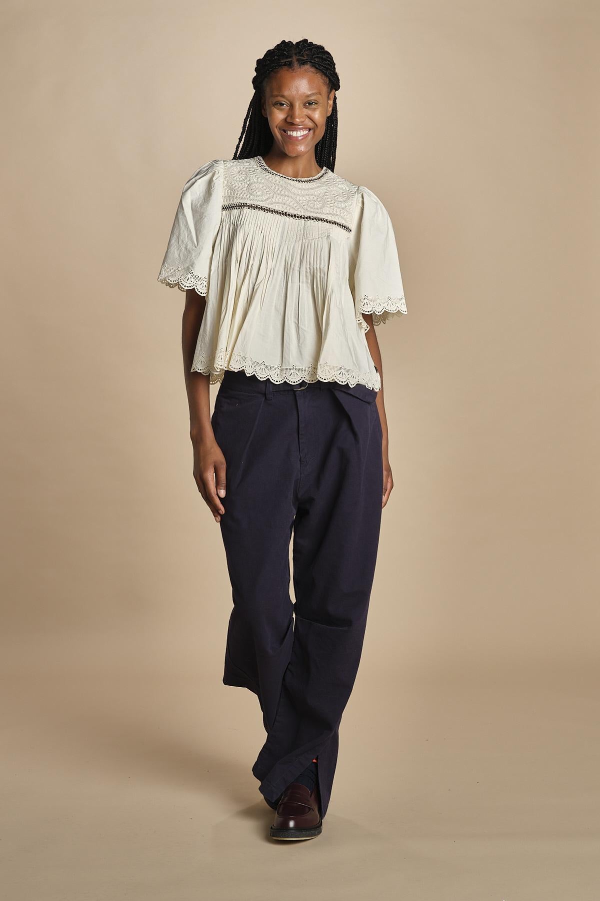 top manica corta con ricami. La modella 174 cm e indossa una taglia xs.