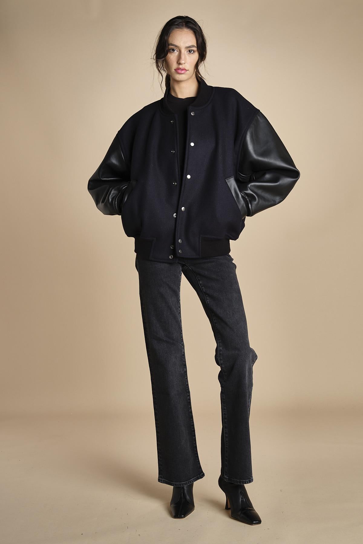 denim a vita bassa by frame. La modella è alta 180 cm e indossa la taglia 26