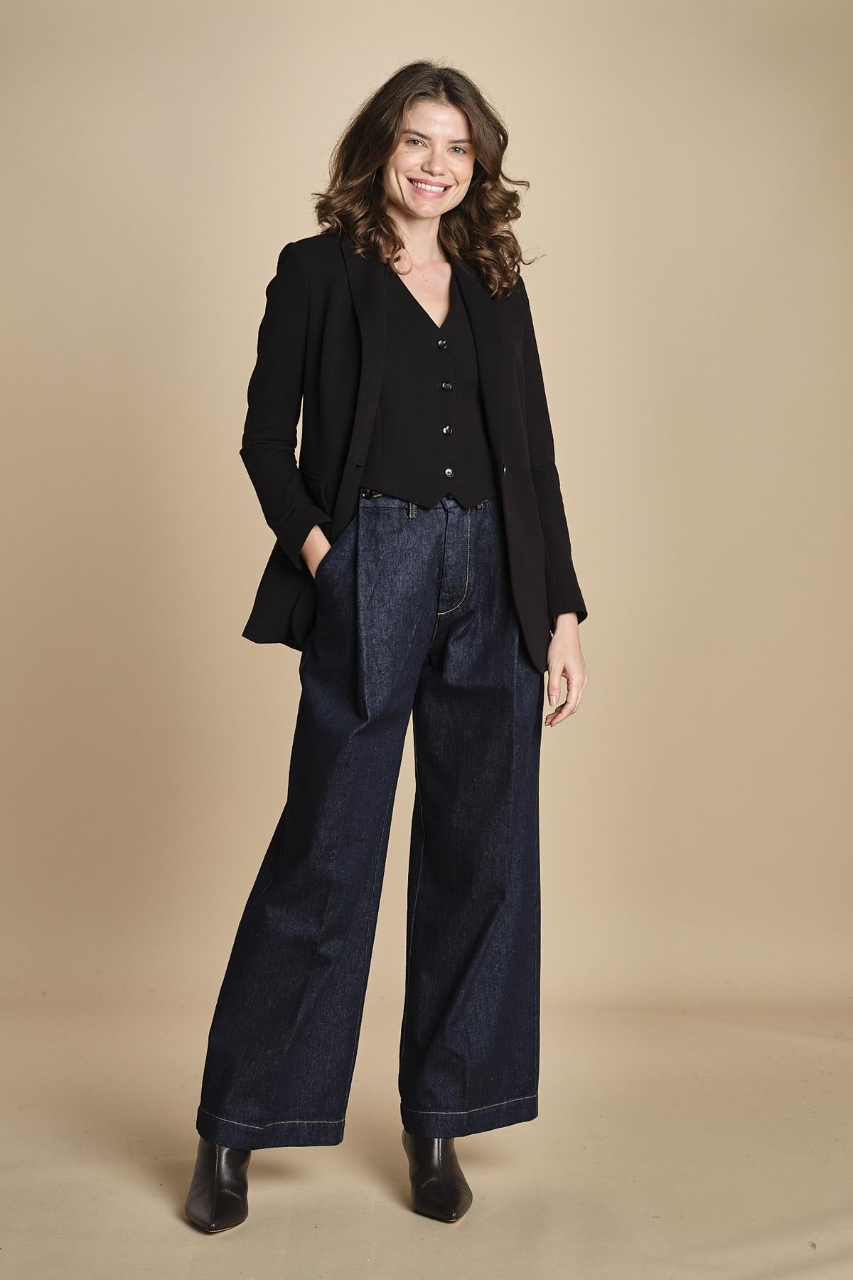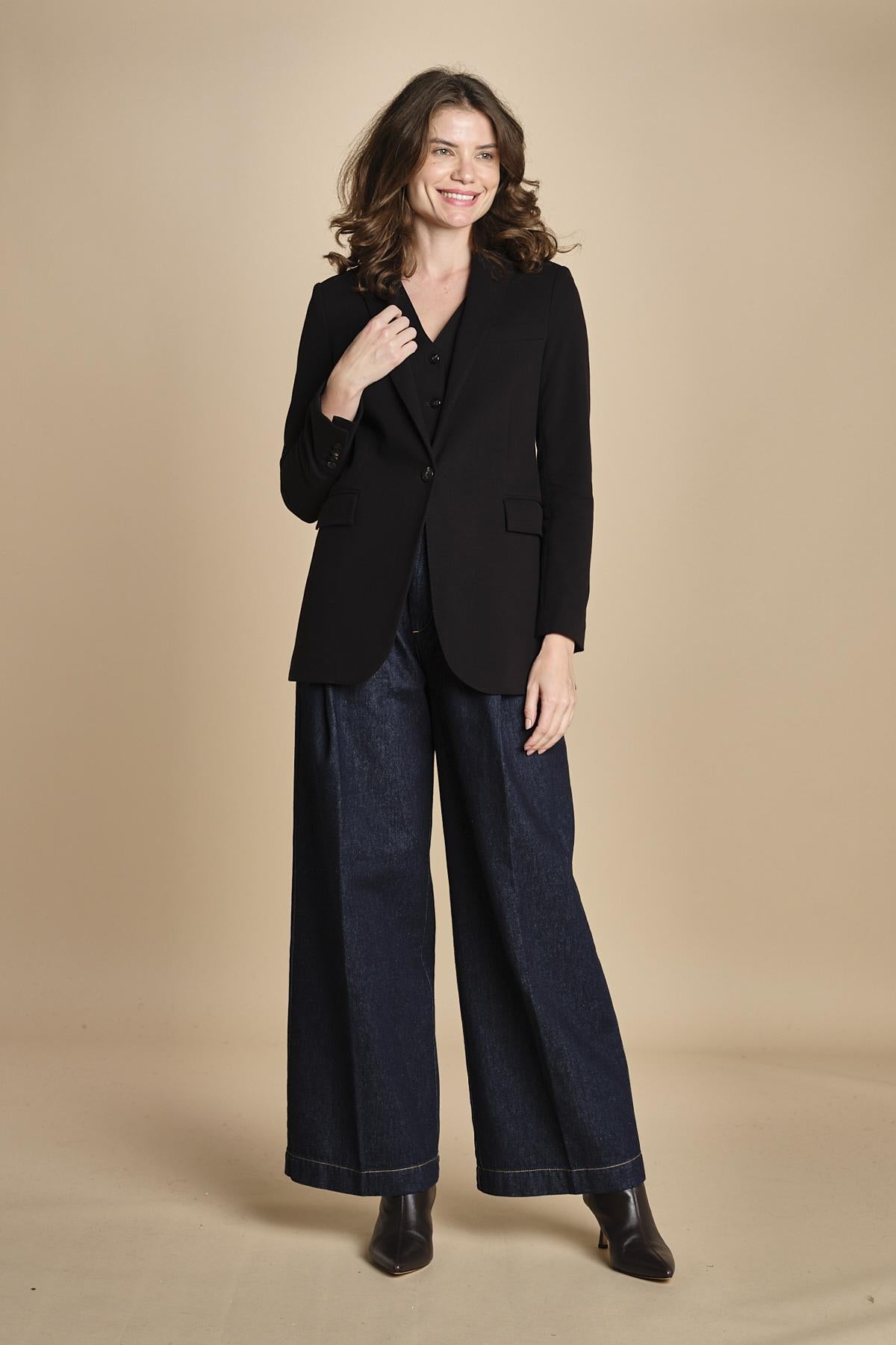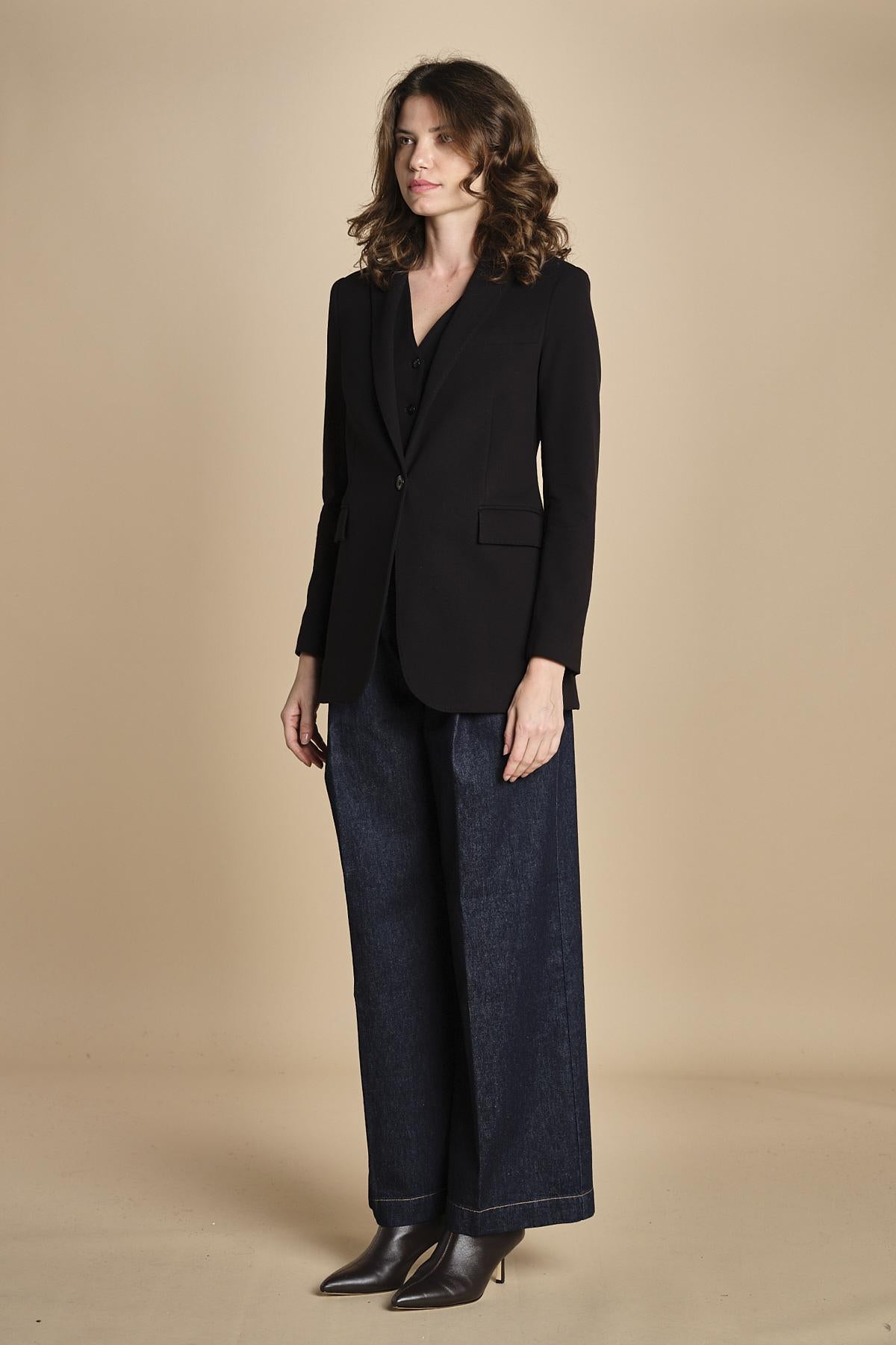 giacca monopetto in felpa un bottone. La modella è alta 176 cm e indossa una taglia 40. 87% COTONE 13% ELASTANE