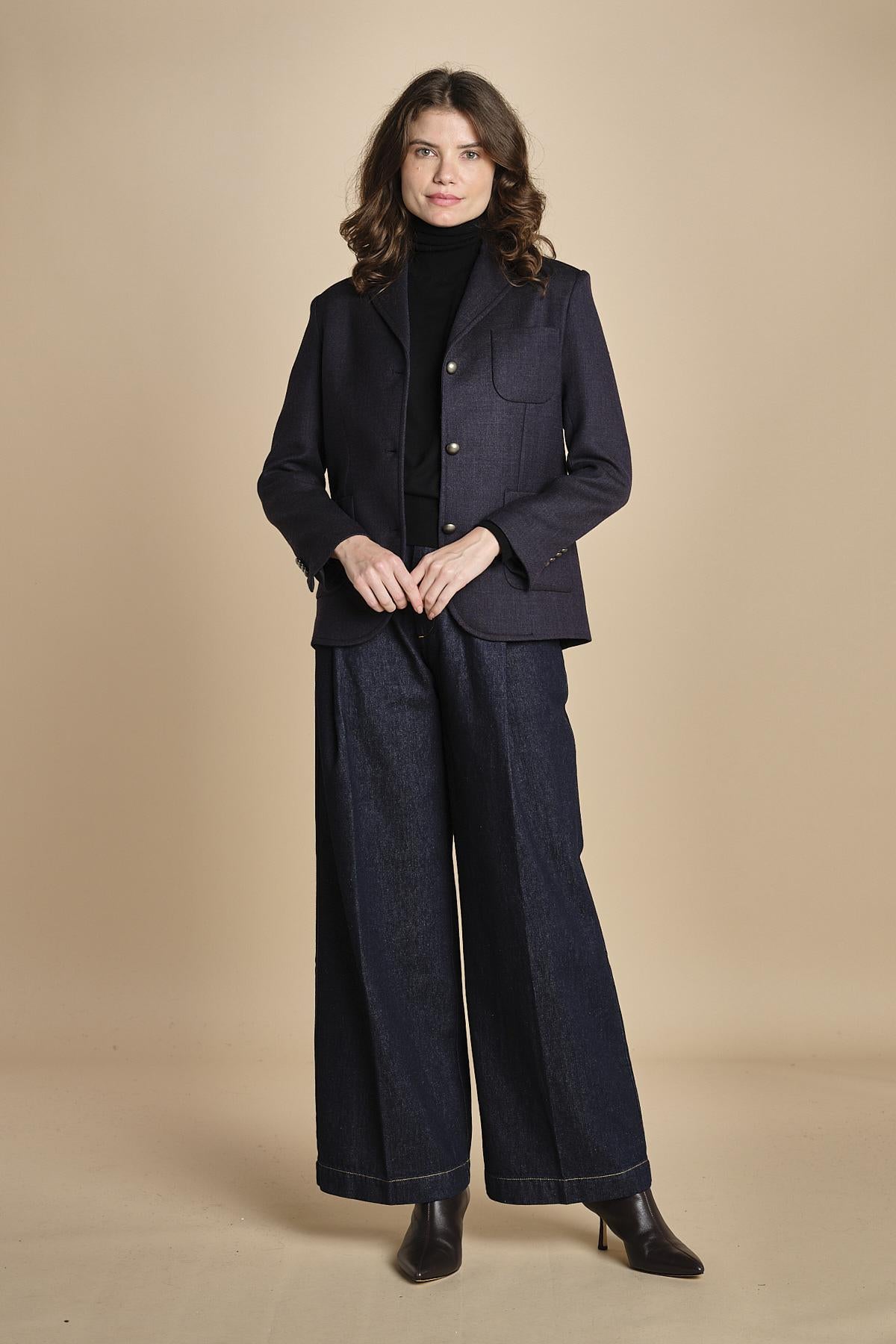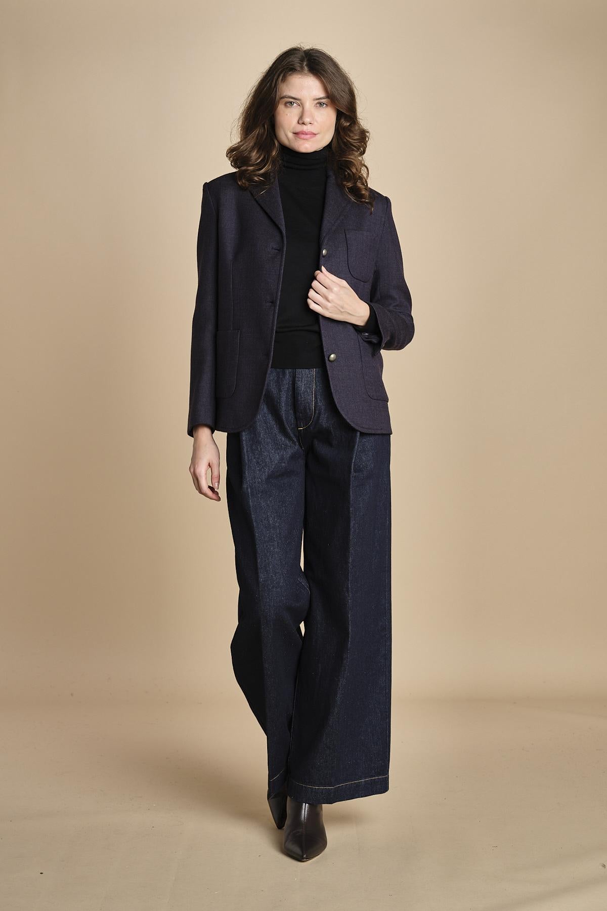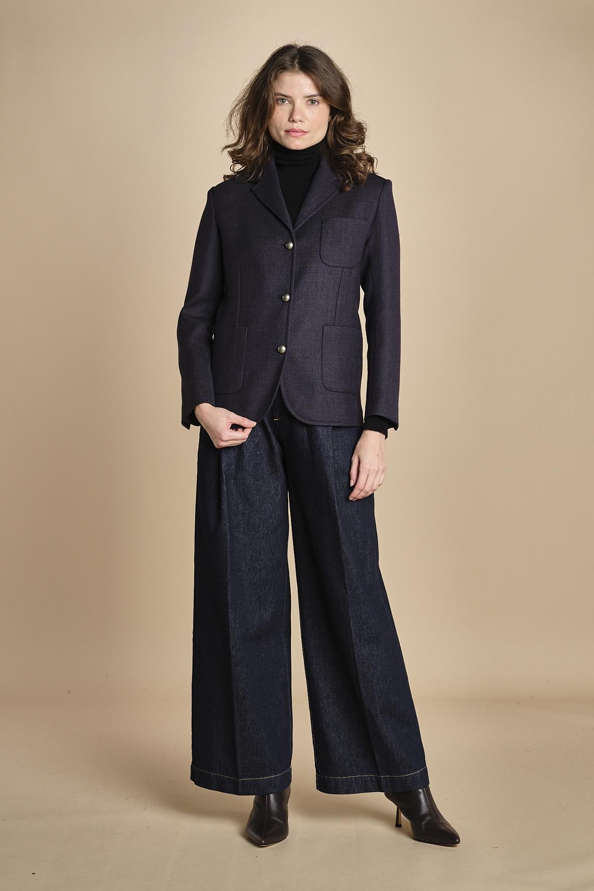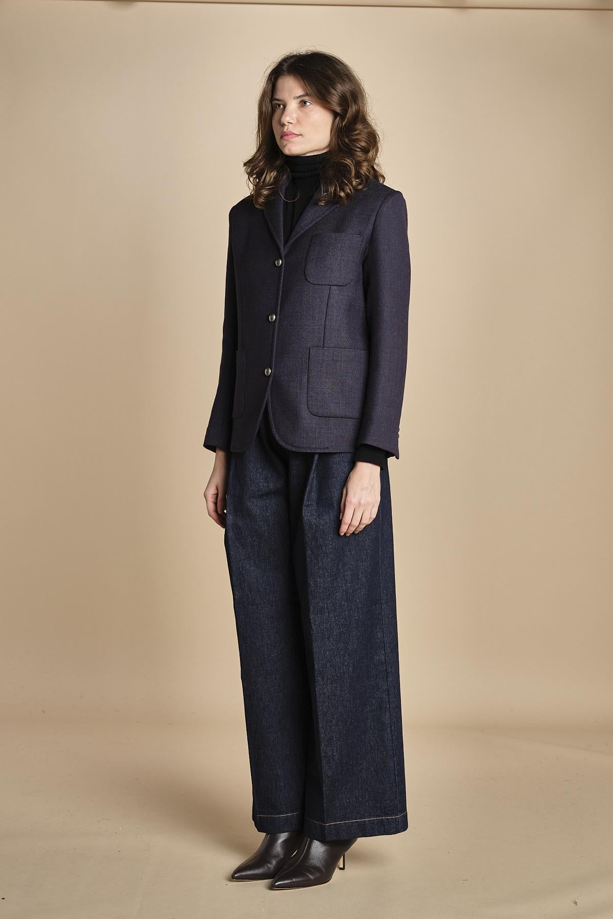 monopetto in lana a tre bottoni. La modella è alta 176 cm e indossa una taglia 40. 100% LANA