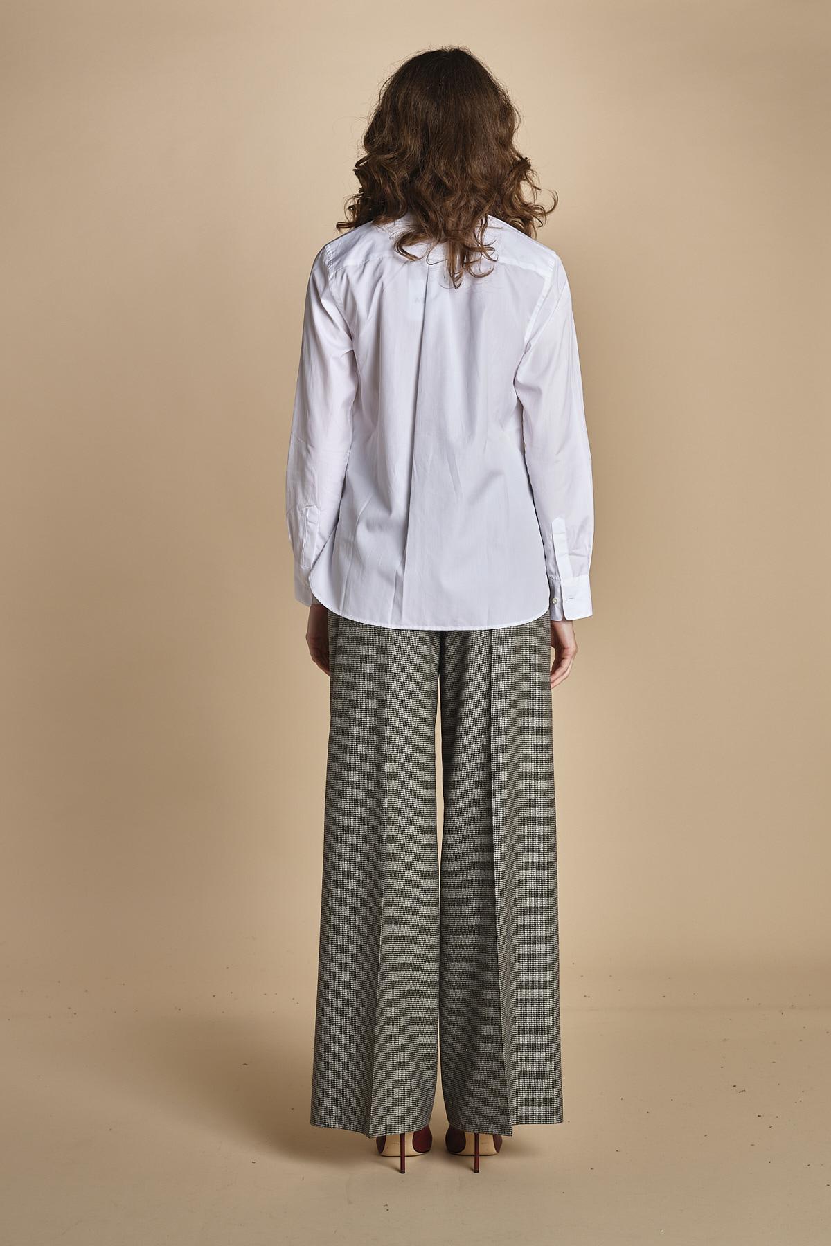 camicia con rouches. La modella è alta 176 cm e indossa una taglia 40. 100% COTONE