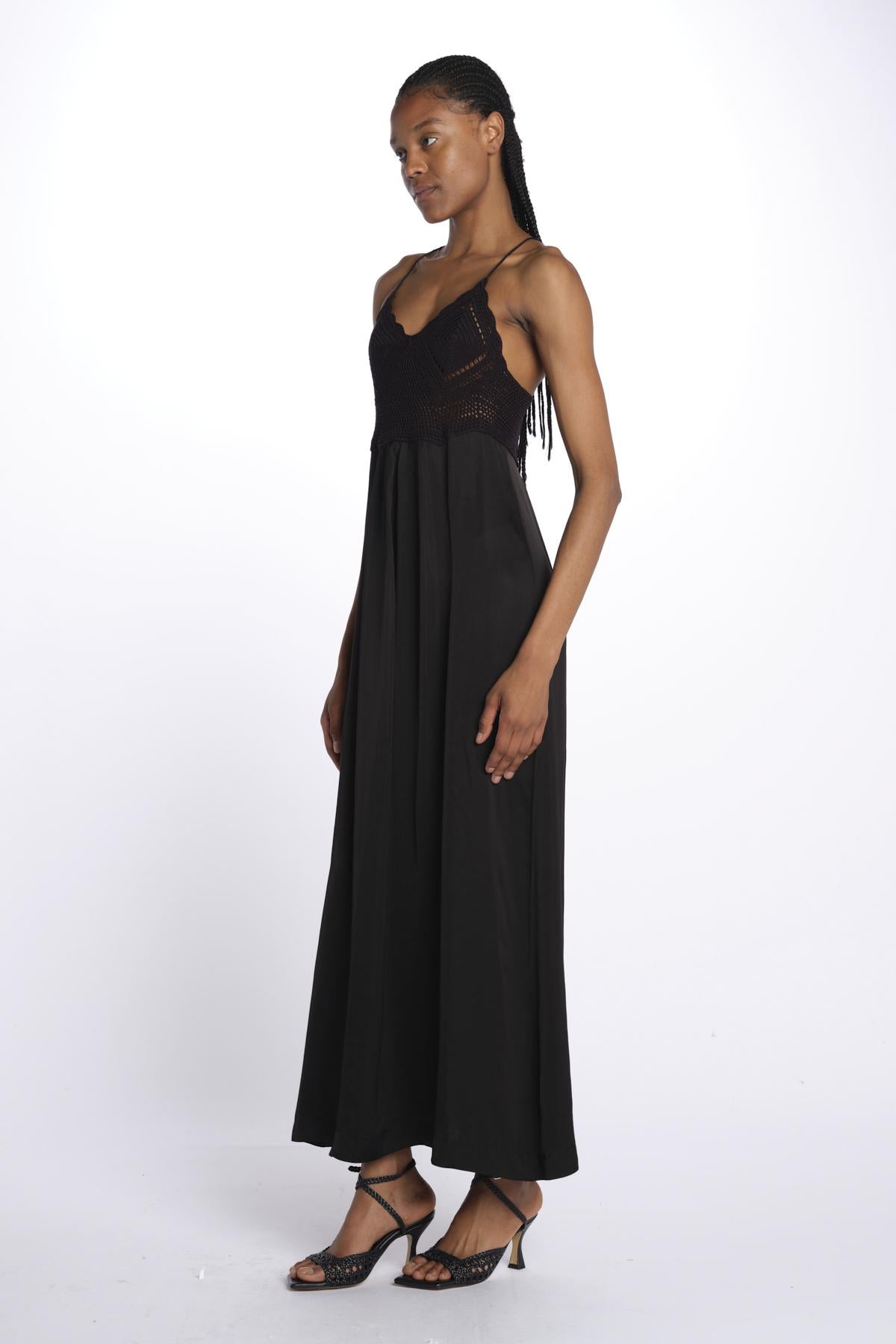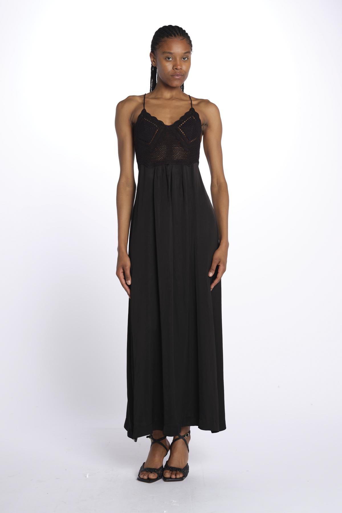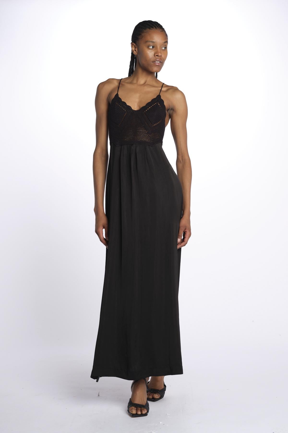 Crochet+satin dress by lvir. The model is 174 cm tall and wears a S. Composition: 100% cotton.