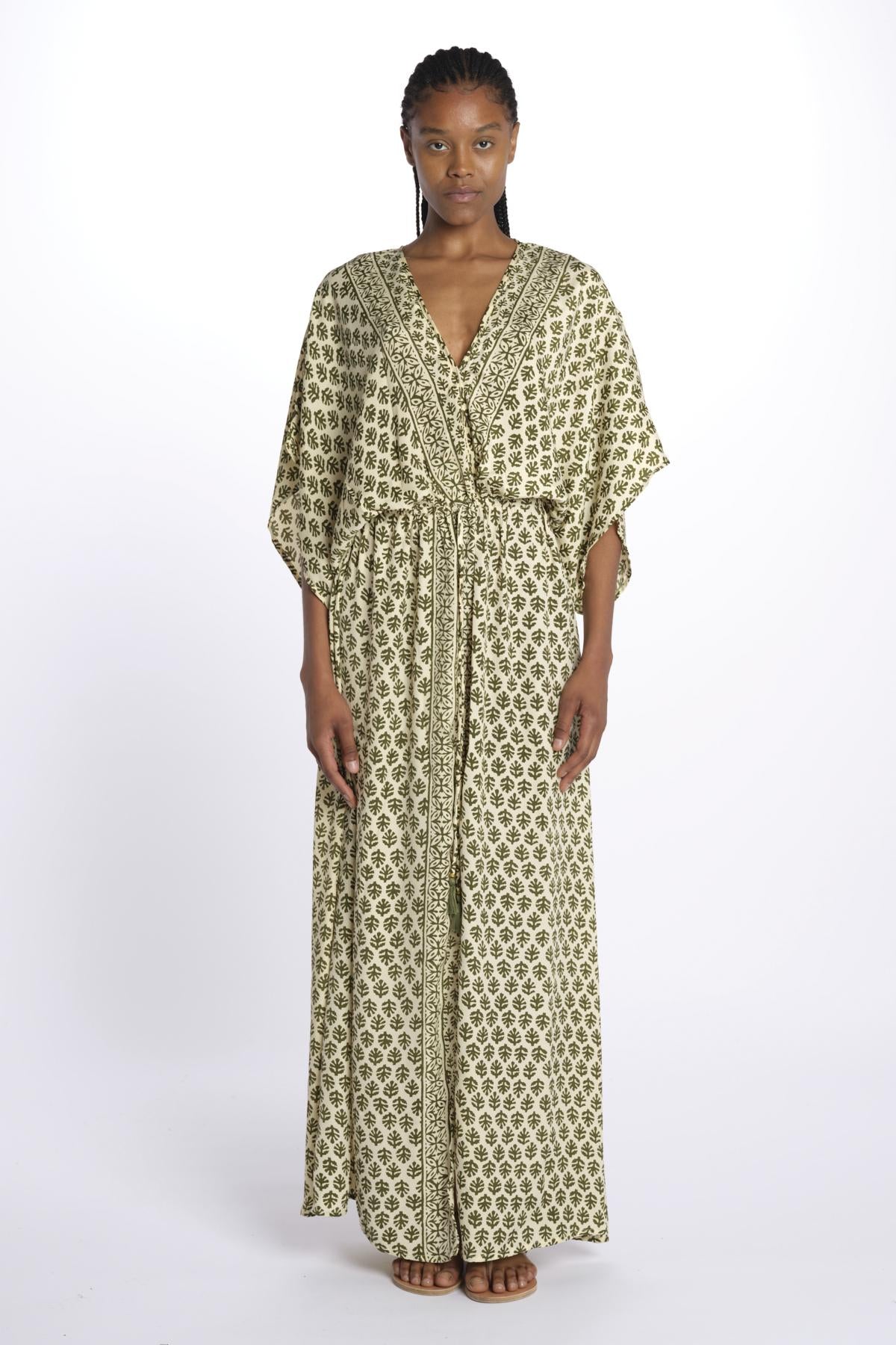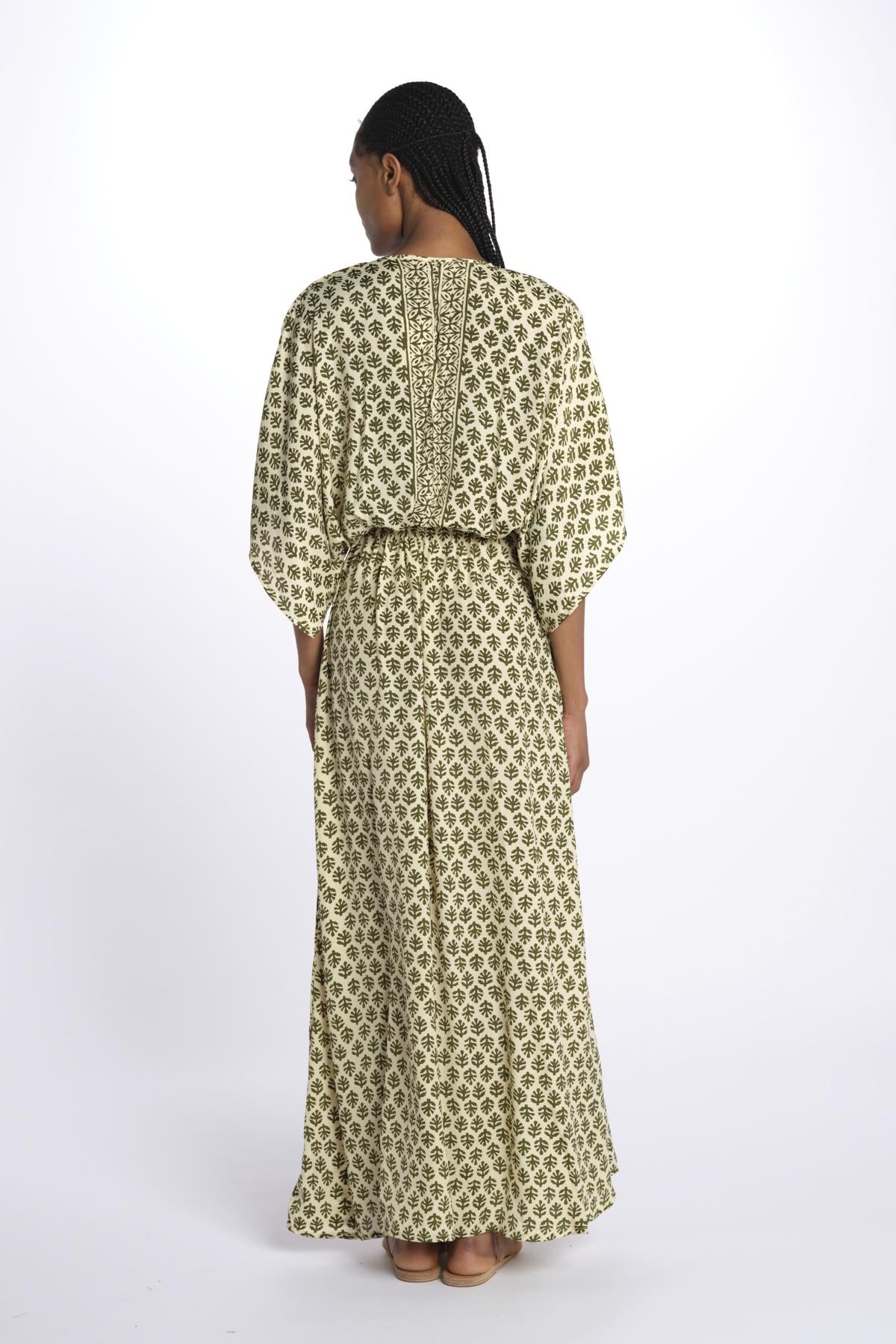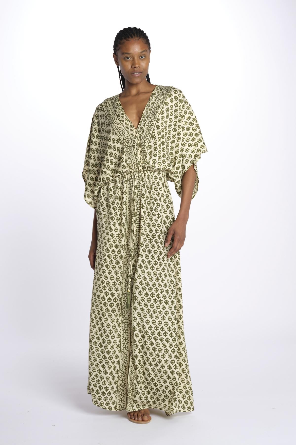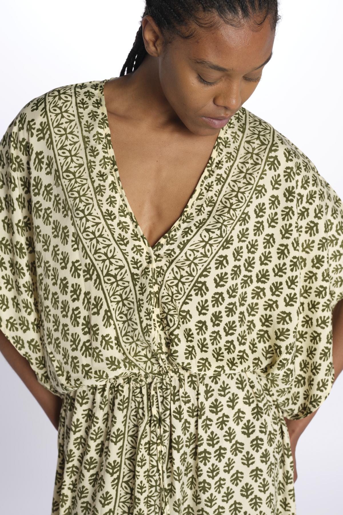 ANTOINETTE abito impero con stampa foglie ANTOINETTE INDIAN KAKI laraethnics