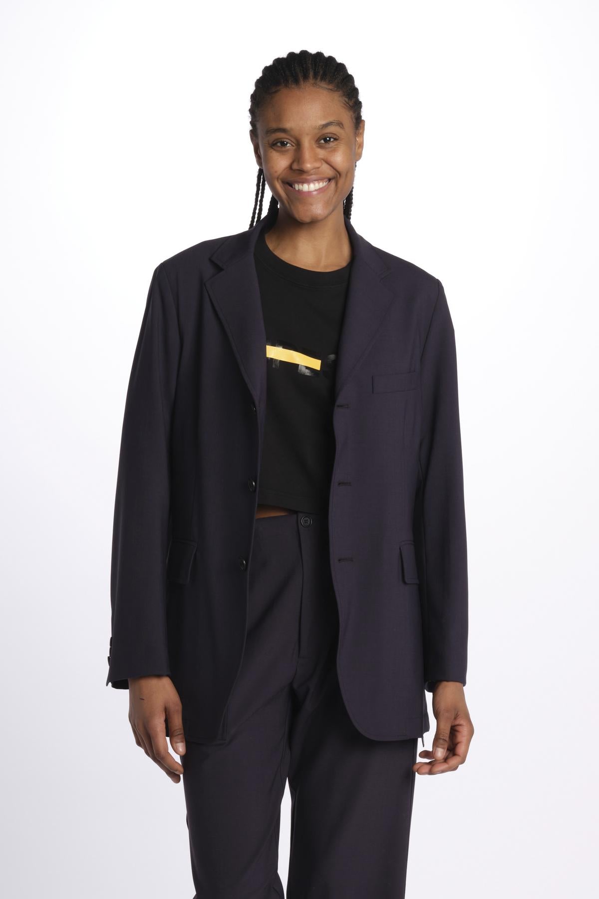 Blazer Over by aspesi. The model is 174 cm tall and wears an XS. Composition: 53% polyester, 43% wool, 4% elastane.