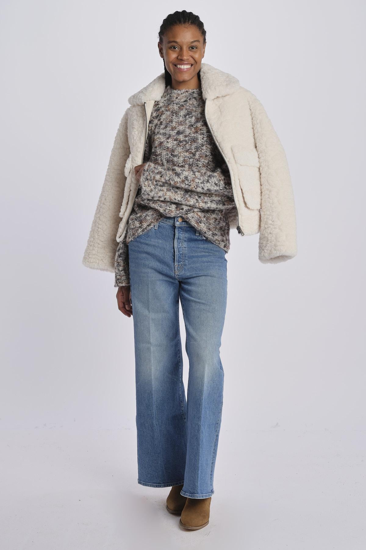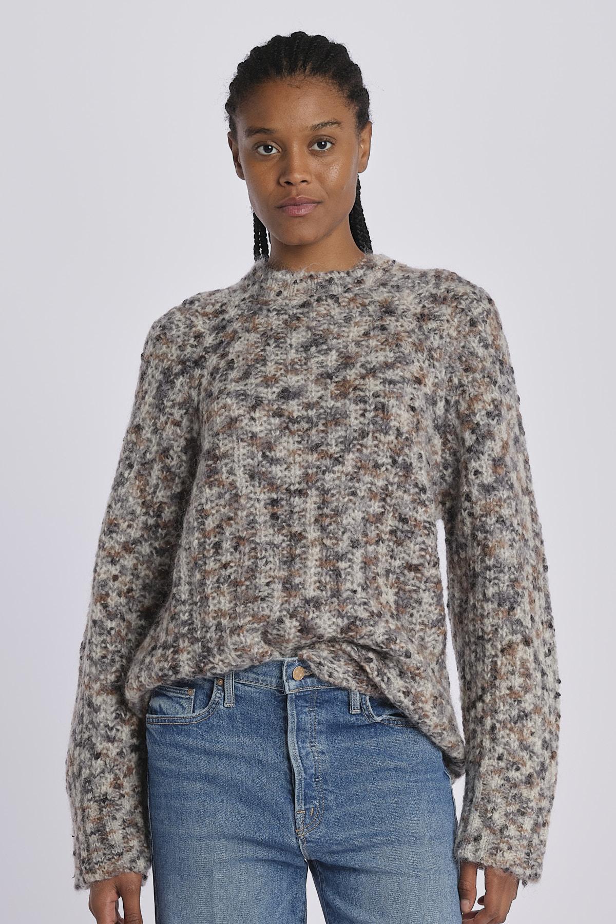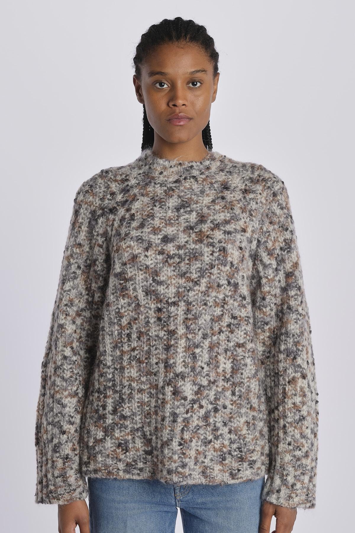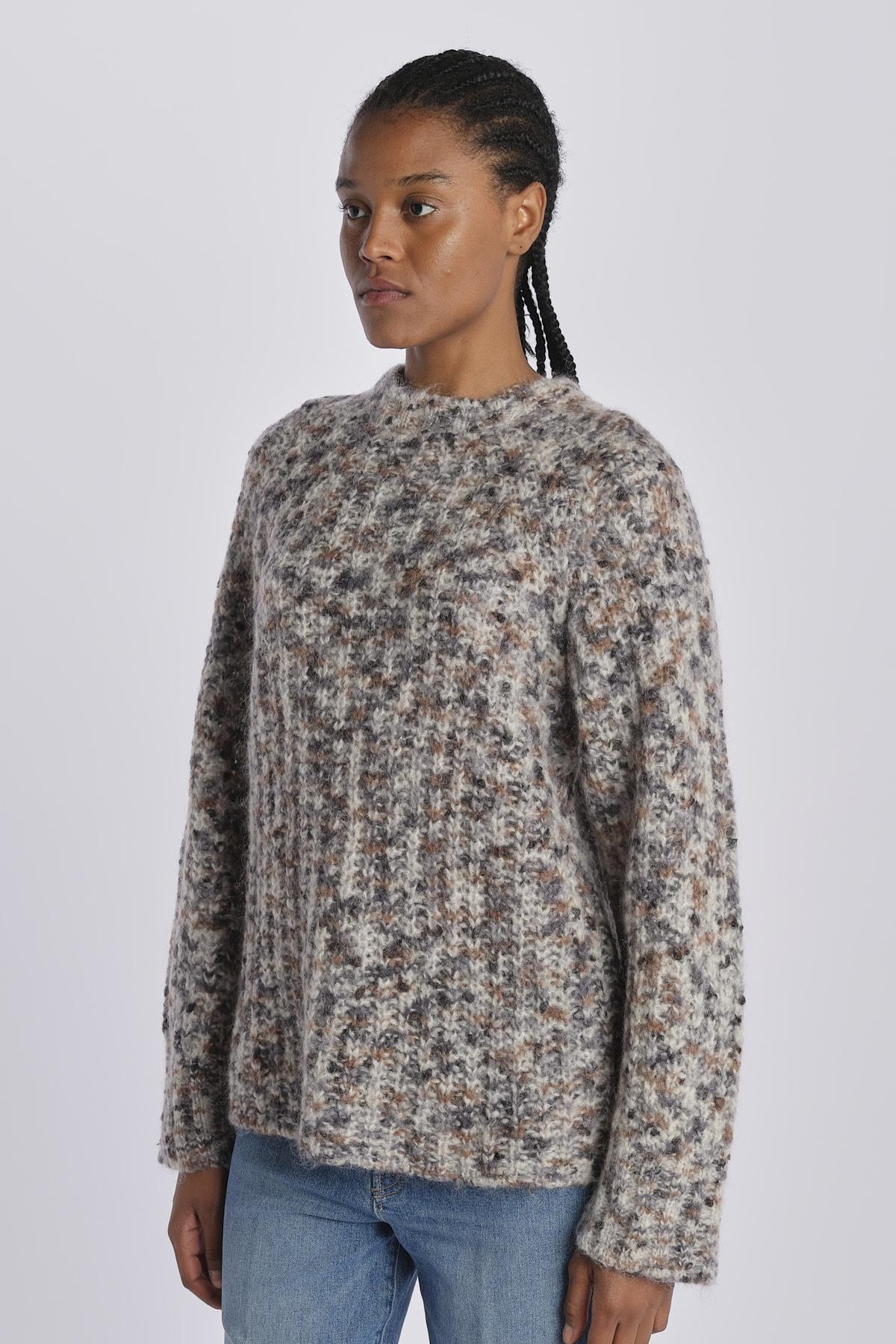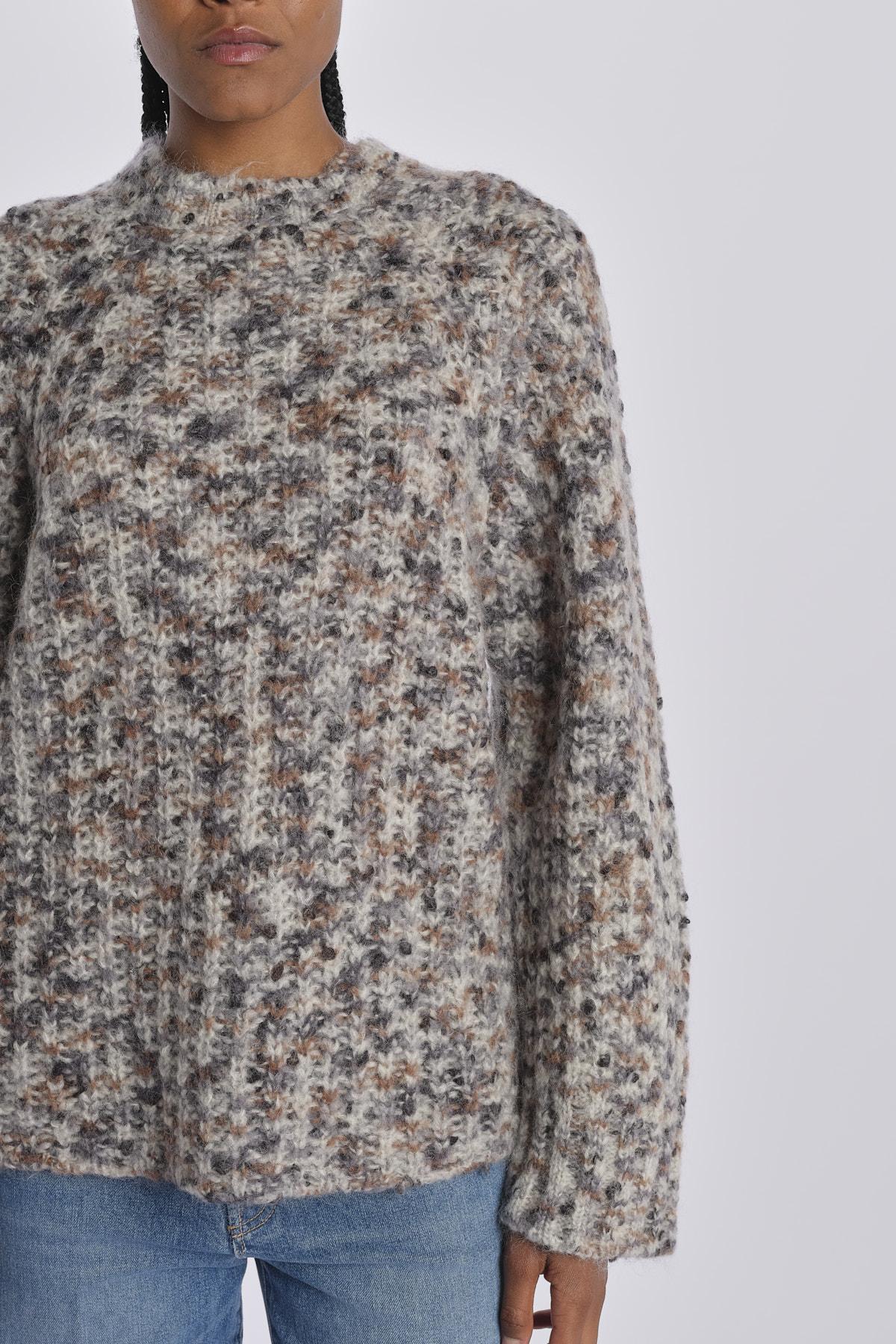 Sweater by Attic and barn multicolor muliné. The model is 174 cm tall and wears size S. Composition: 40% Wool, 35% Mohair,13% Polyamide,11% Cotton.