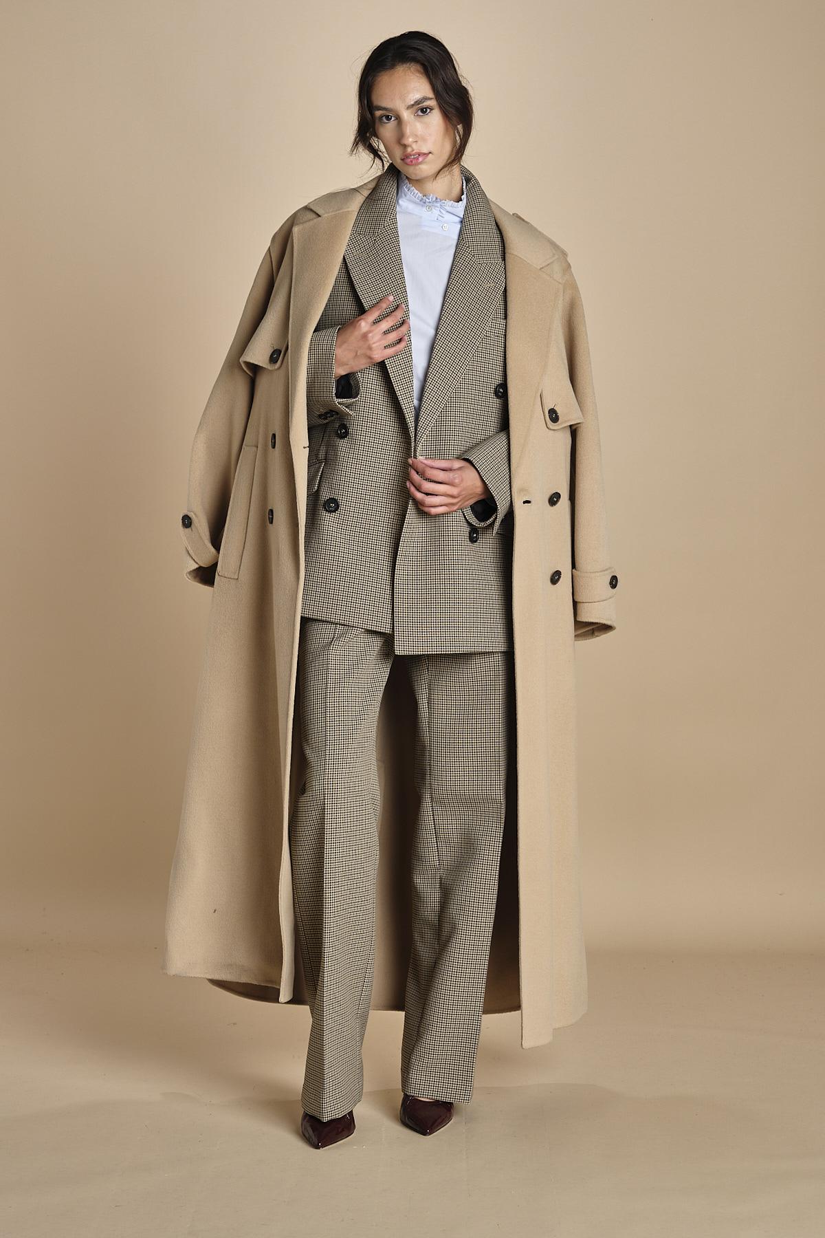 pantalone in piede de poule. La modella è alta 180 cm e indossa una taglia 38.100% POLIESTERE