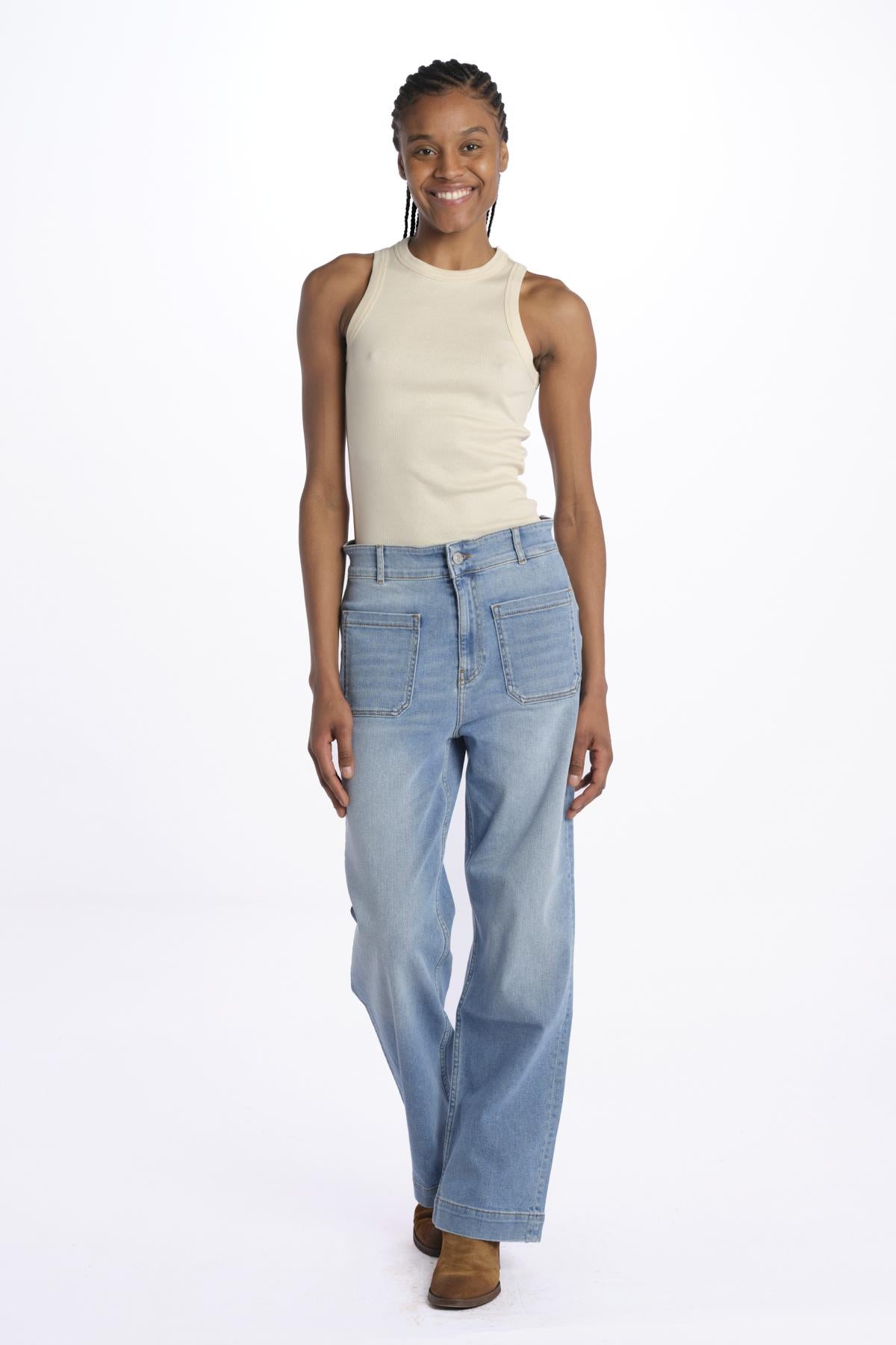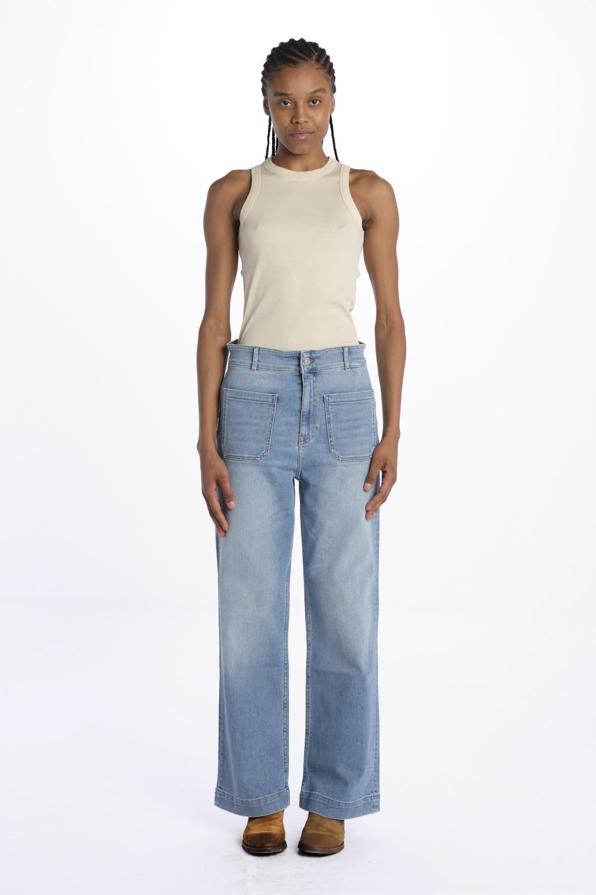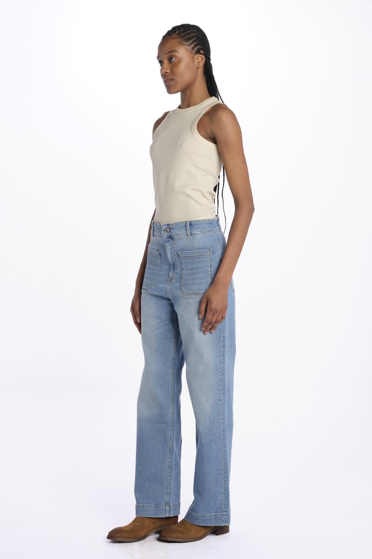 Demin PRESTON with pockets by bellerose. The model is 174 cm tall and wears a 26 (IT40). Composition: 99% cotton, 1% elastane.