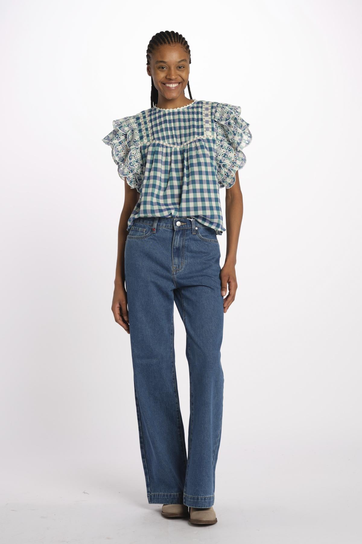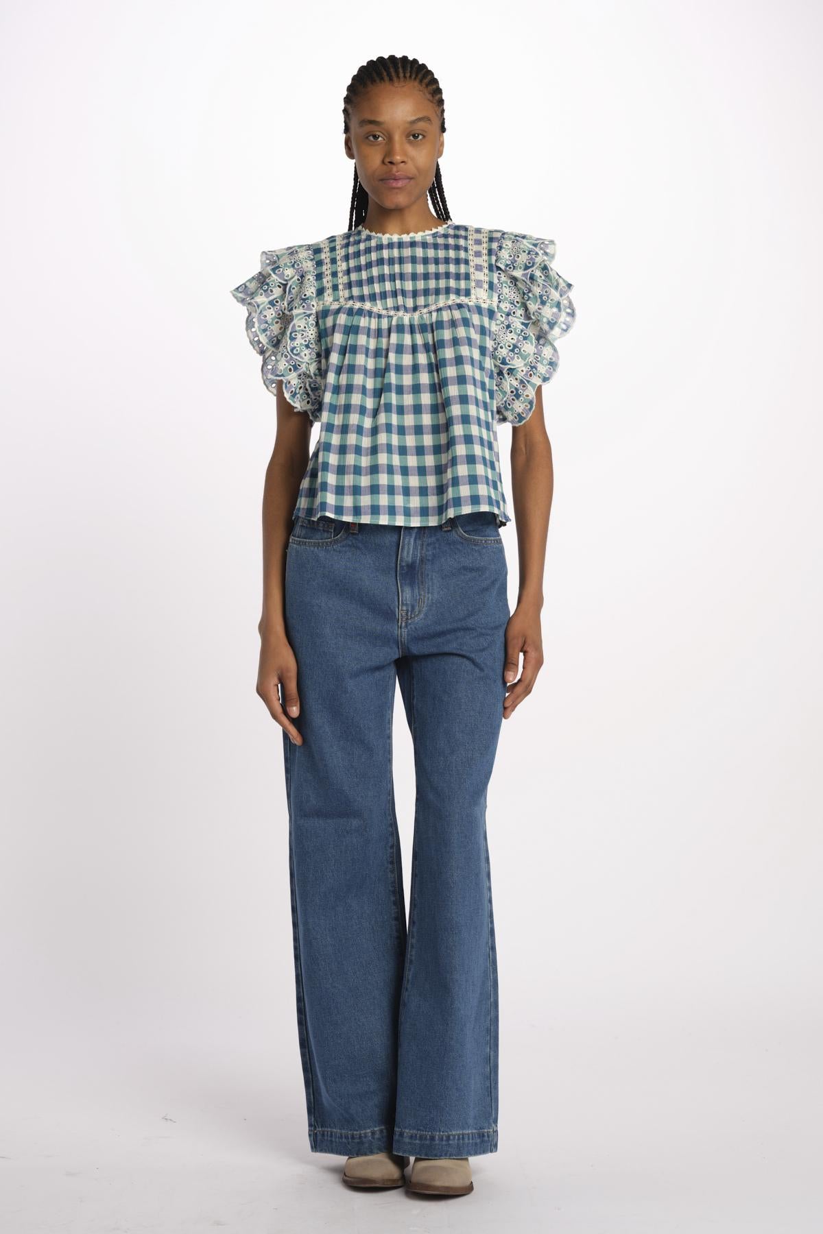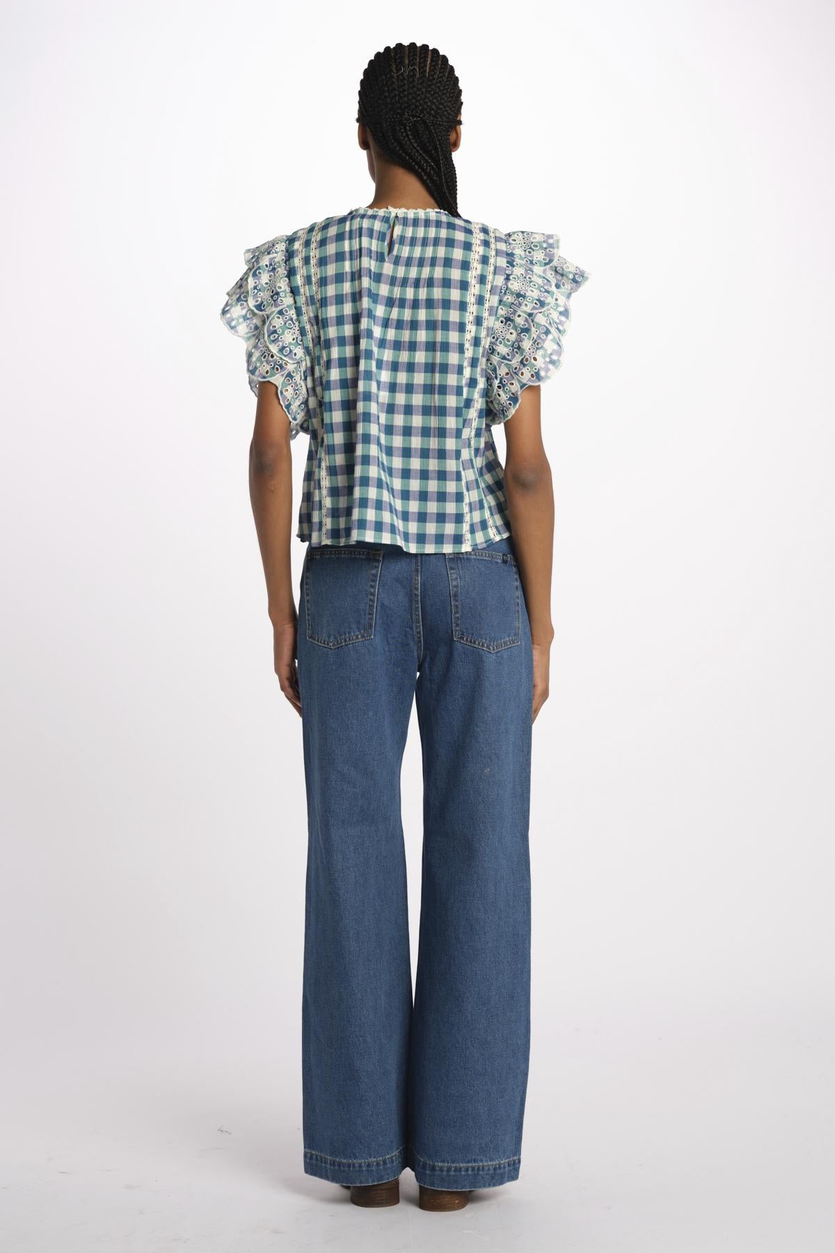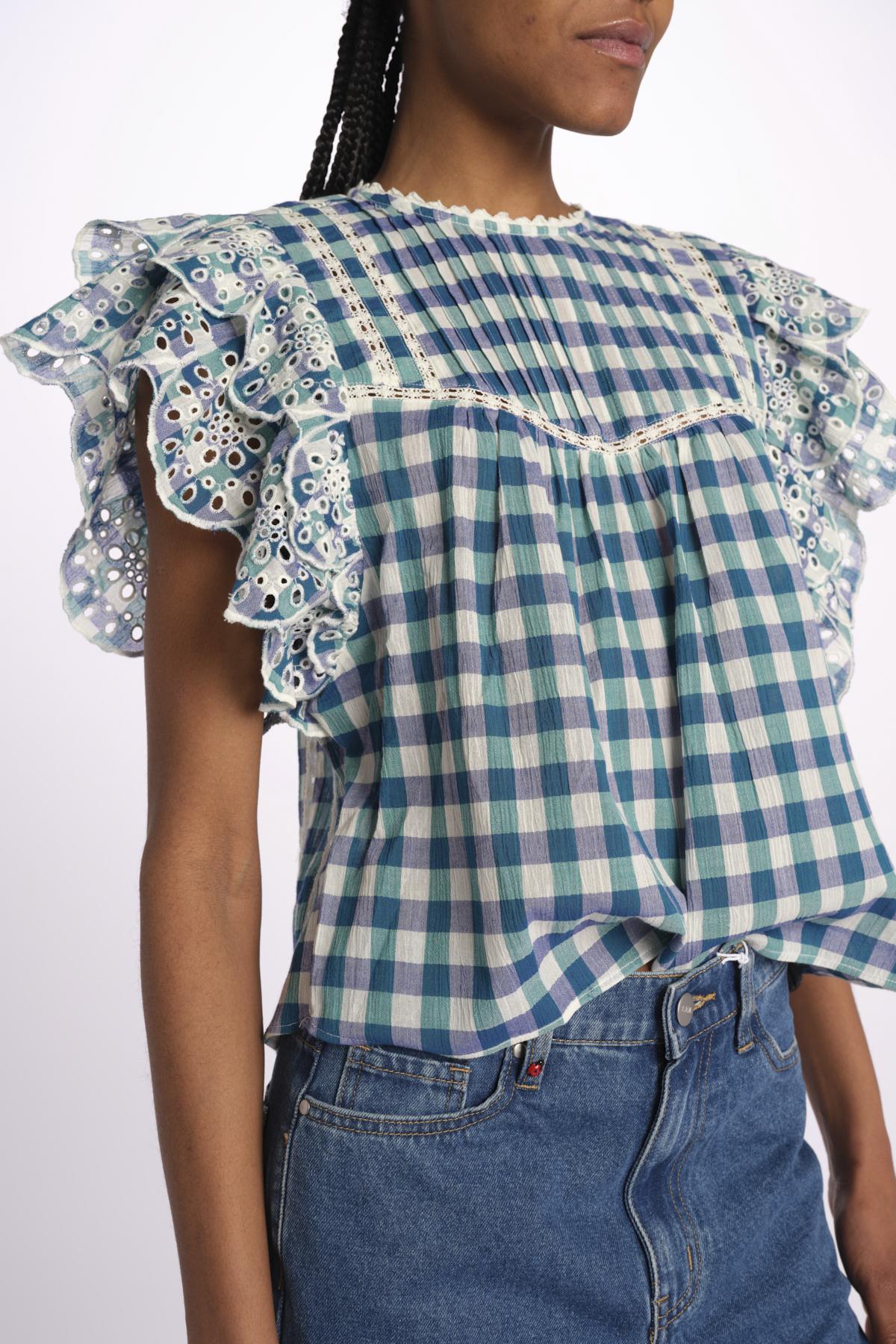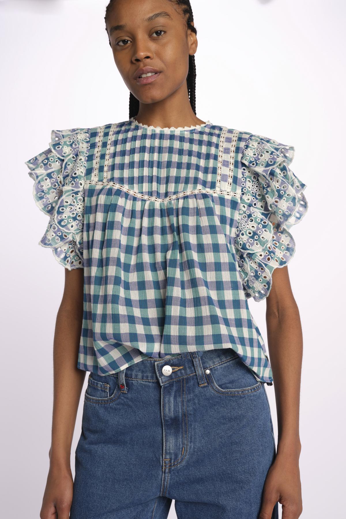 HUDALLA51 check shirt with puff sleeves by bellerose. The model is 174 cm tall and wears a size 34 (IT38). Composition: 100% cotton.