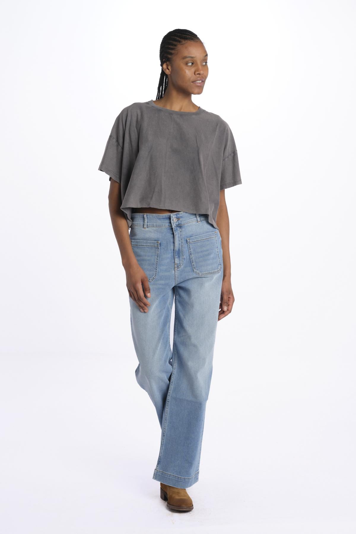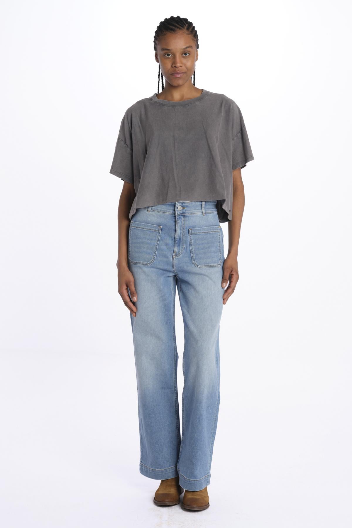 FARPY boxed belt back t-shirt by bellerose. The model is 174 cm tall and wears a S/M. Composition: 100% cotton.