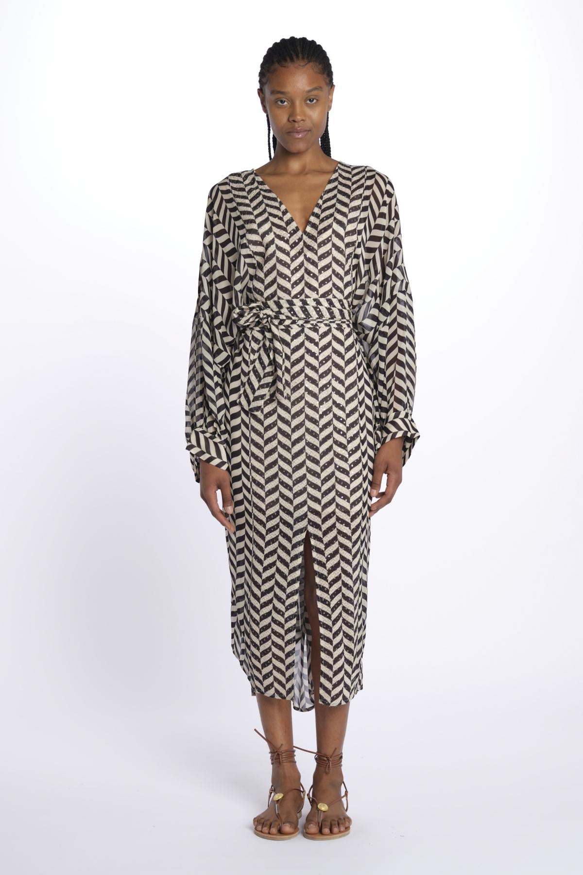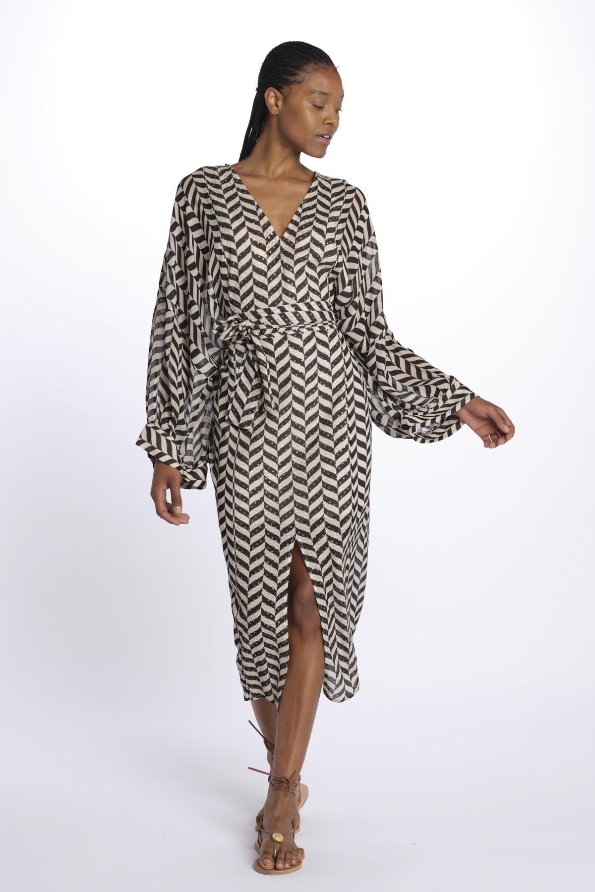 Caftan LOULI CAFTAN zigzag print by sundress. The model is 174 cm tall and wears a size S. Composition: 100% viscose.