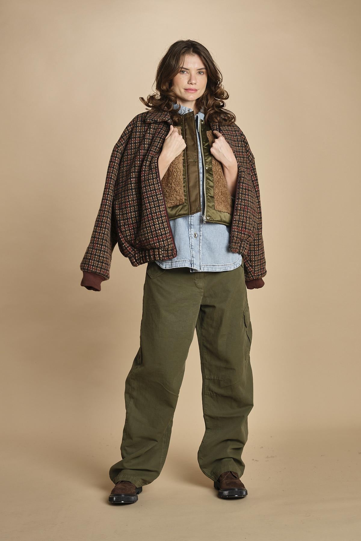 camicia denim over. La modella è alta 174 cm e indossa una taglia xS. 100% cotone