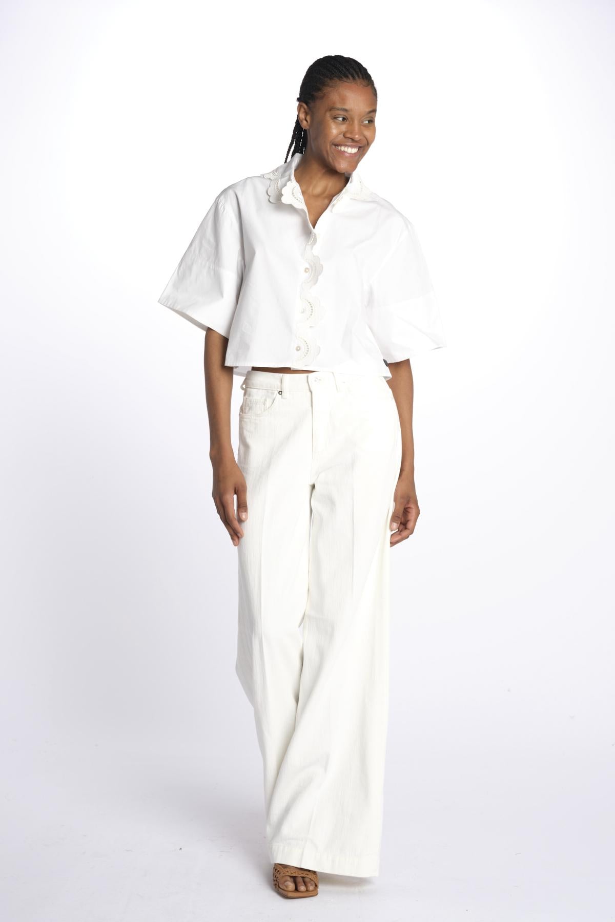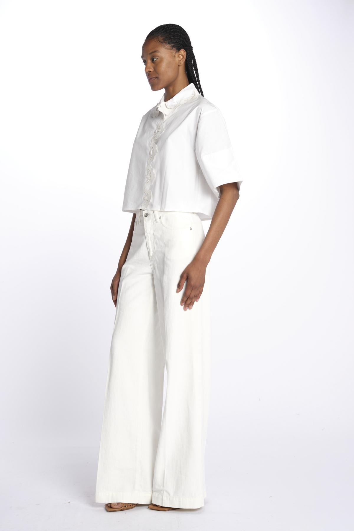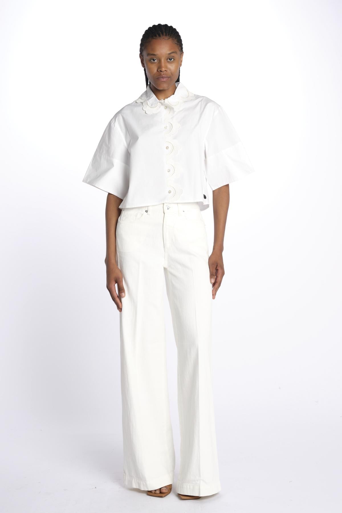 GIRLY shirt collar m/c smeral by laurence bras. The model is 174 cm tall and wears a size 34 (IT38). Composition: 100% cotton.