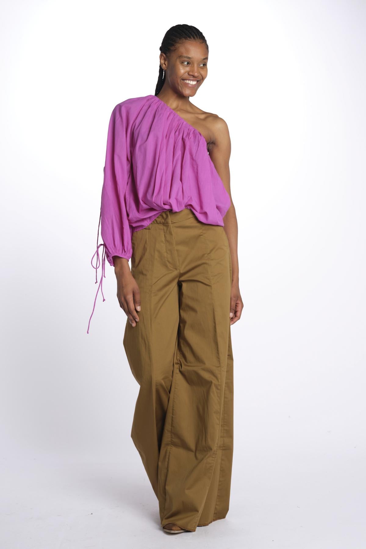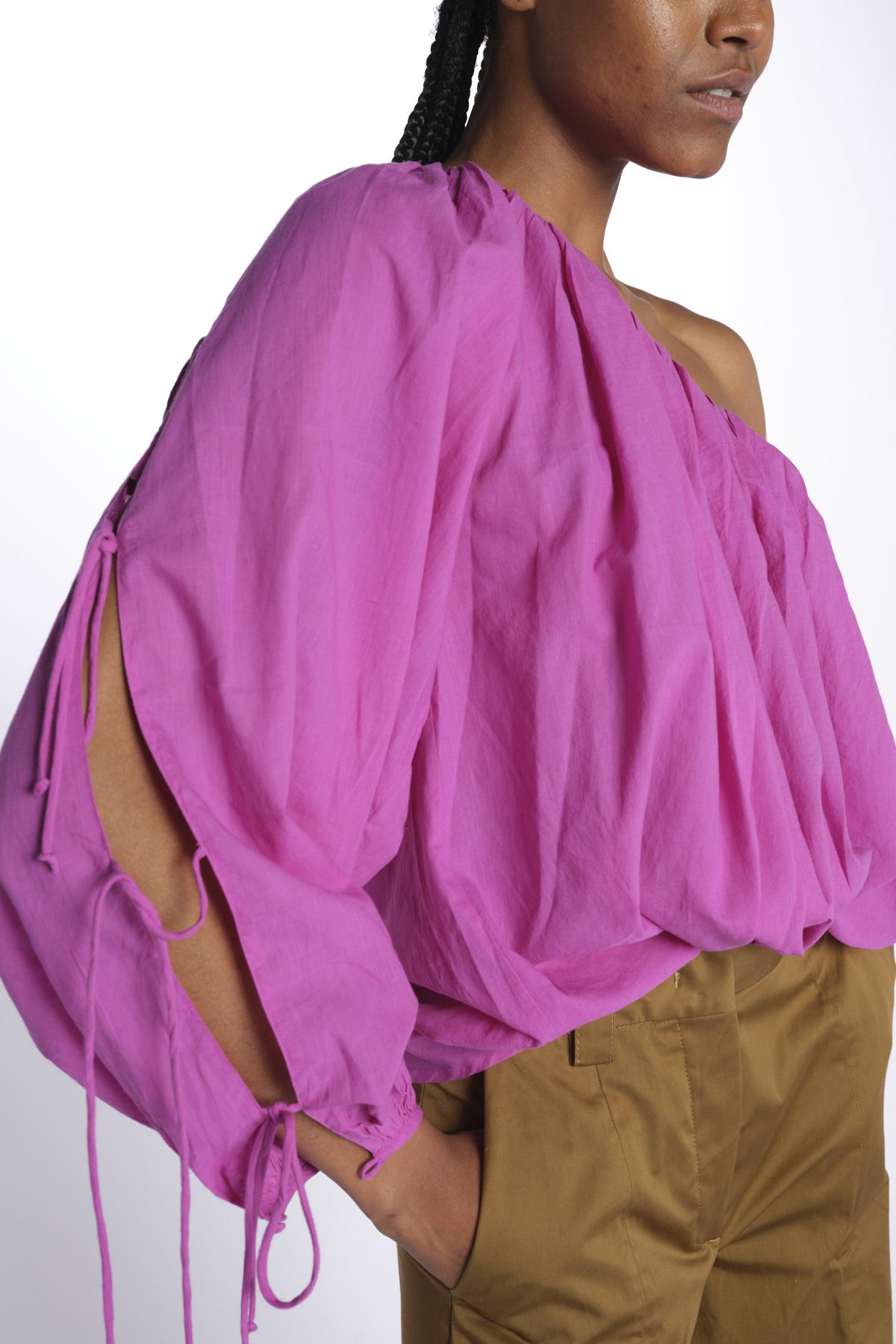 JOINA voille over one shoulder shirt by laurence bras. The model is 174 cm tall and wears a size 34 (IT38). Composition: 100% cotton.