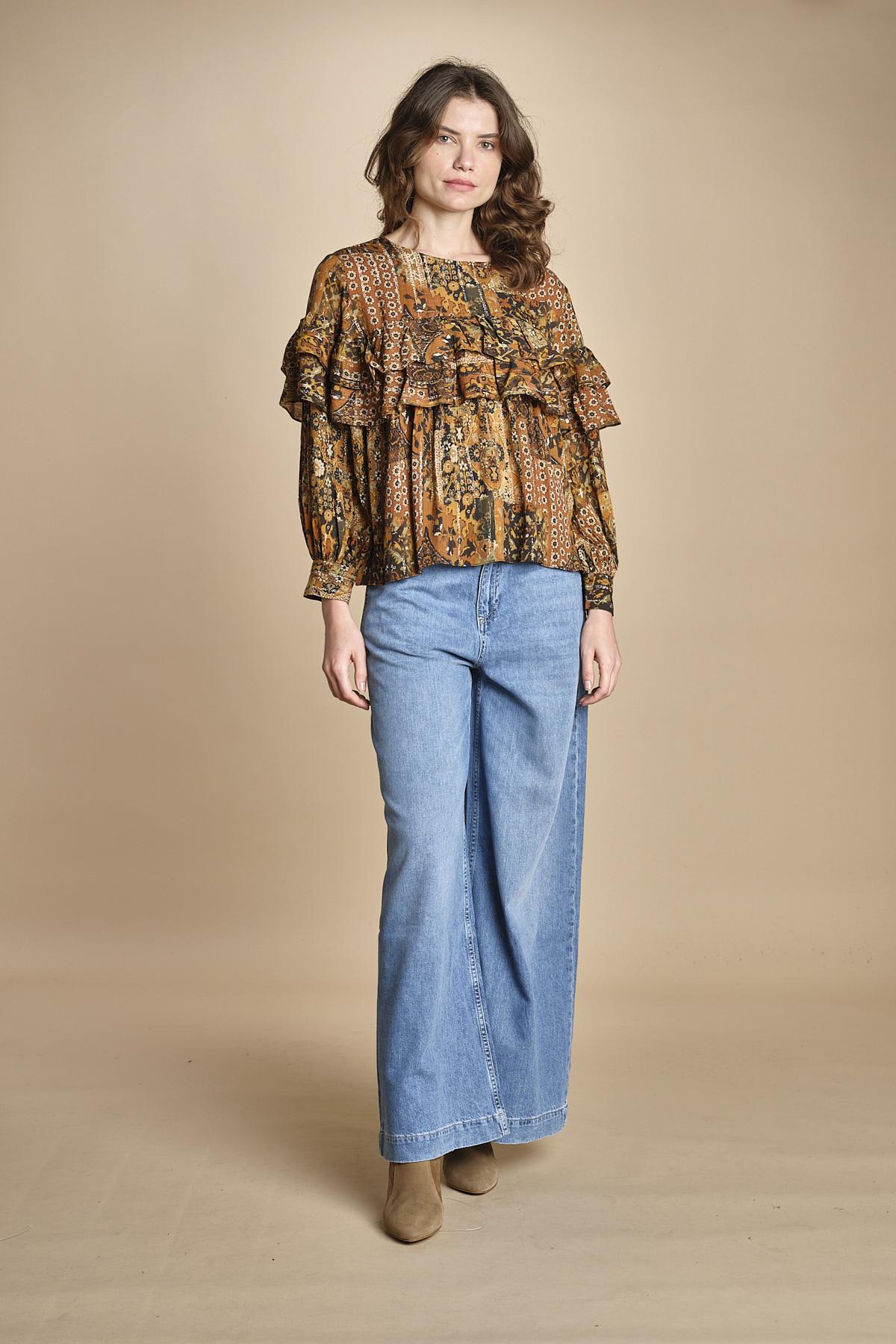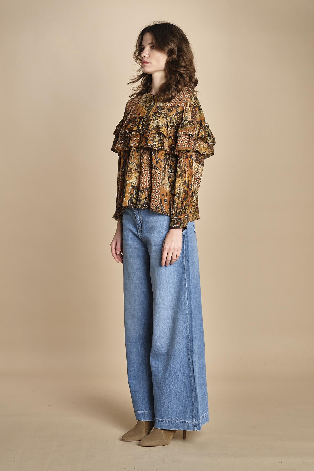 camicia stampa etno lurex. La modella è alta 176 cm e indossa una taglia S. 98% viscosa 2% metal