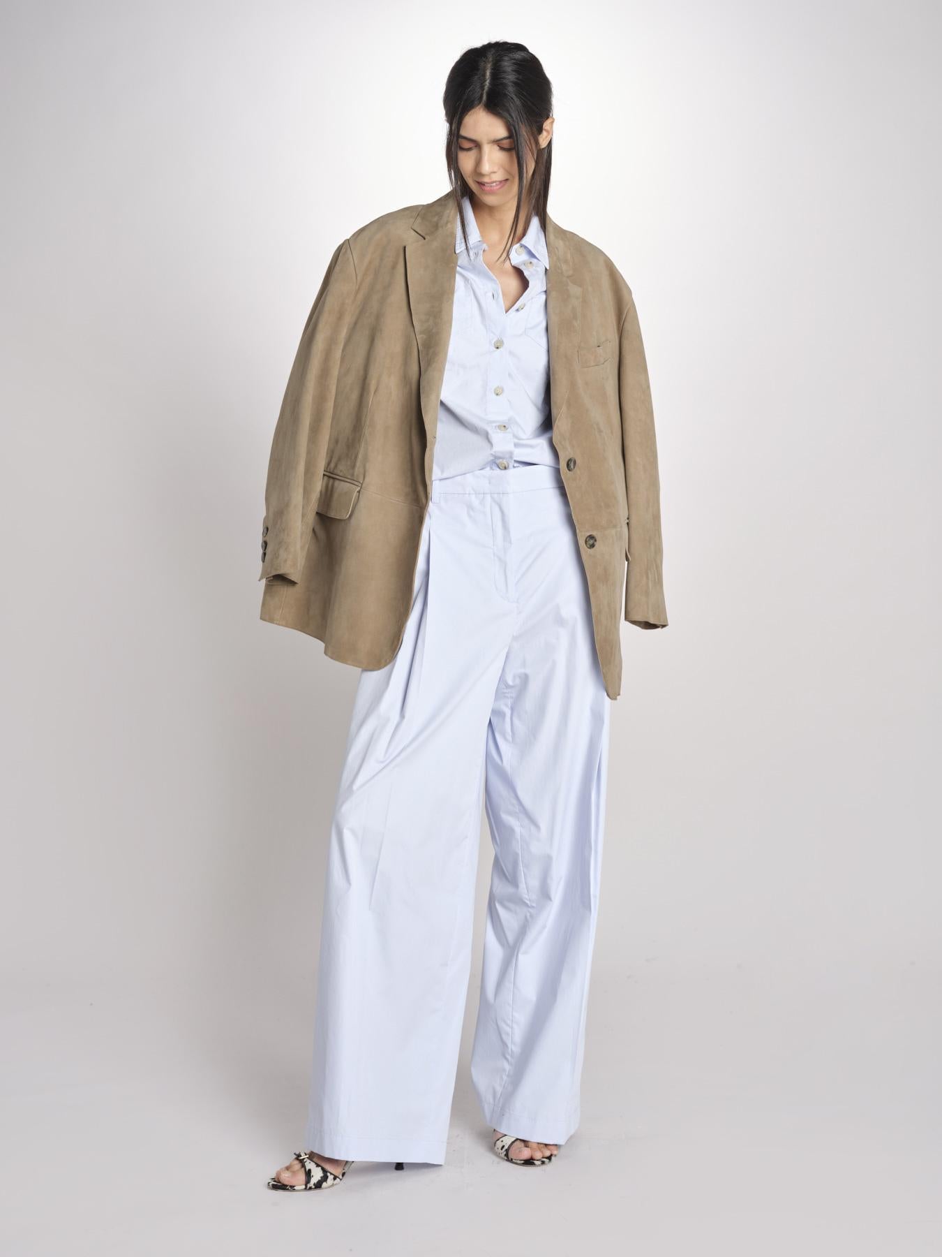 Camicia uomo in popeline. La modella è alta 180cm e indossa una taglia 40. Composizione: 100% cotone.