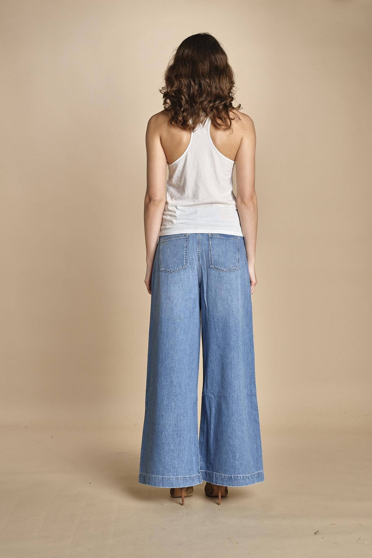 cannottiera americana. La modella è alta 176 cm e indossa una taglia 0. 100% cotone