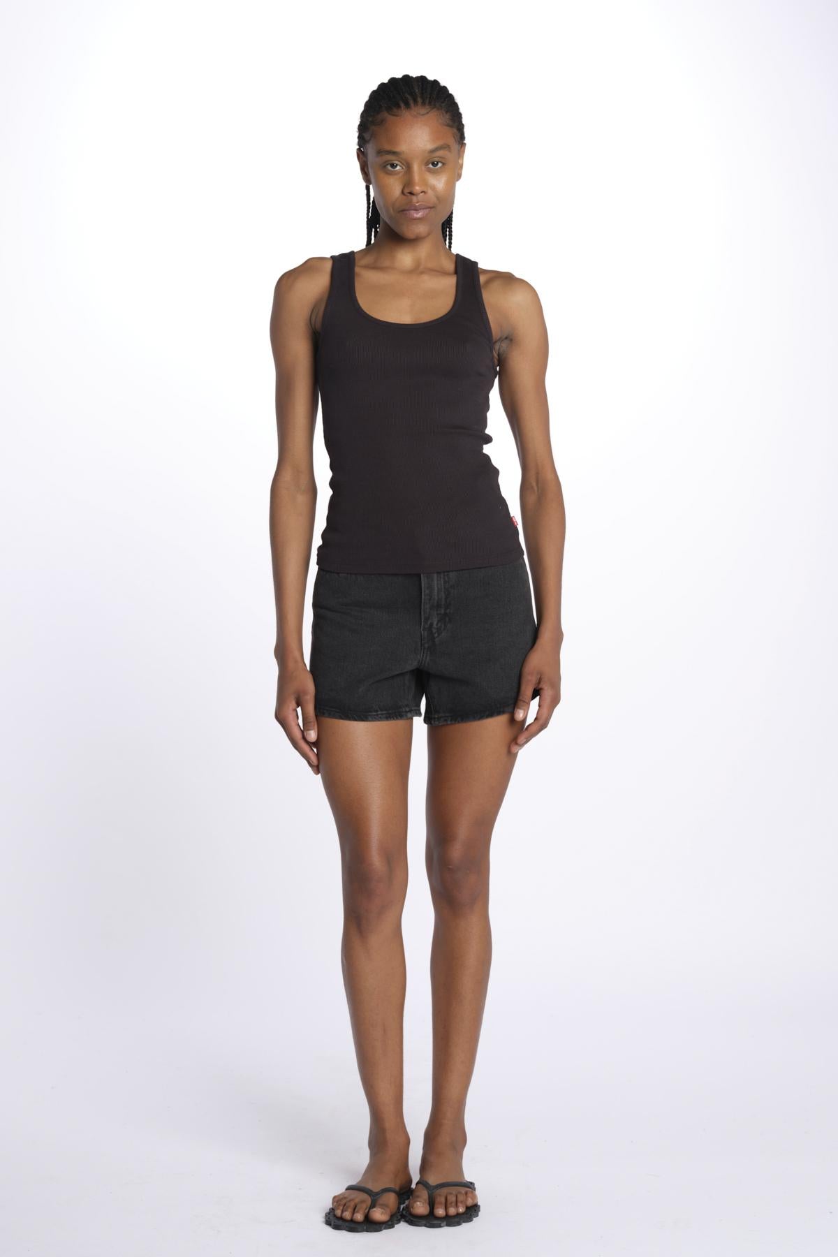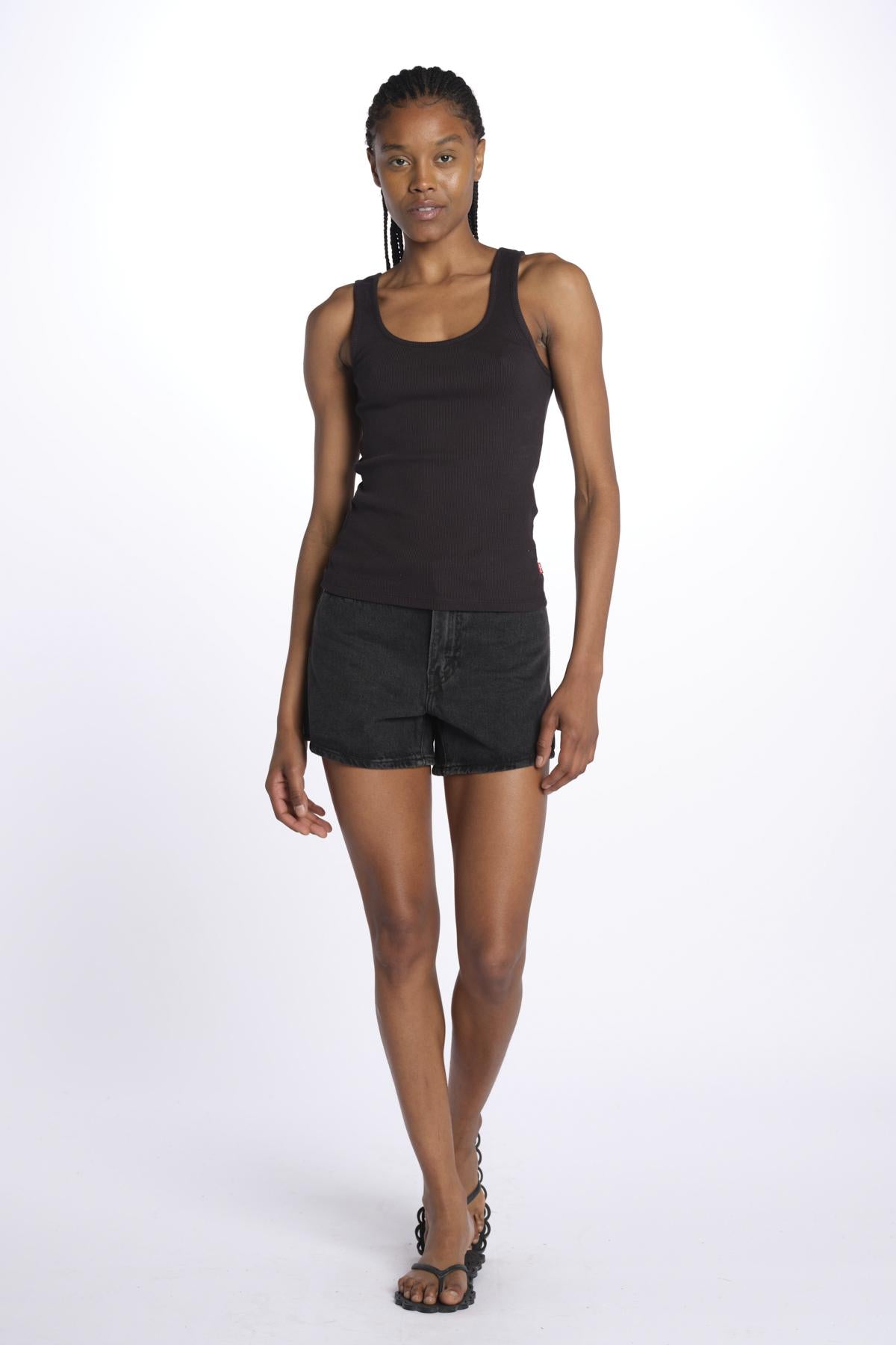 Ribbed low-cut tank top by levi's. The model is 174 cm tall and wears a size S. Composition: 100% cotton.