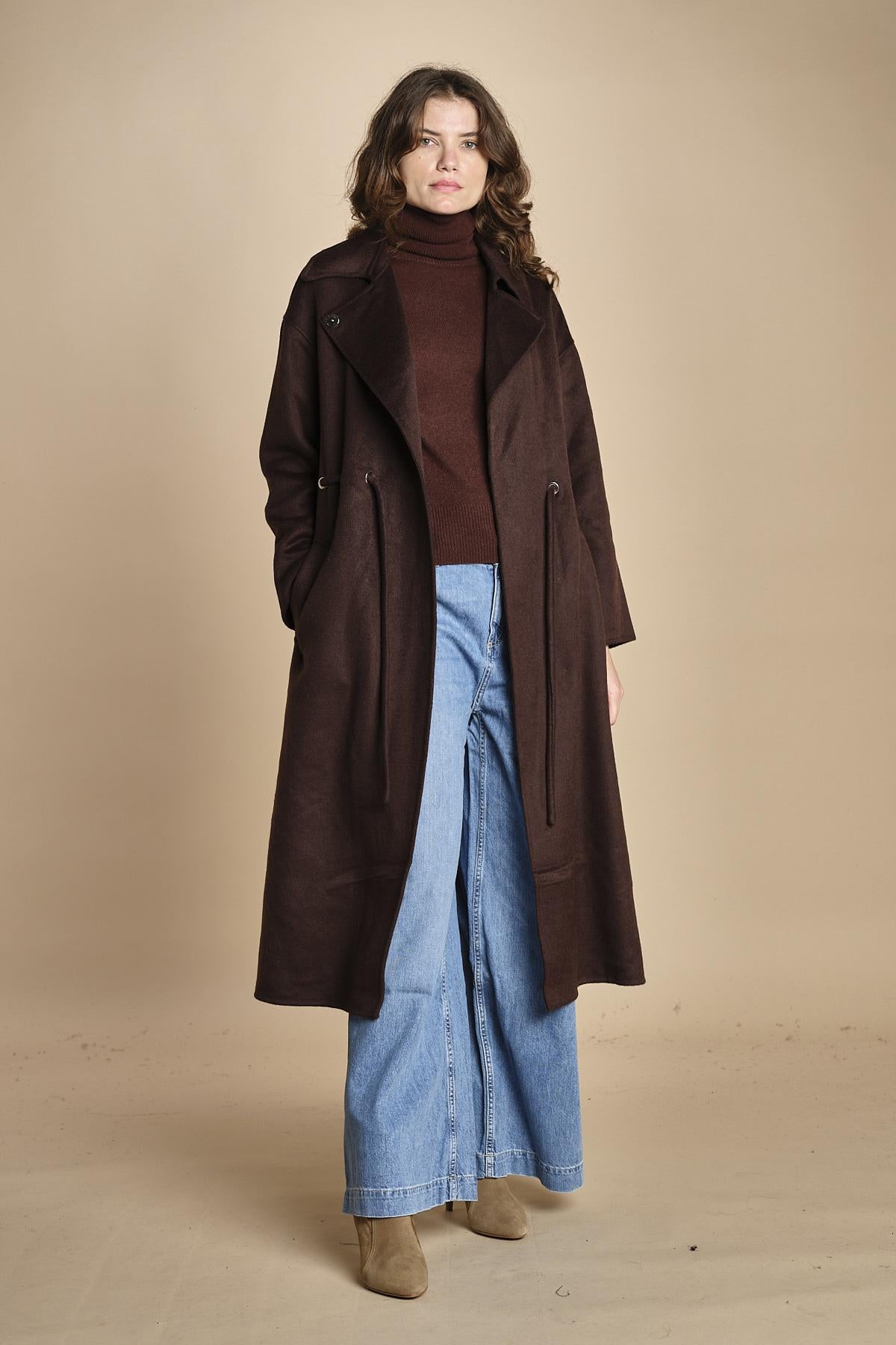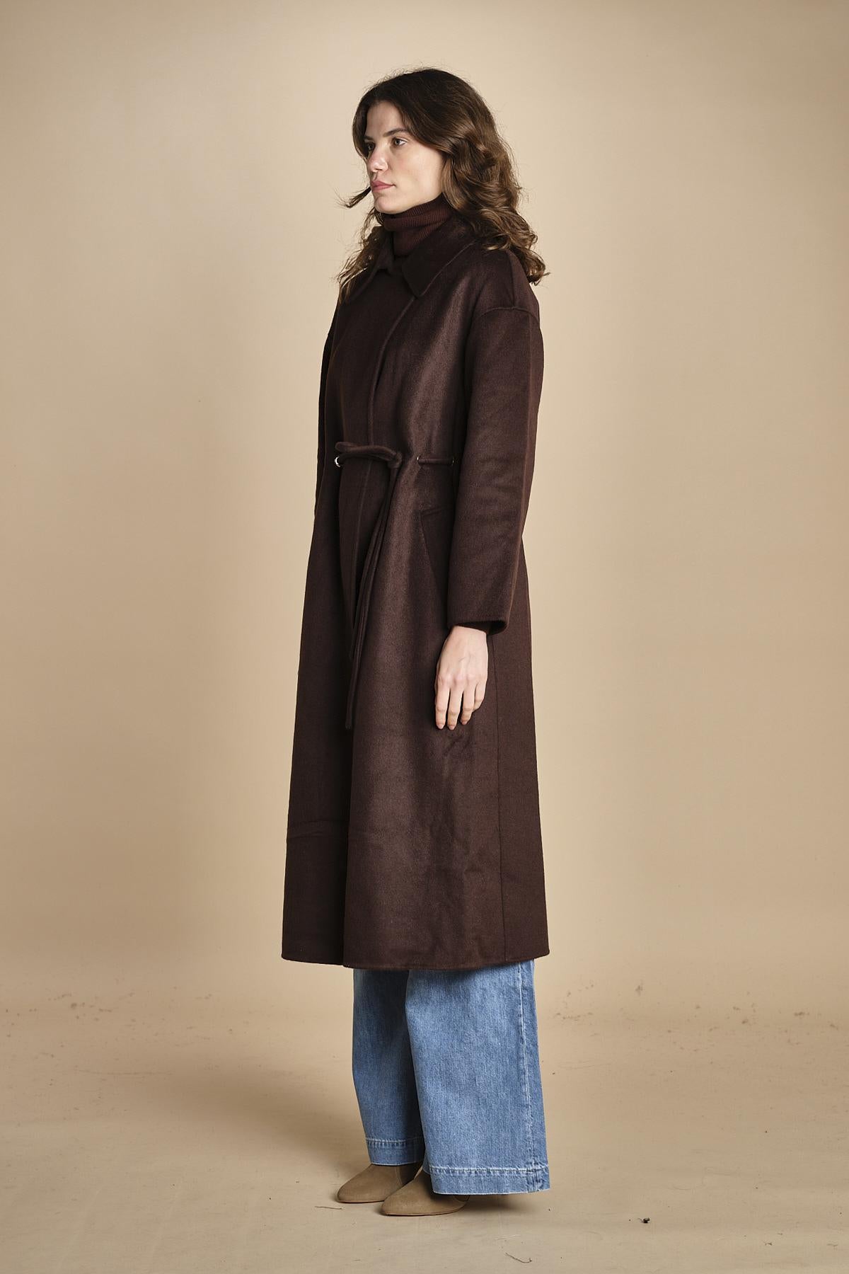 cappotto double con cintura. La modella è alta 176 cm e indossa una taglia S. 80% lana 20% polyammide
