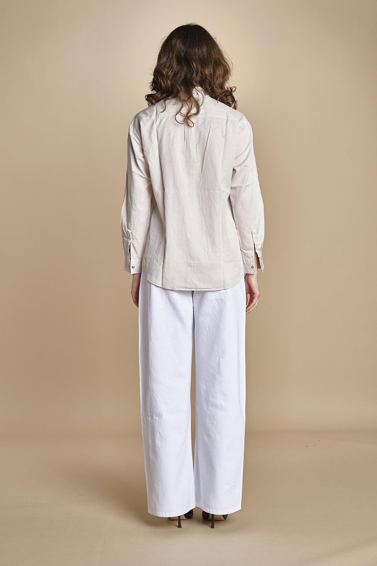 CINEMA camicia con automaticiLa modella è alta 176 cm e indossa una taglia 1. 60% TENCEL 34% COTONE 06% LINO