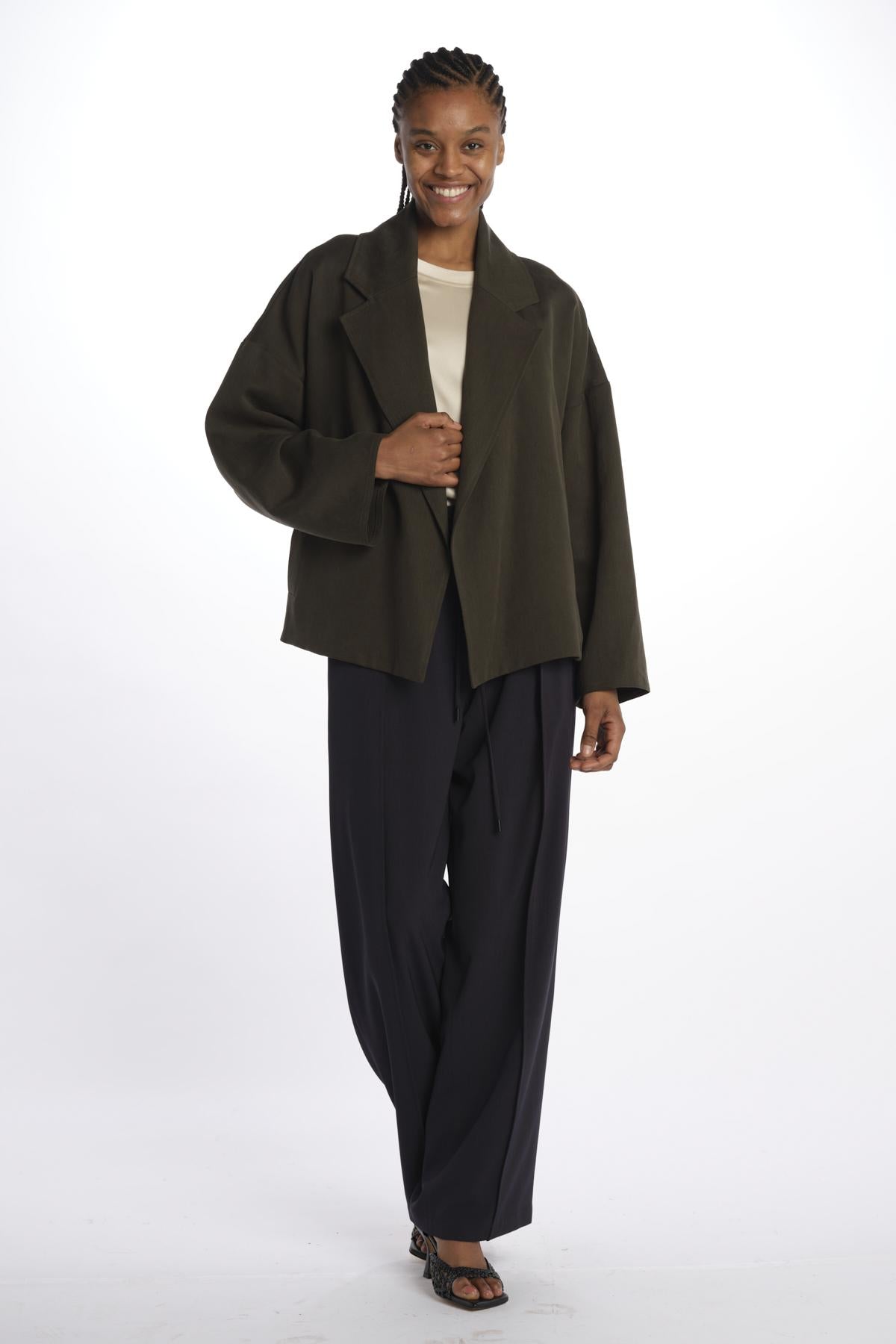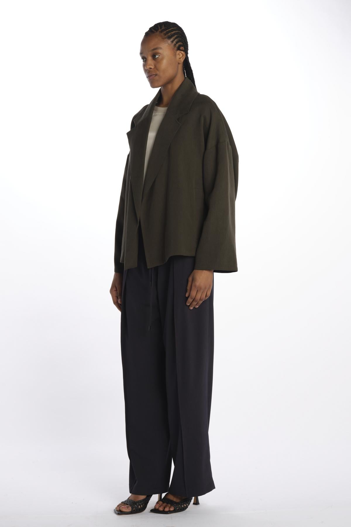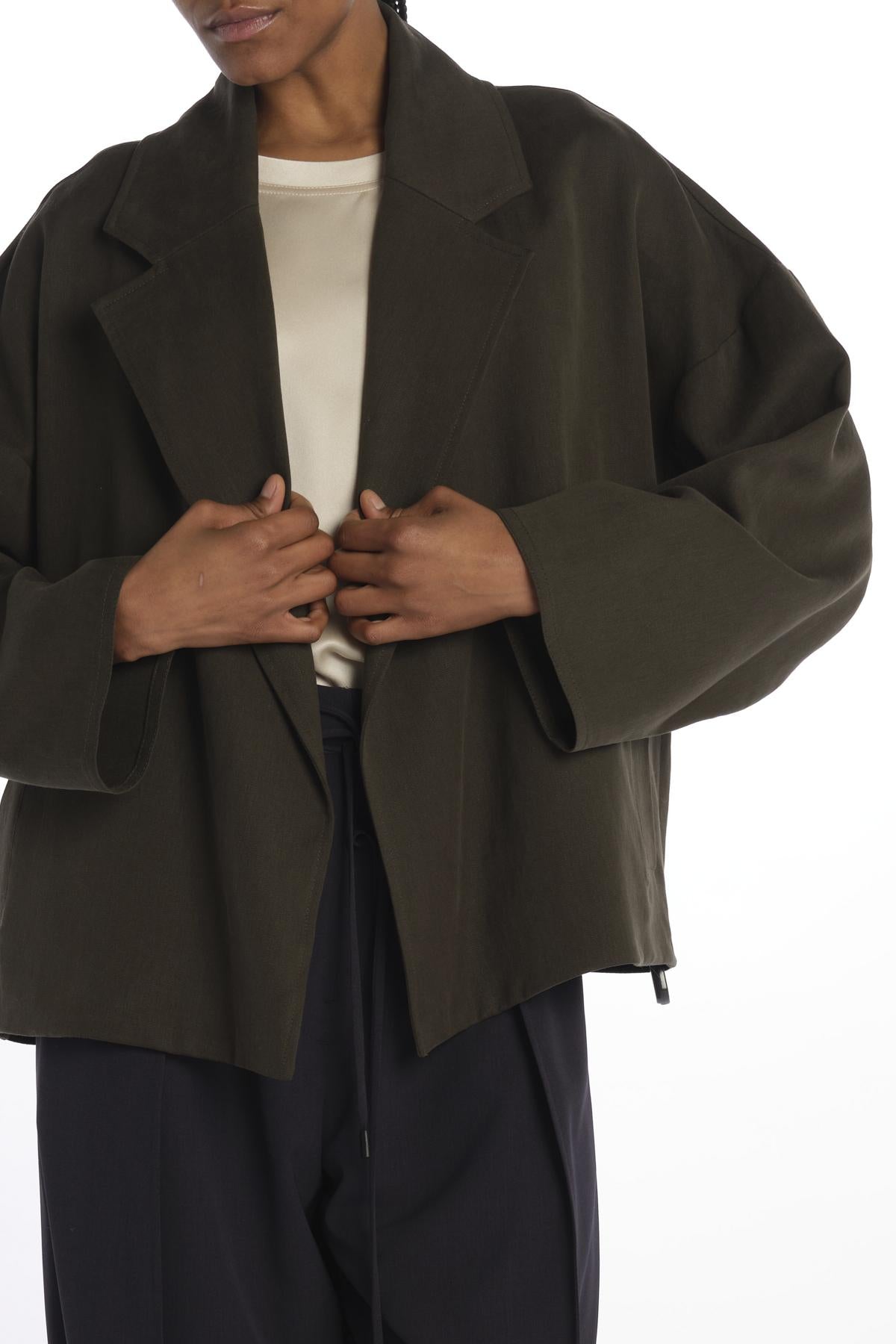 Enzyme linen overcoat jacket by dusan. The model is 174 cm tall and wears a one size. Composition: 100% linen.