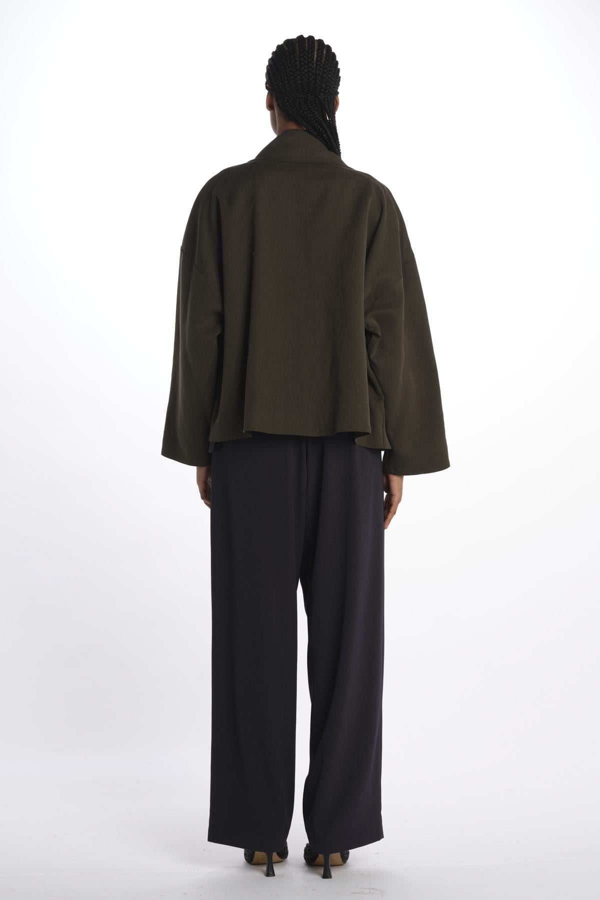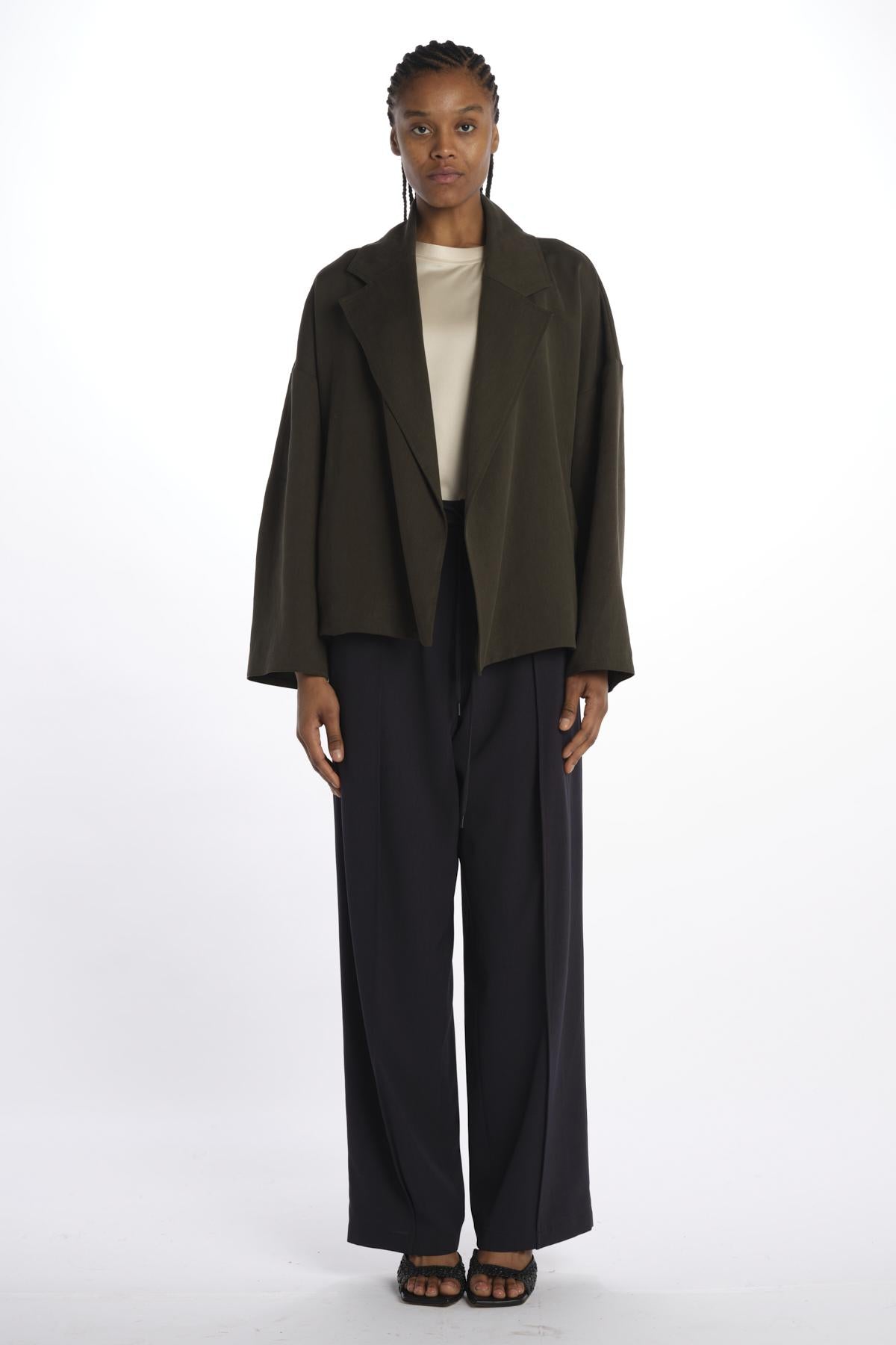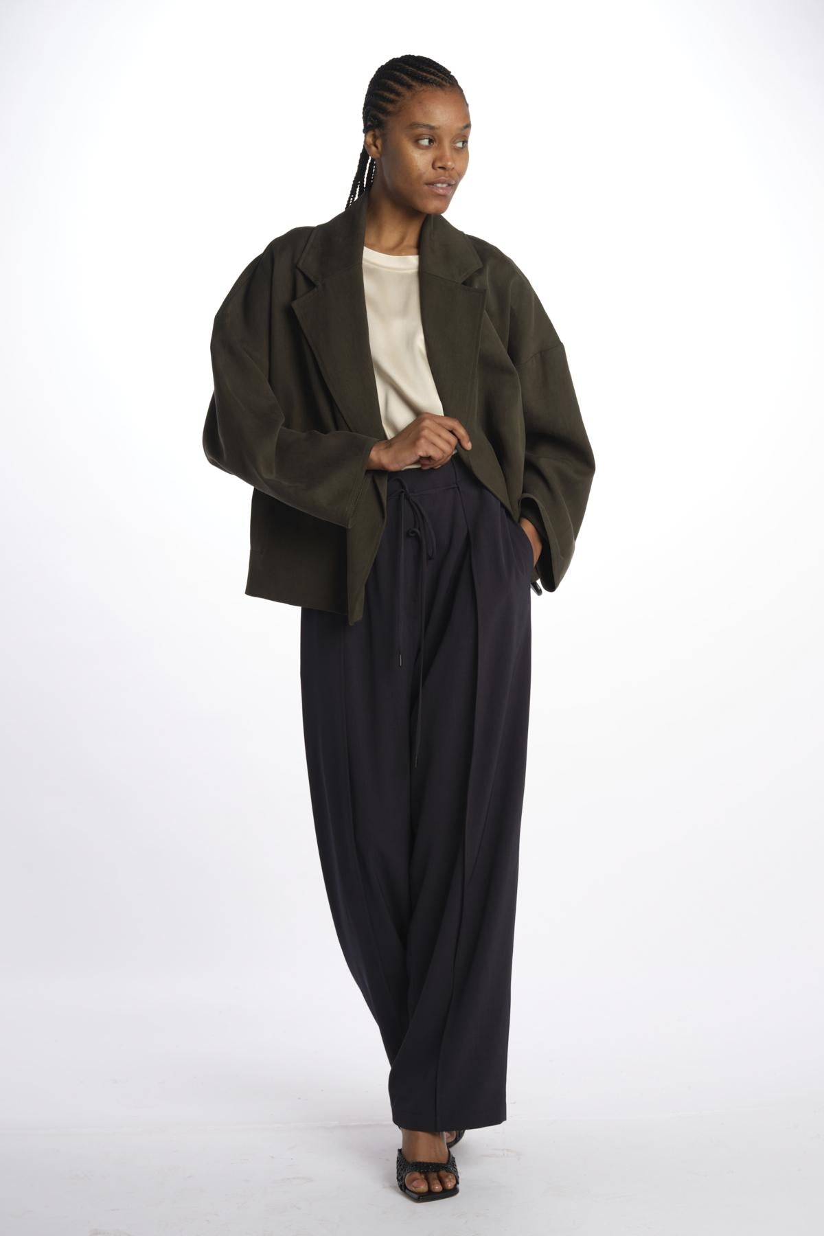 Enzyme linen overcoat jacket by dusan. The model is 174 cm tall and wears a one size. Composition: 100% linen.