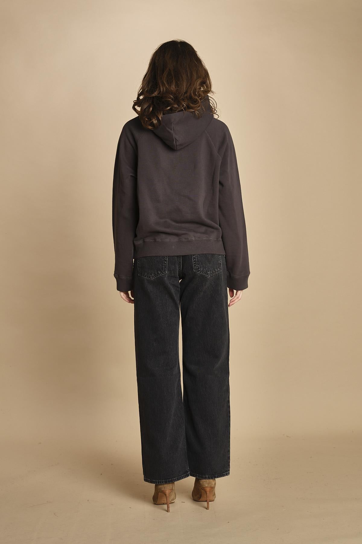 felpa con cappuccio. La modella è alta 174 cm e indossa una taglia S. 100% cotone