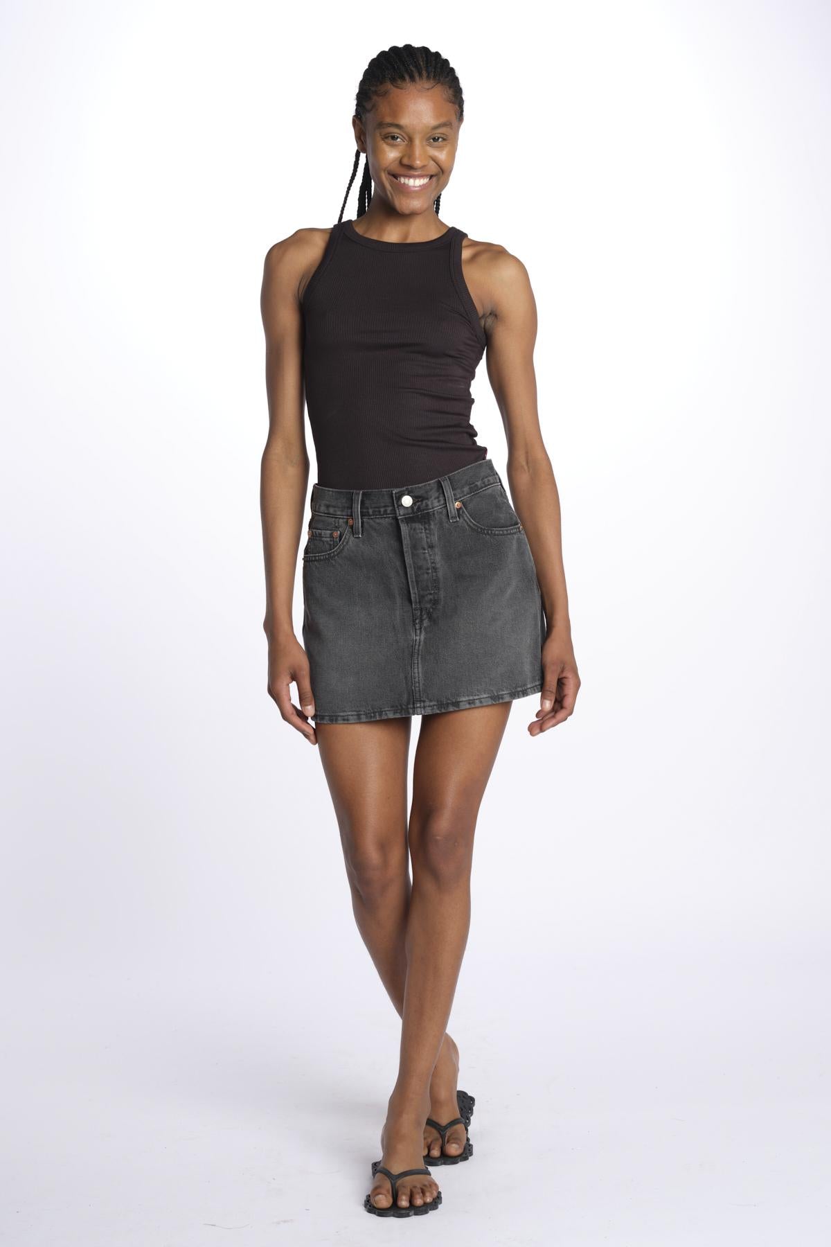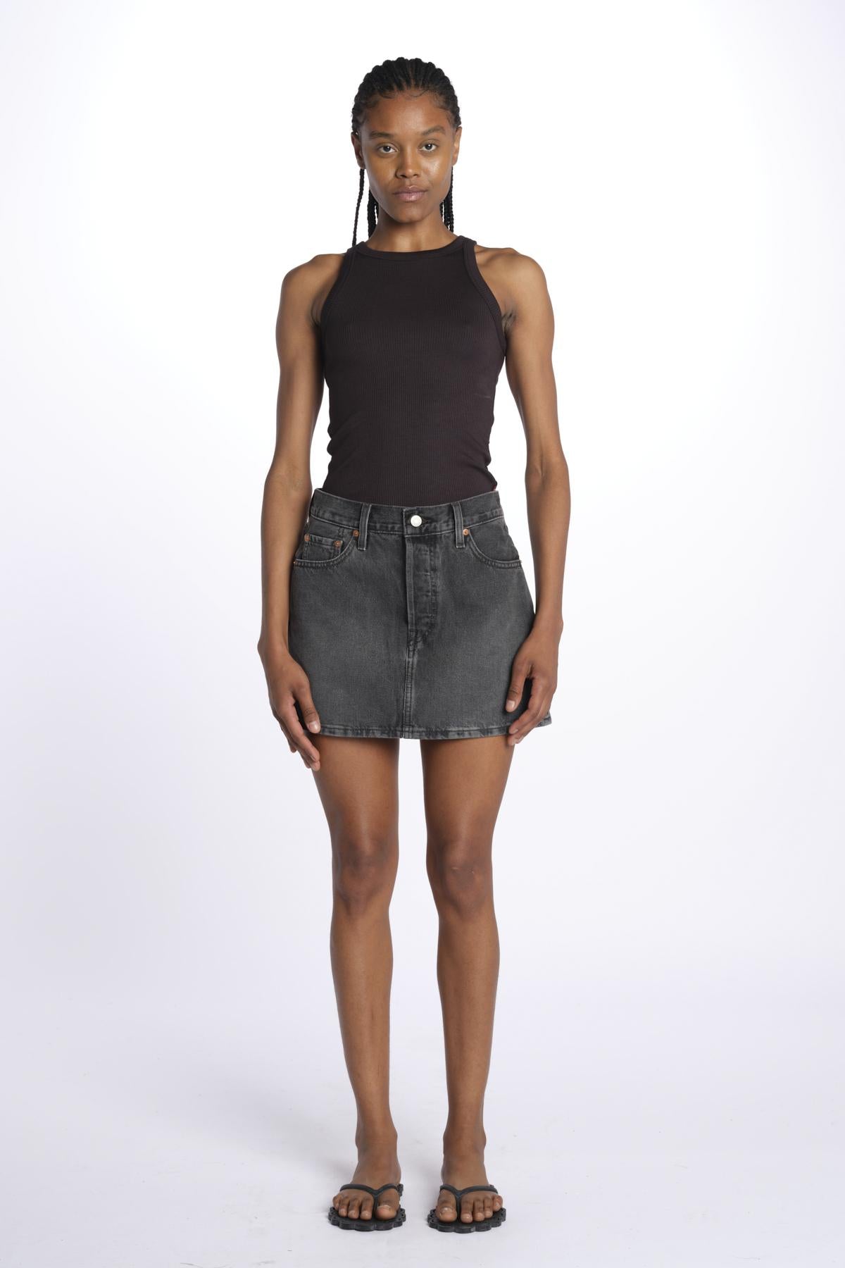 Denim skirt by levi's. The model is 174 cm tall and wears a 25. Composition: 100% cotton.