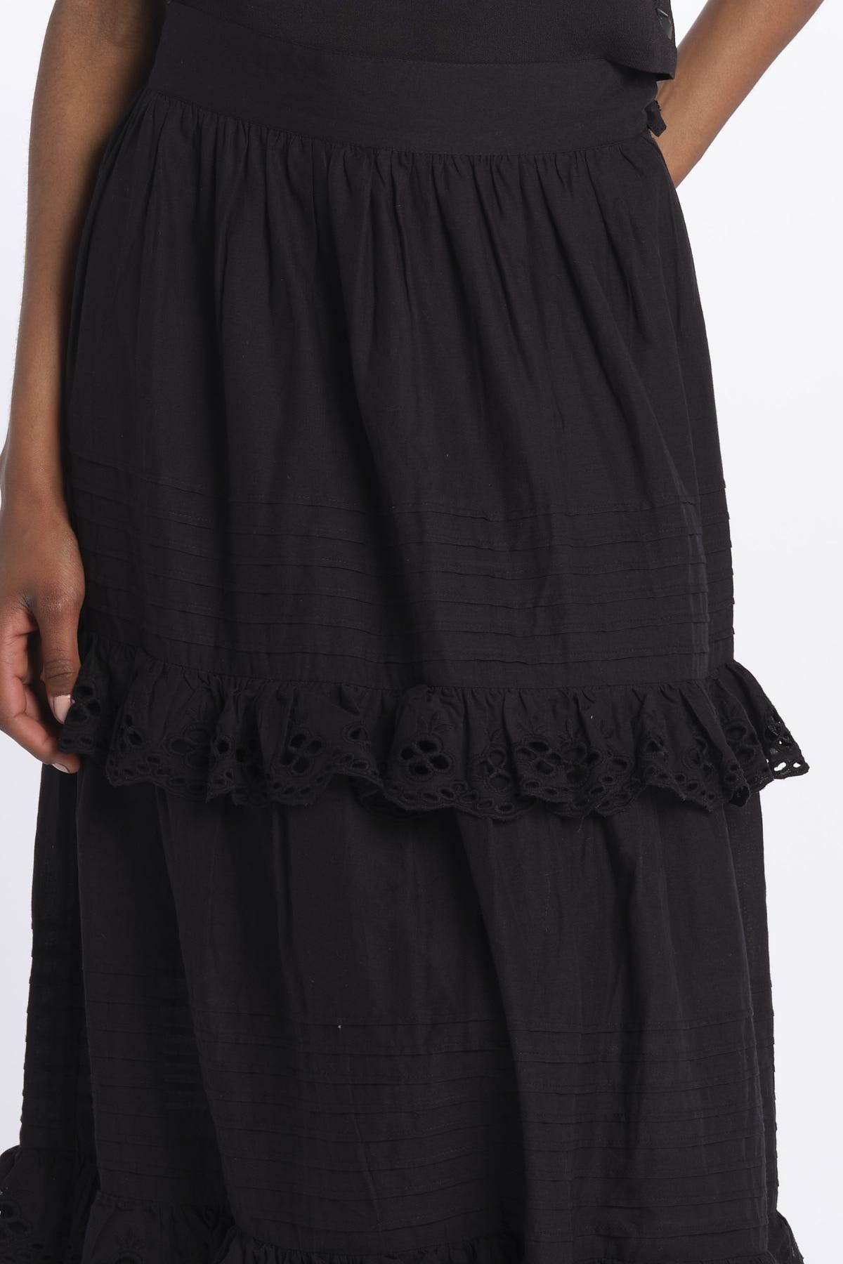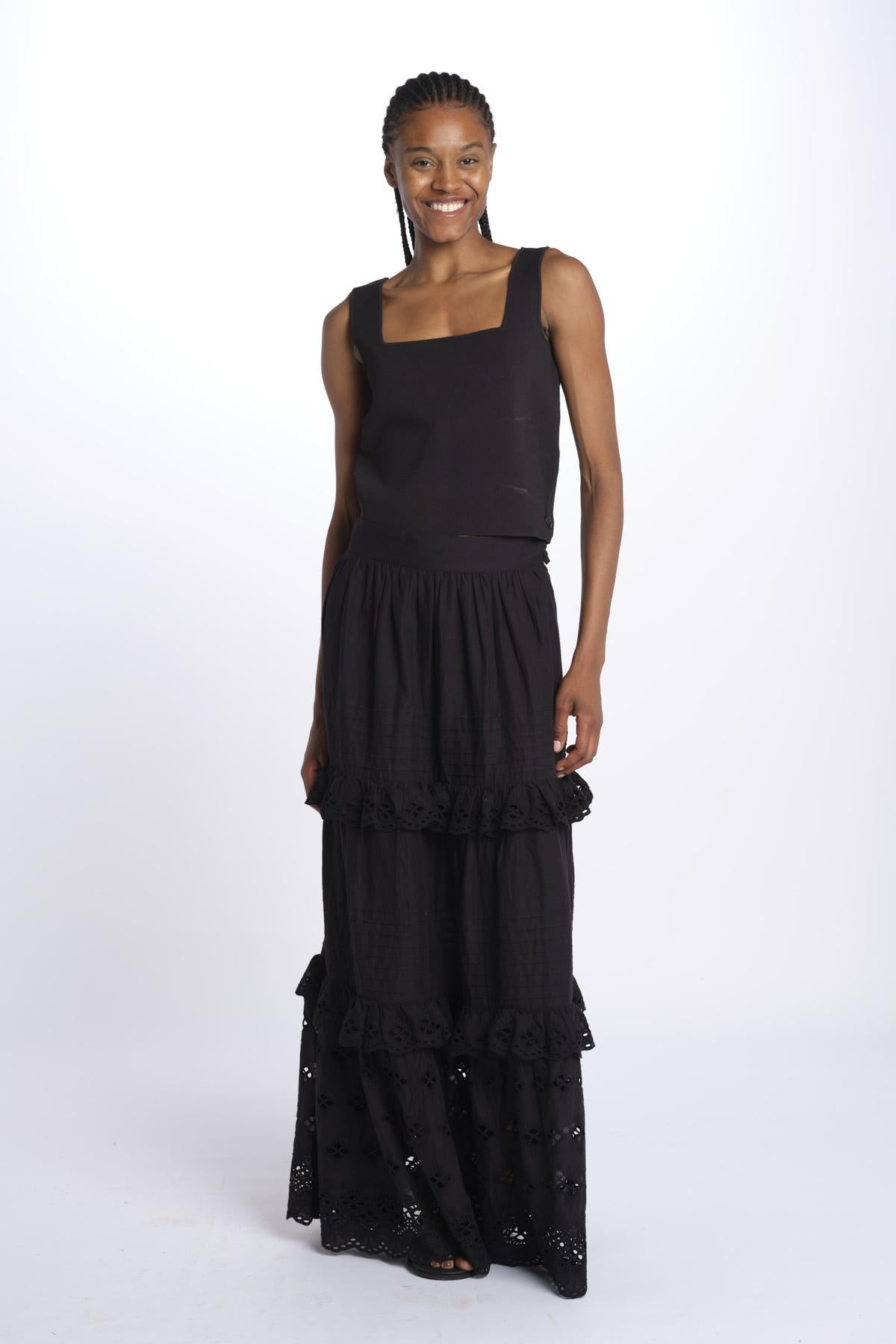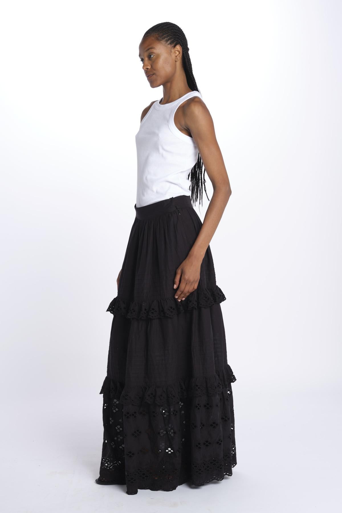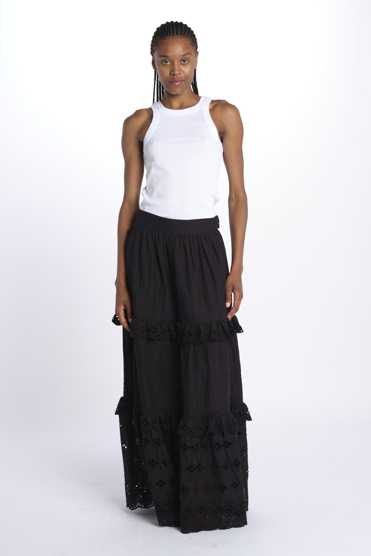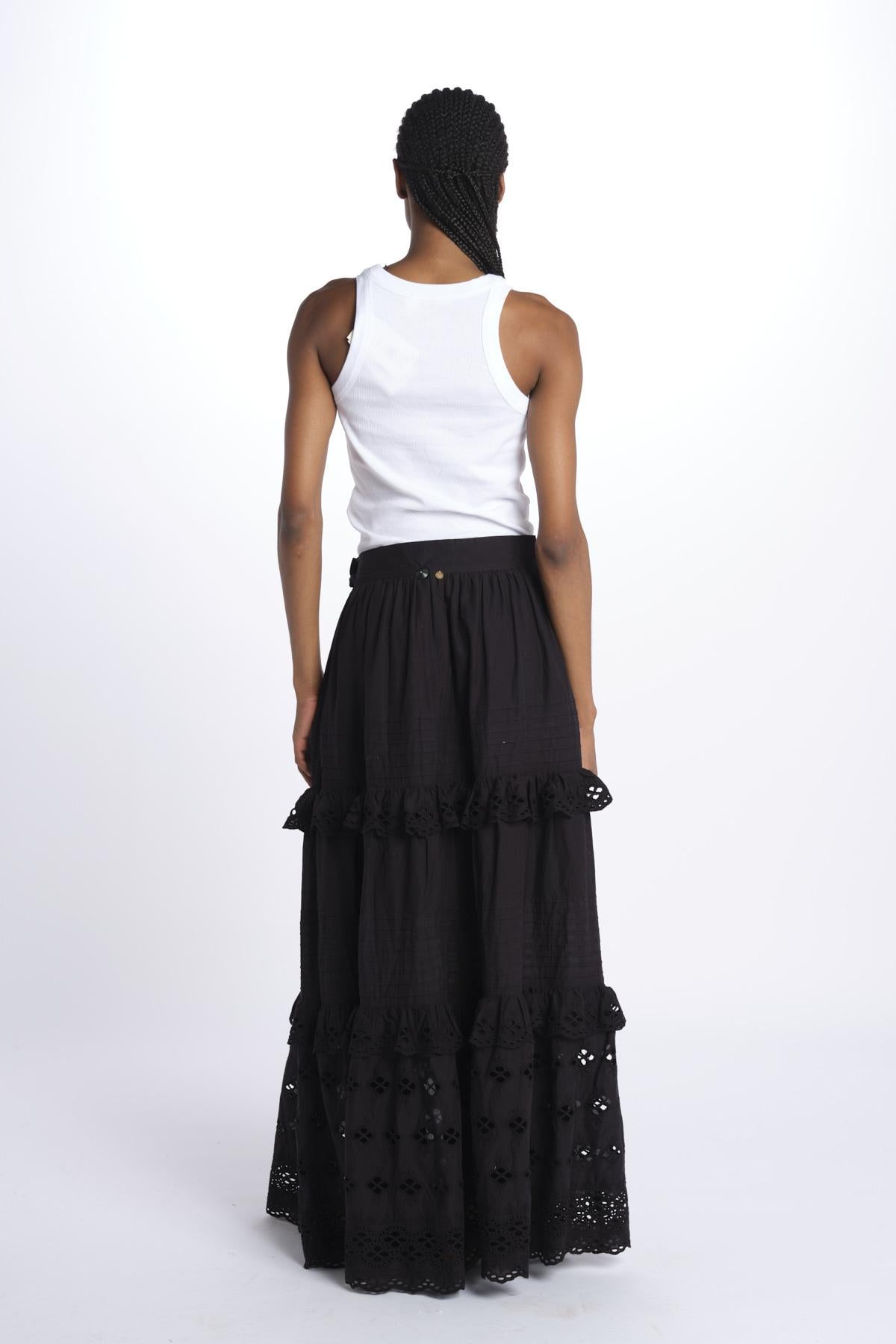 VIVIAN long sangallo skirt by antik batik. The model is 174 cm tall and wears a size S. Composition: 100% cotton.