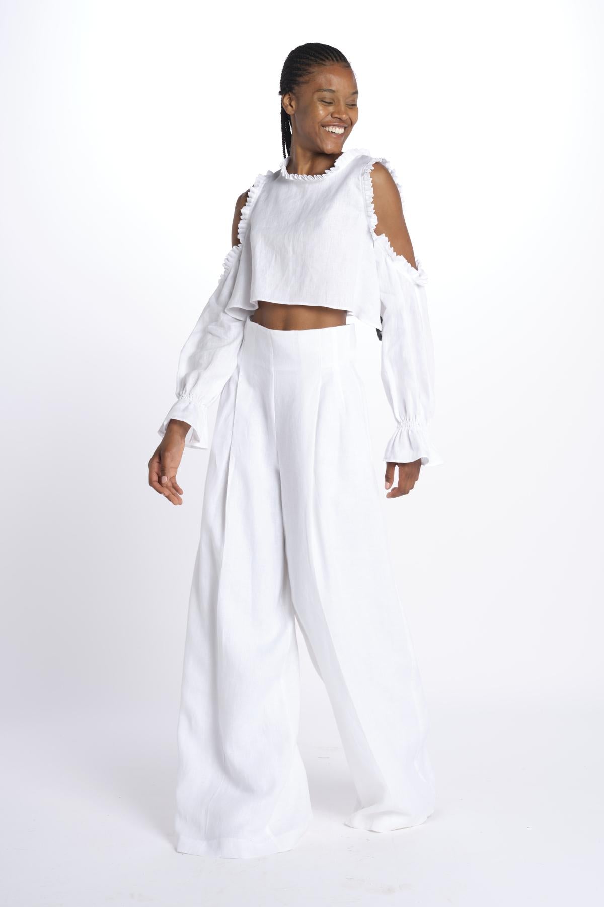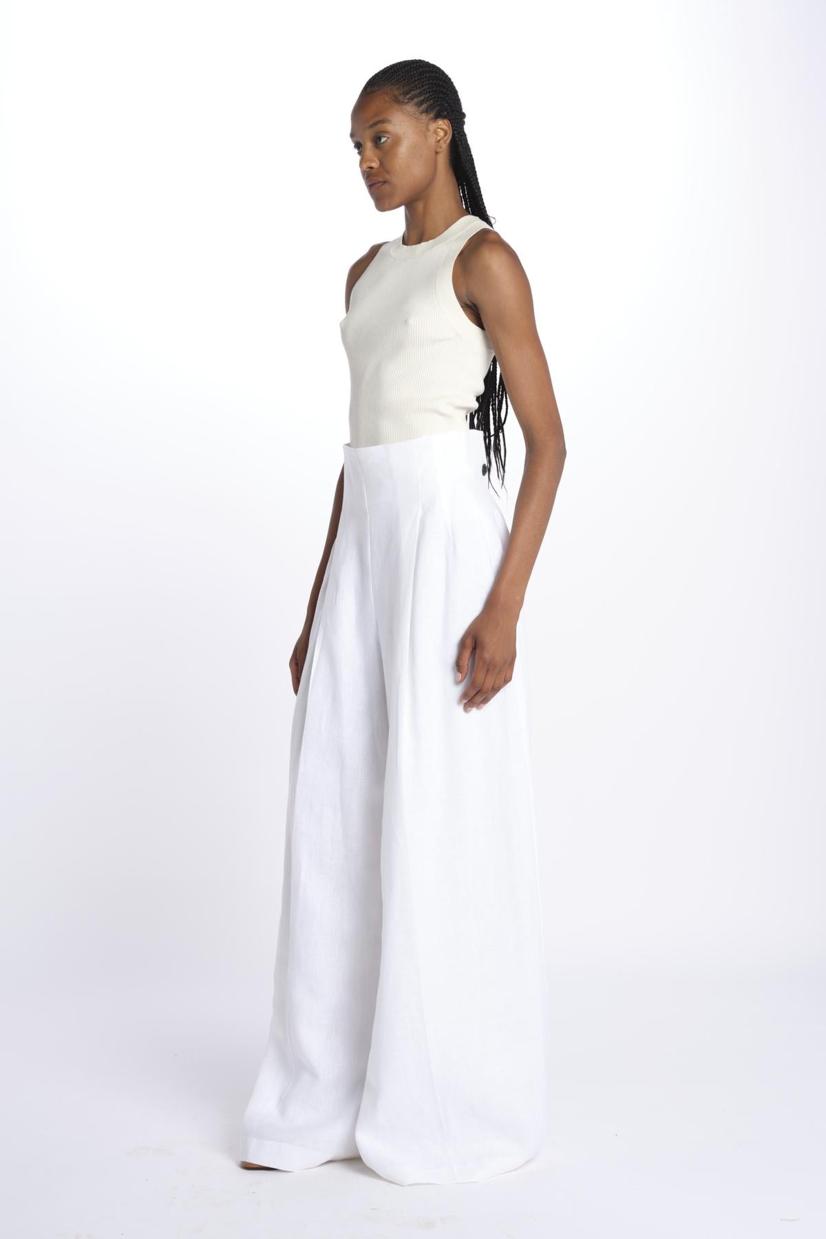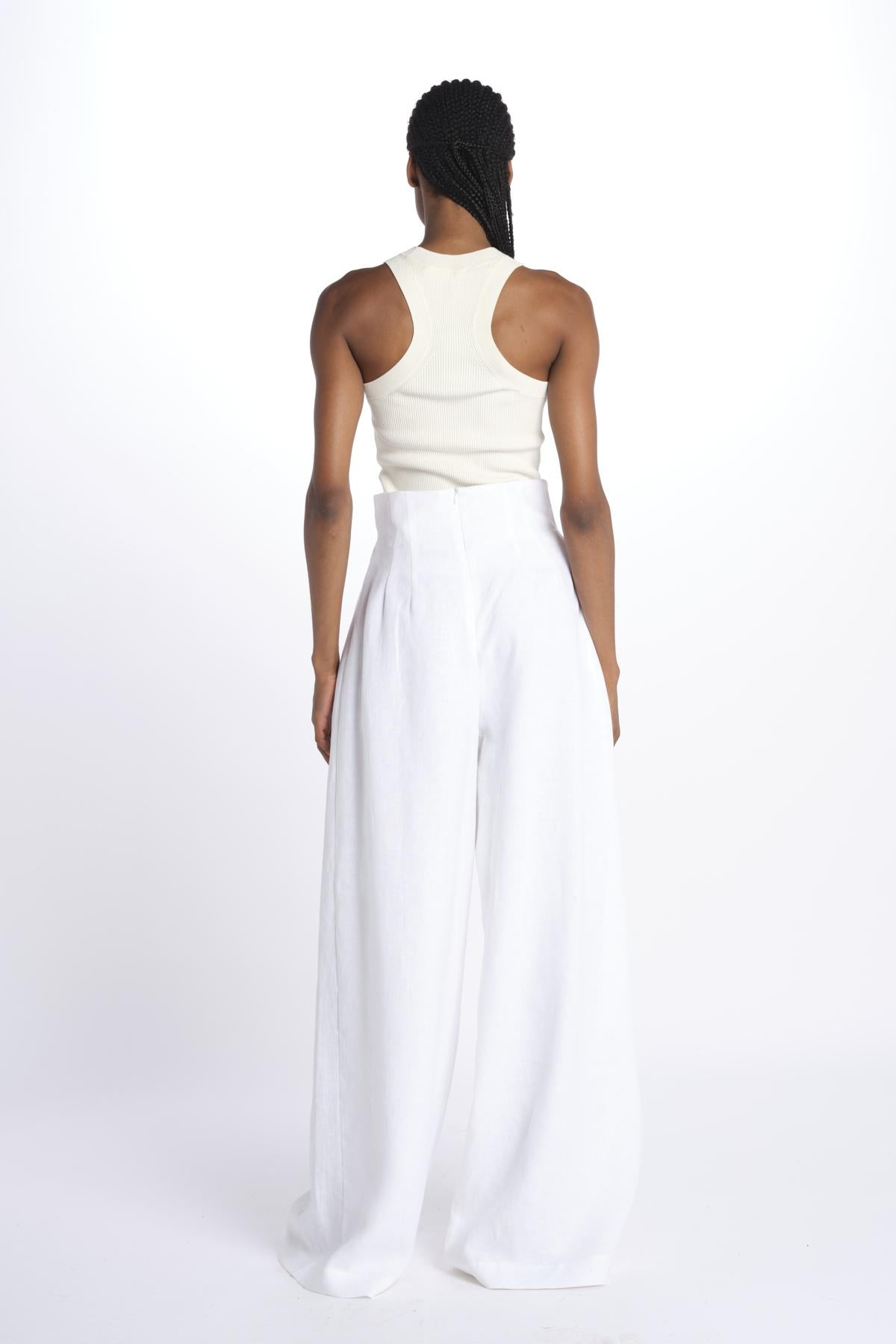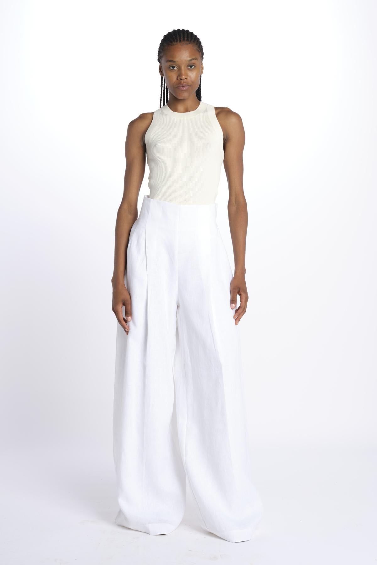HEINI oversized pant by inasami. The model is 174 cm tall and wears a size 1. Composition: 100% linen.