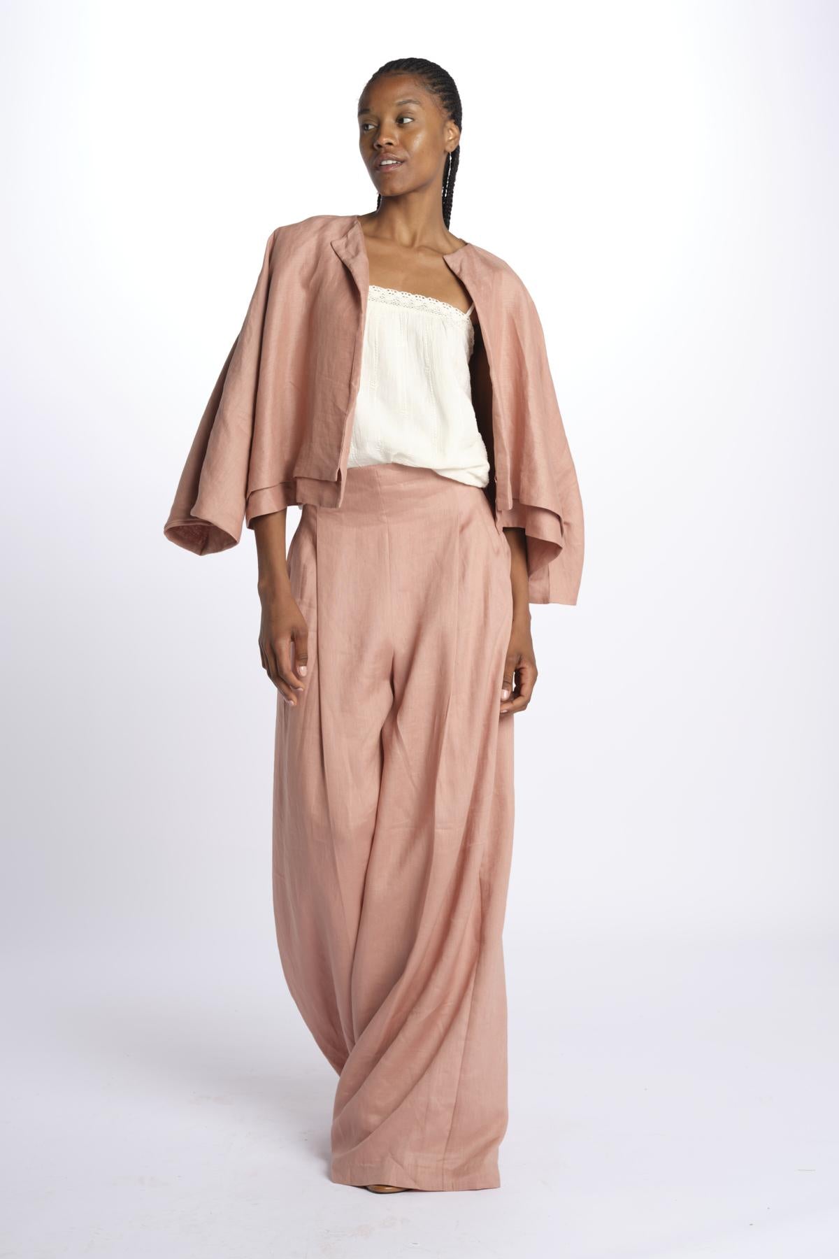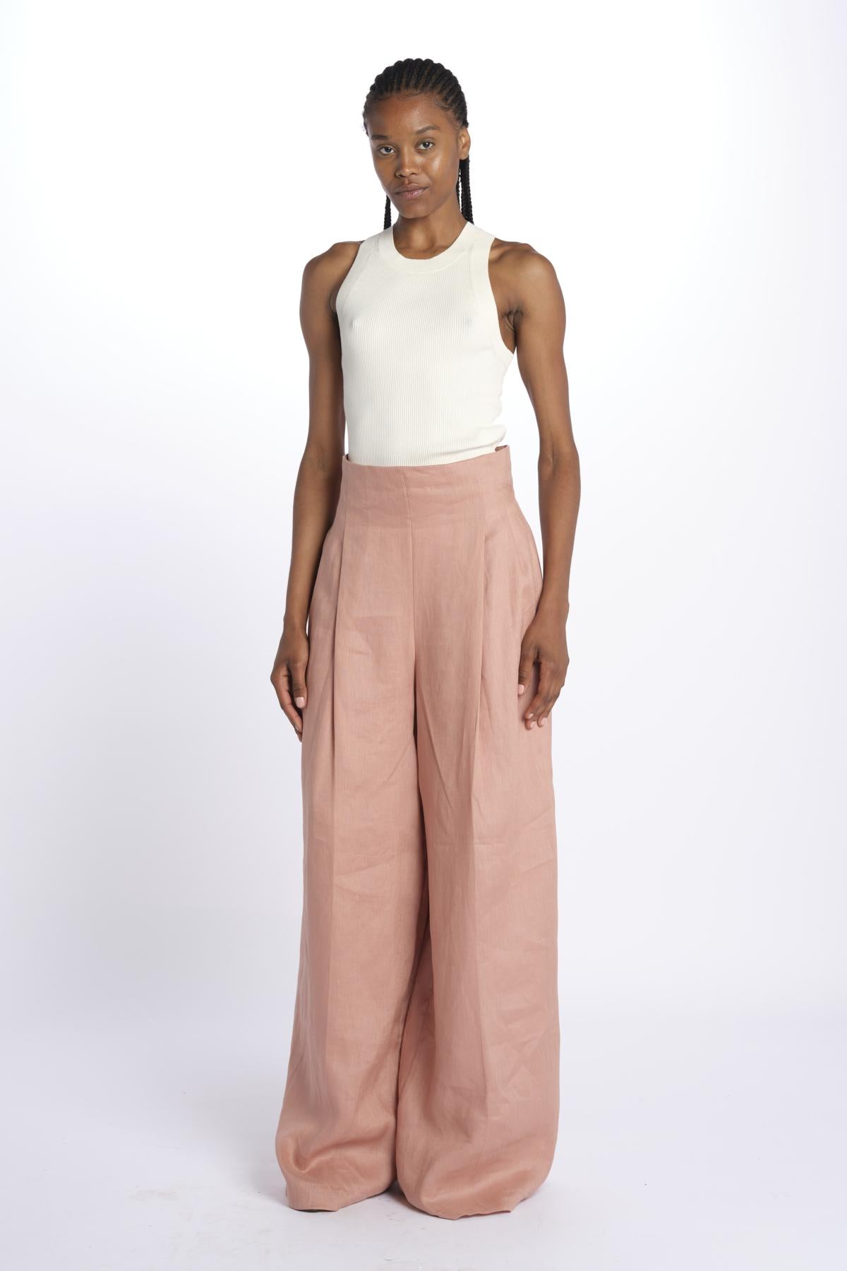HEINI oversized pant by inasami. The model is 174 cm tall and wears a size 1. Composition: 100% linen.