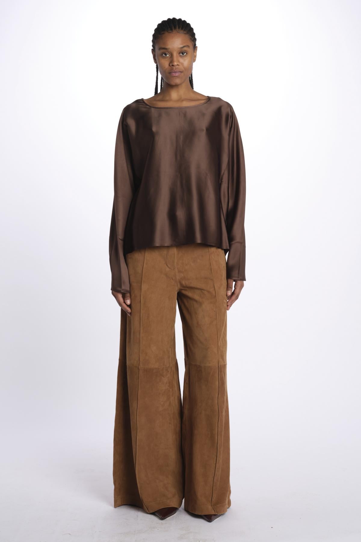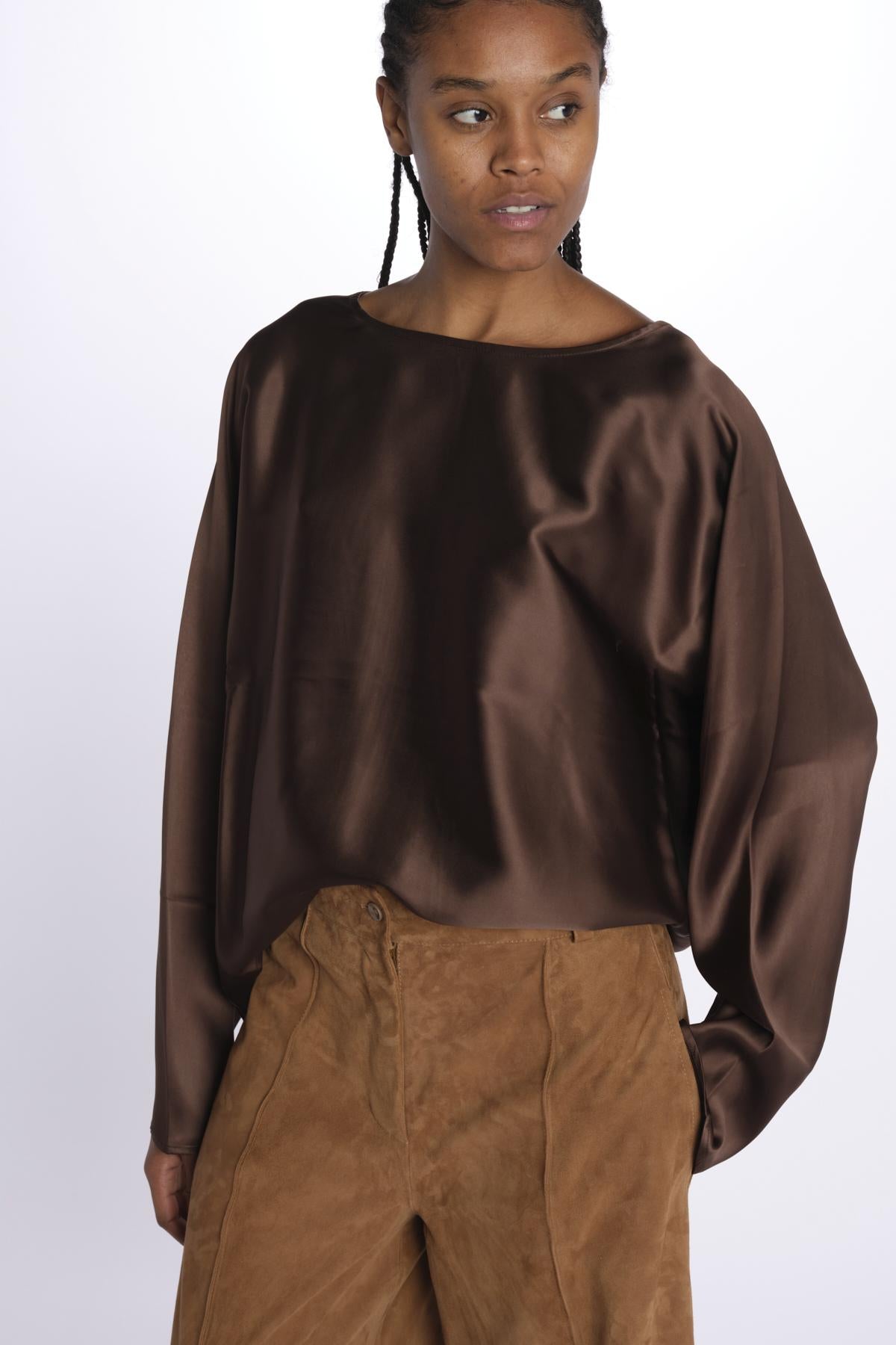 CANDY satin shirt by herskind. The model is 174 cm tall and wears a size 34 (IT 38). Composition: 100% viscose.