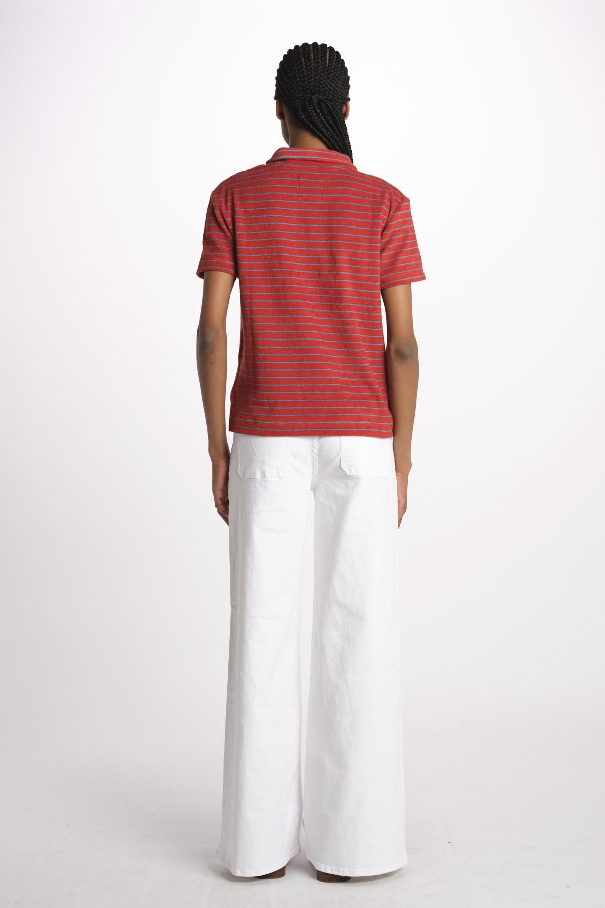 Striped terry polo by howlin'. The model is 174 cm tall and wears an XS. Composition: 100% cotton.