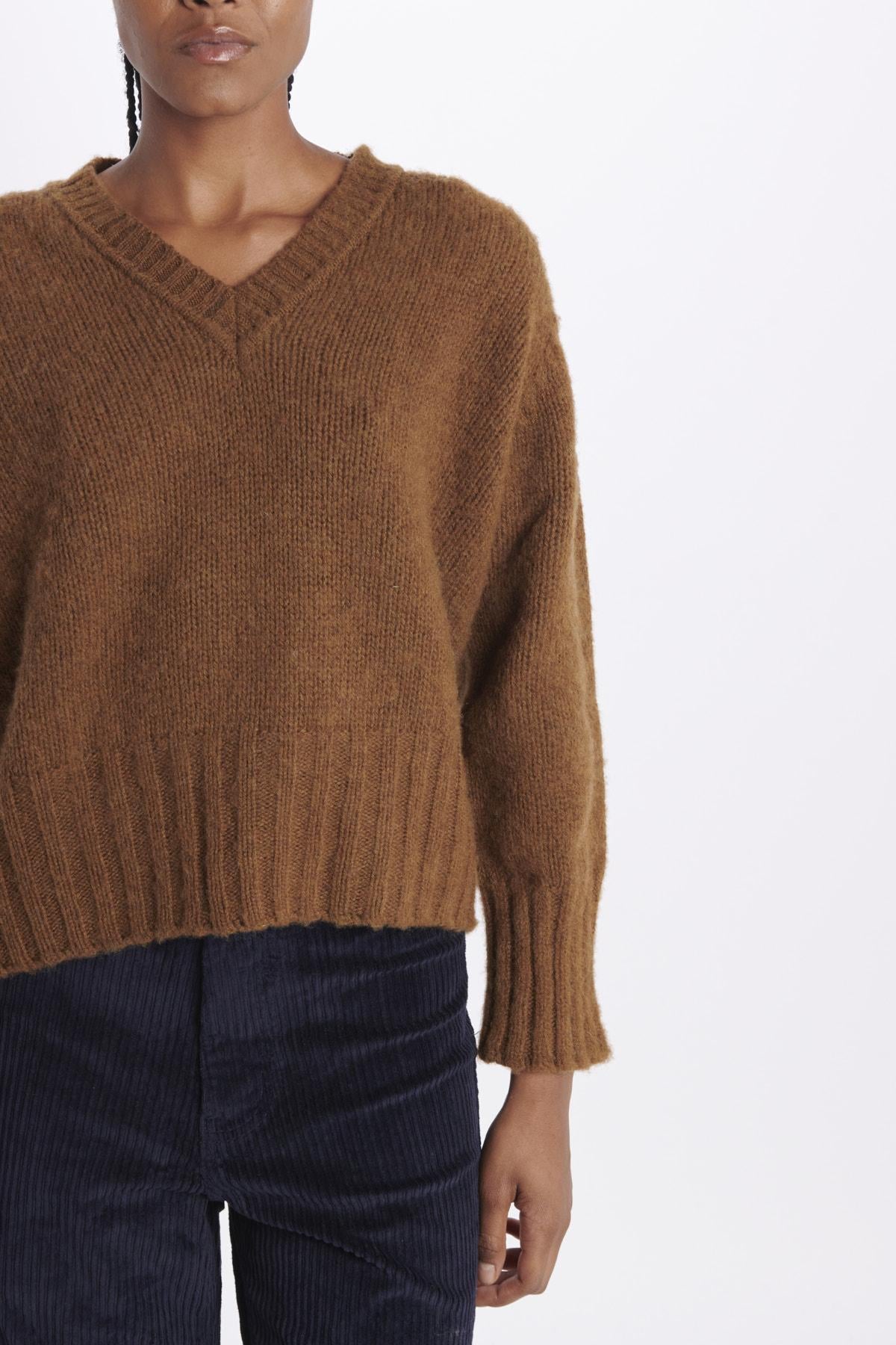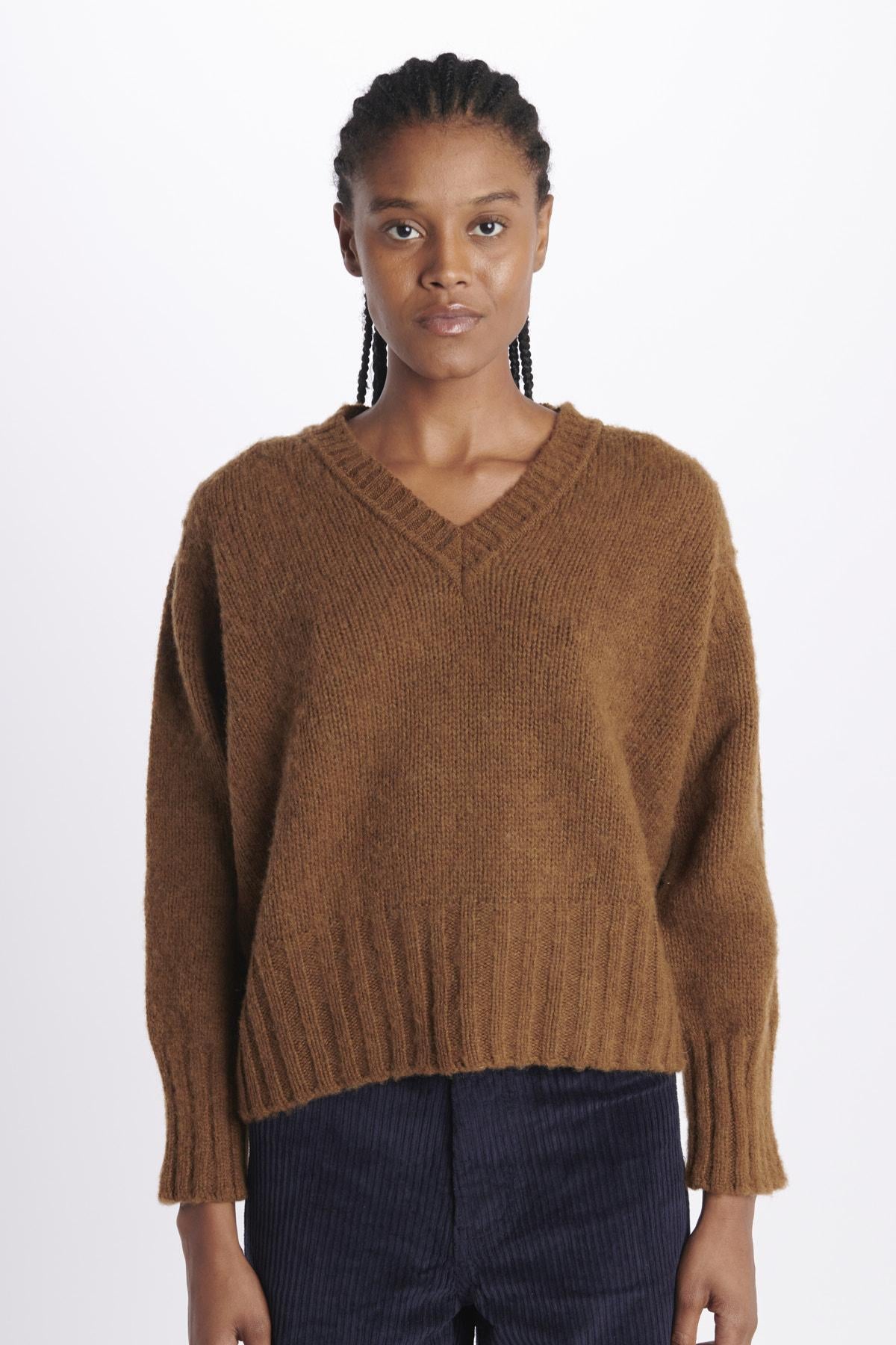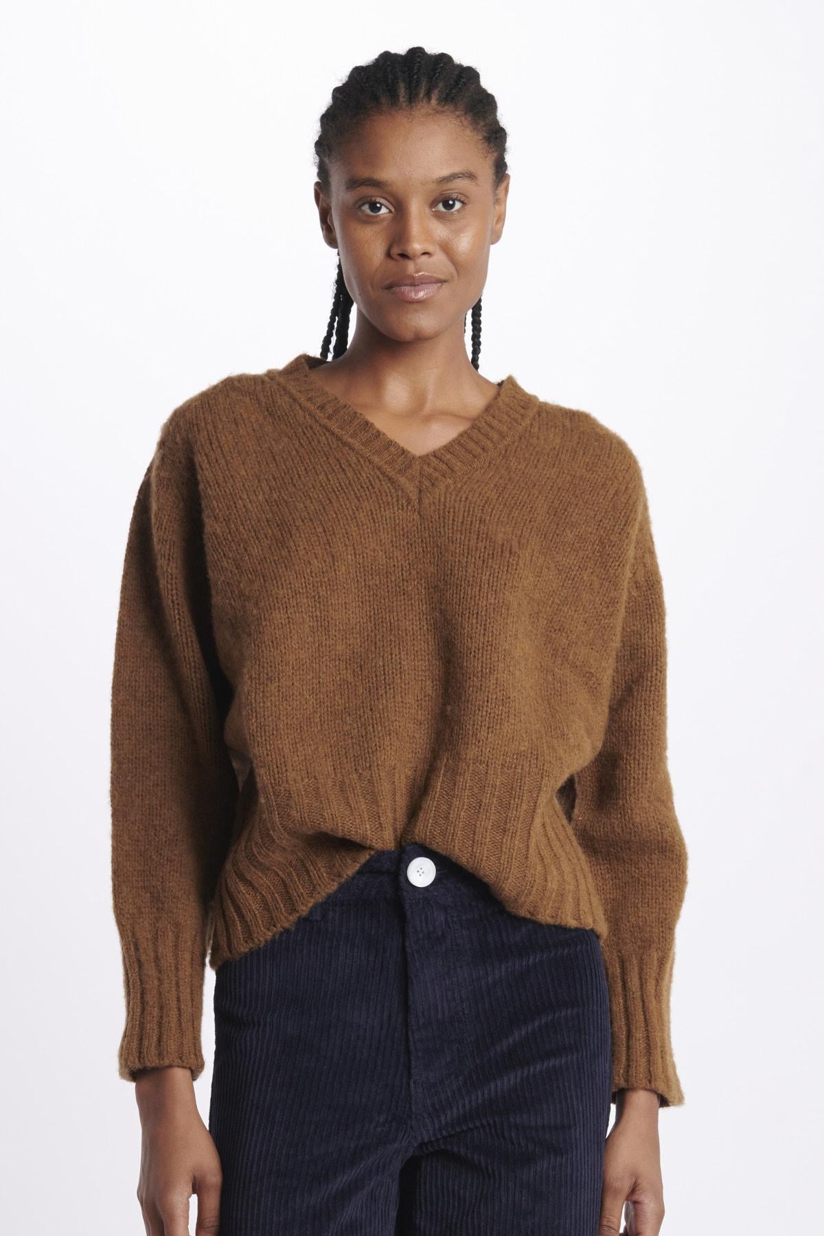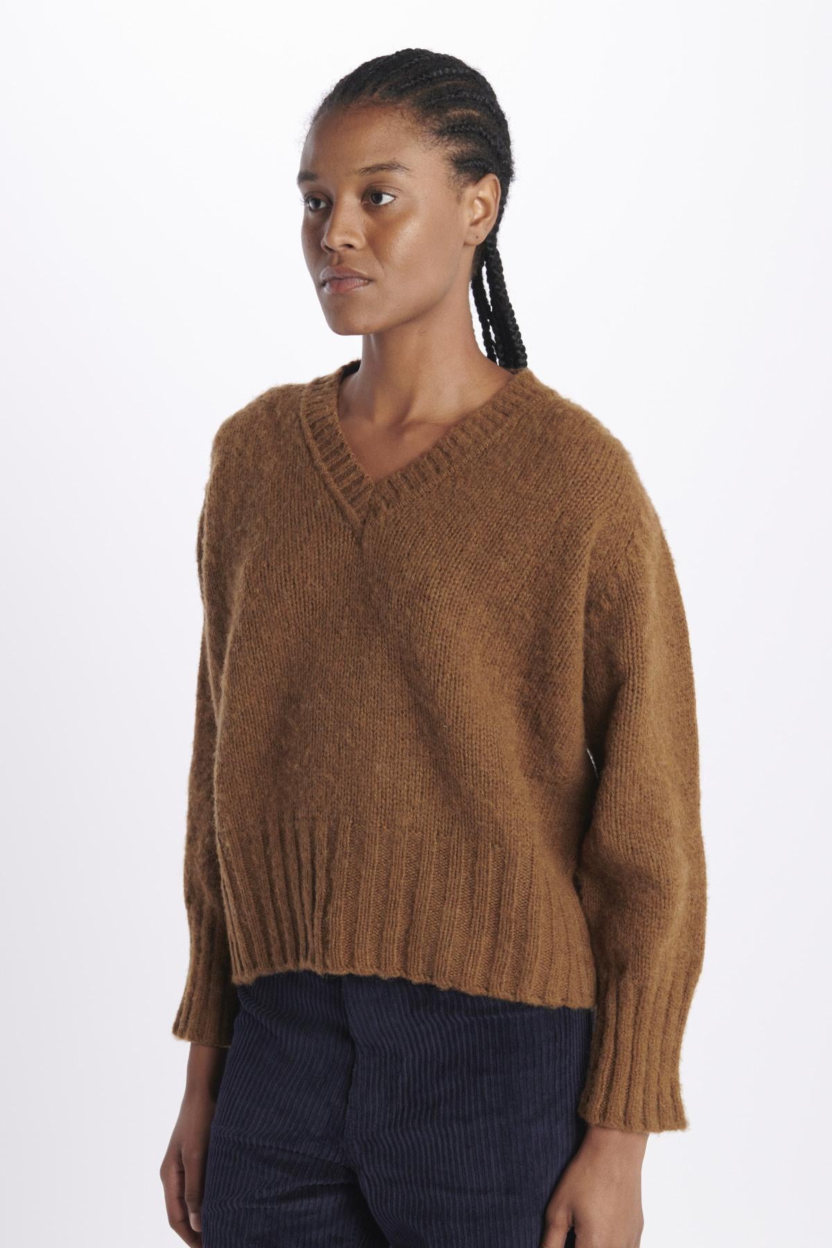 Sweater by Howlin' shetland v-neck. The model is 174 cm tall and wears size U. Composition: 100% Wool.