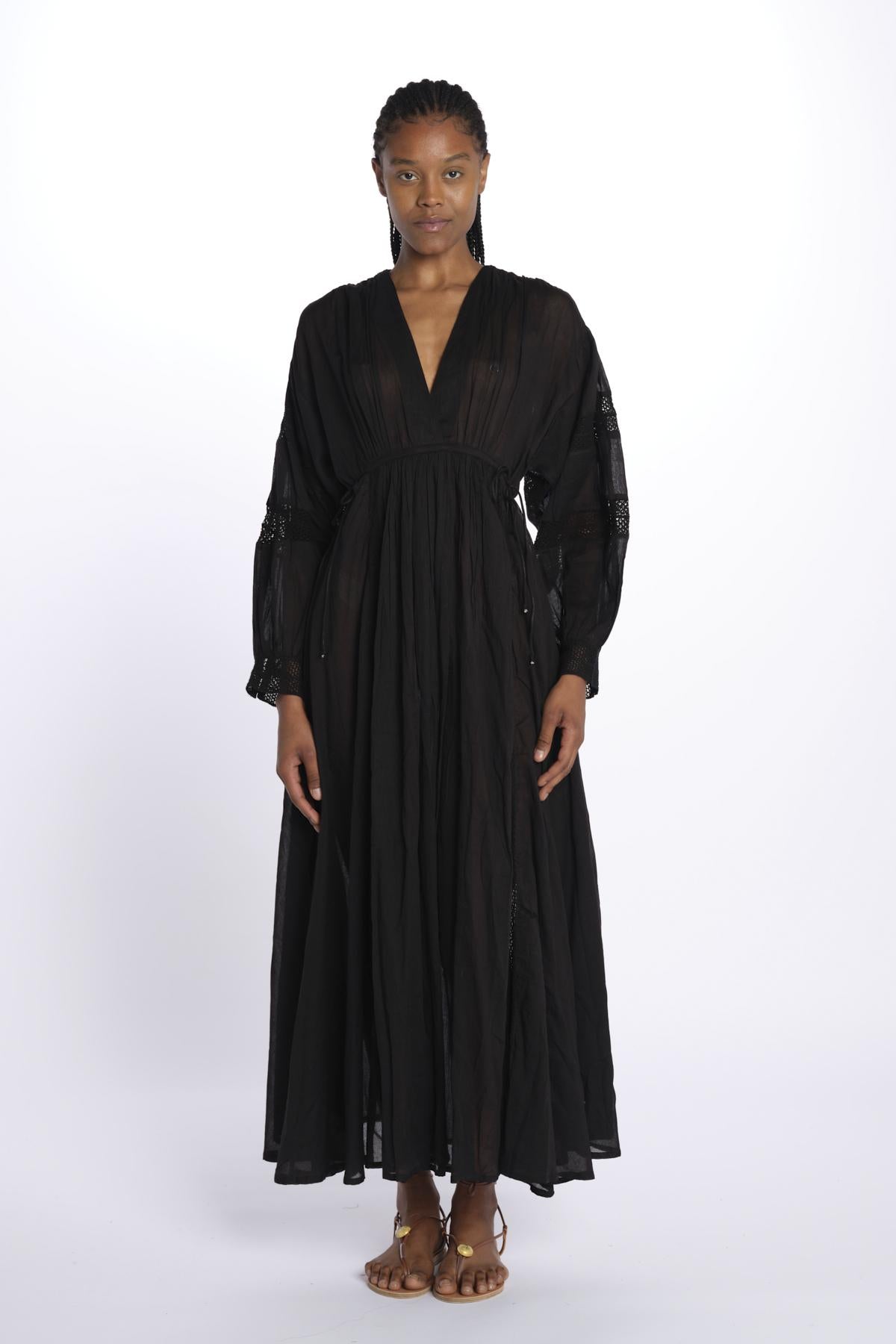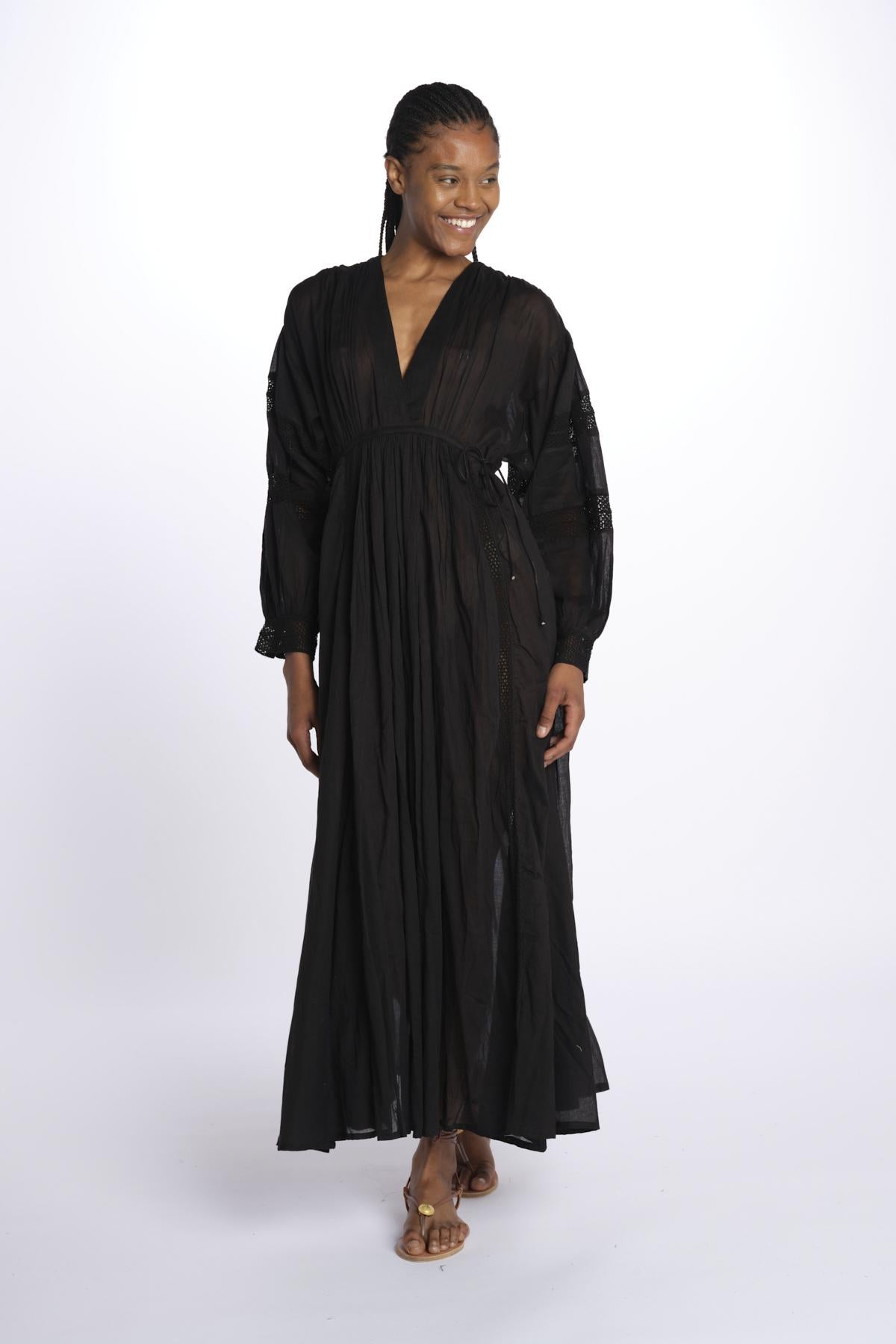 IBIZA maxi abito con scollo e maniche lunghe IBIZA NOIR laraethnics