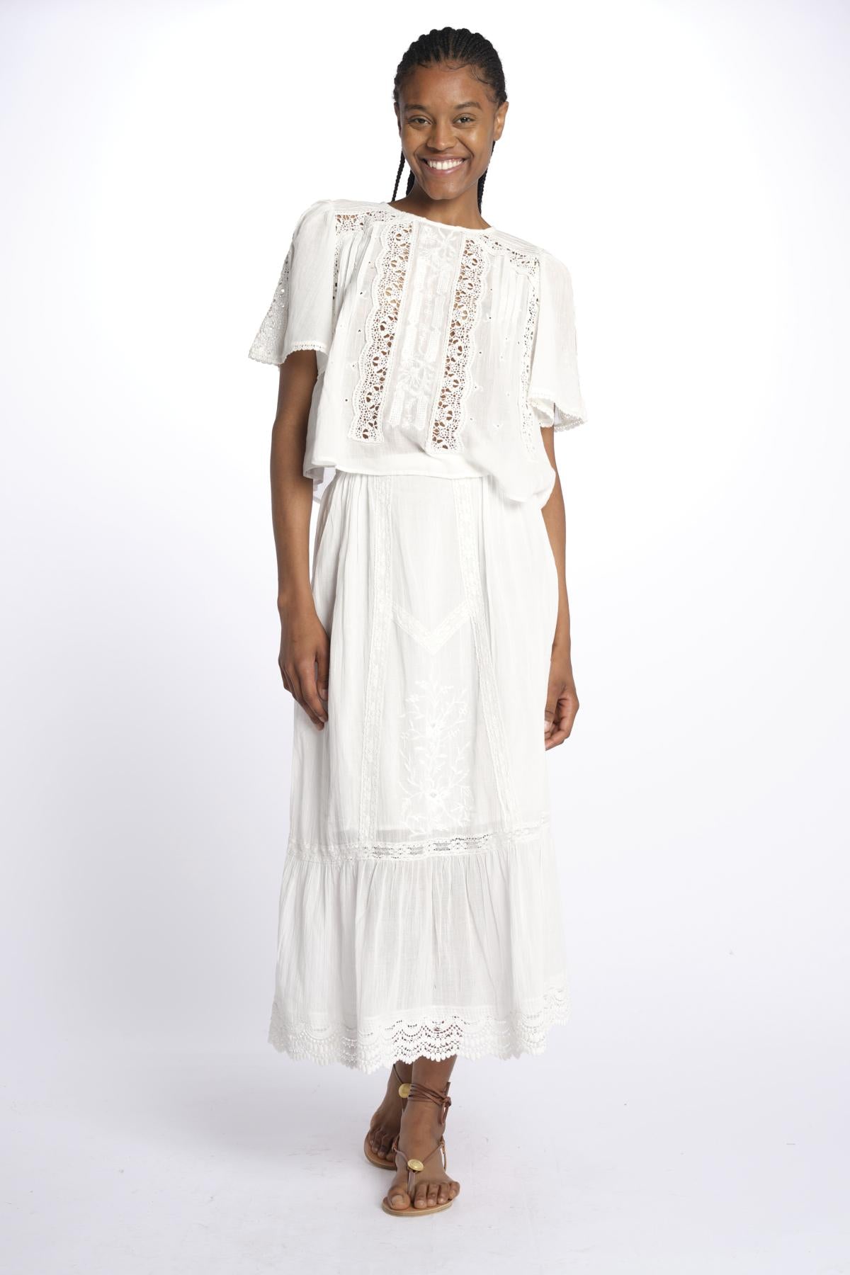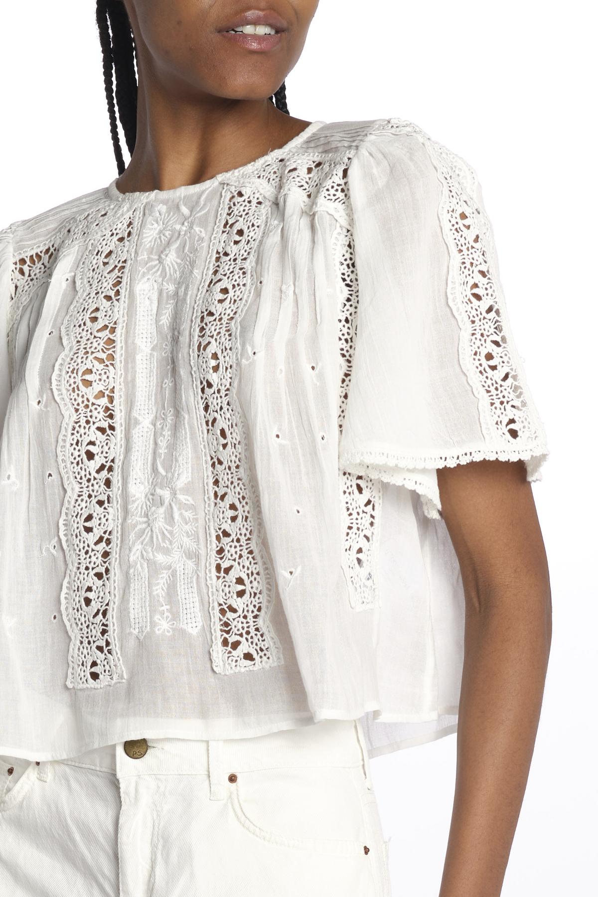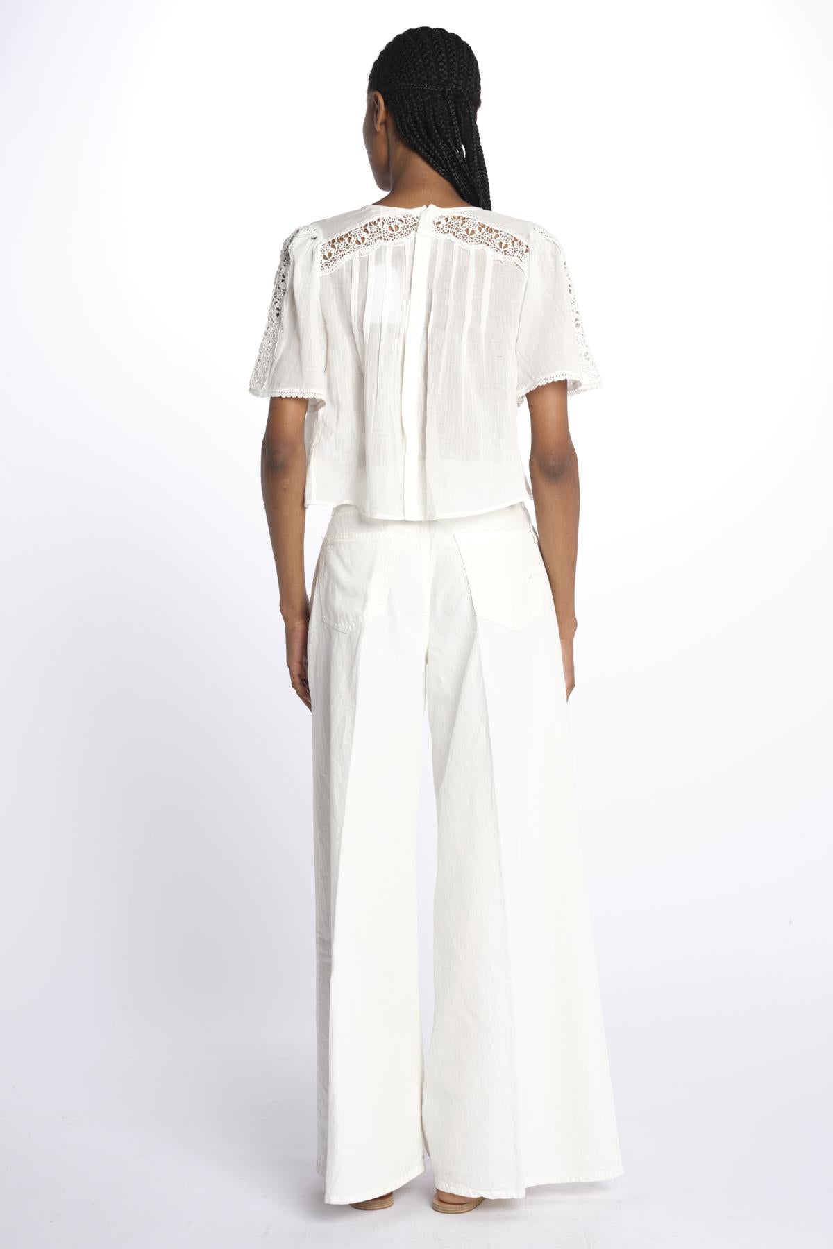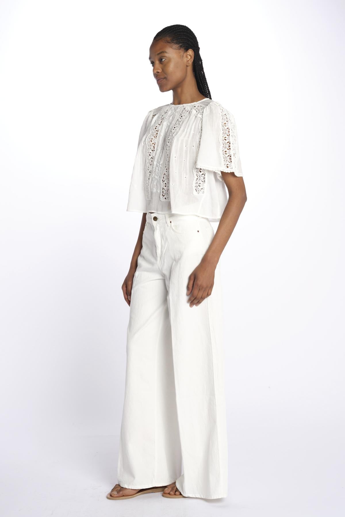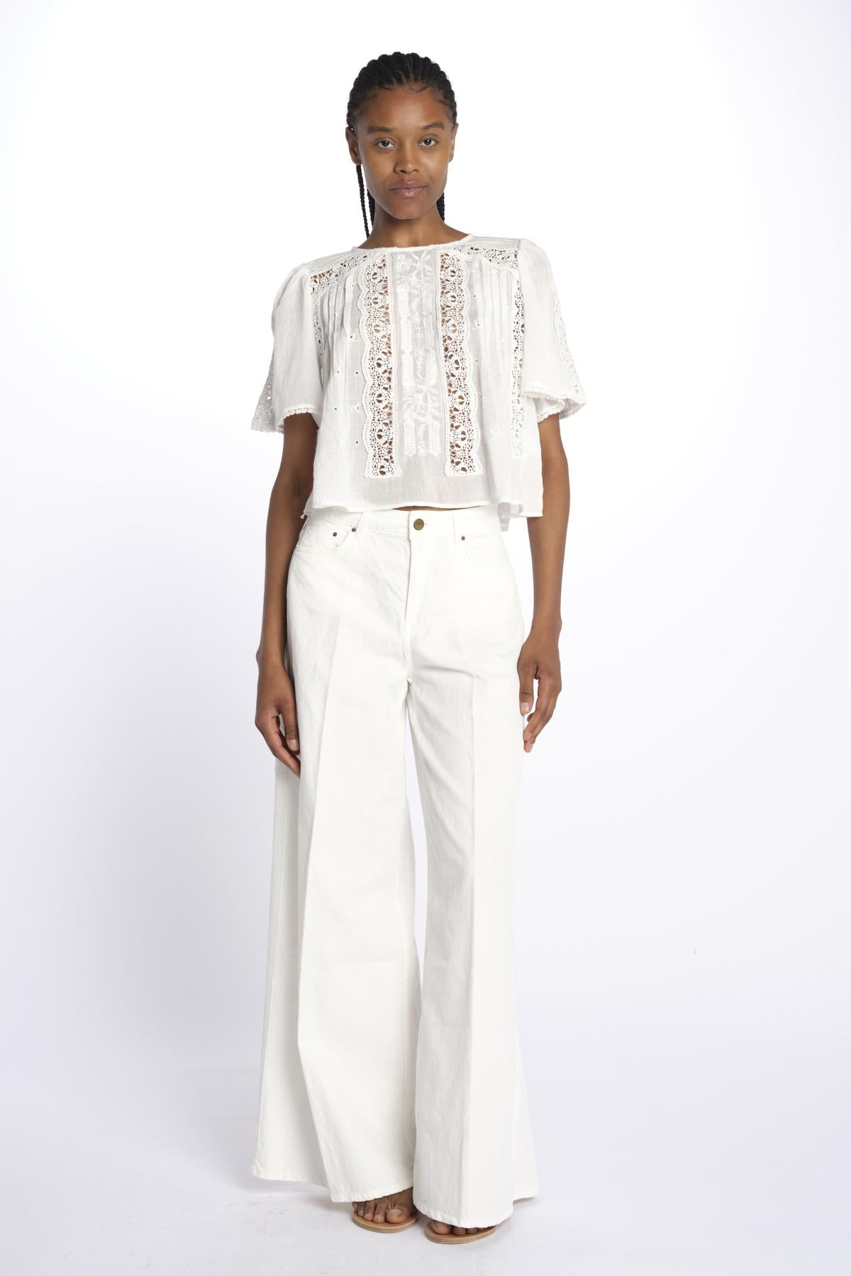 INGRID cropped embroidered shirt by louise misha. The model is 174 cm tall and wears a size 36 (IT40). Composition: 100% organic cotton.