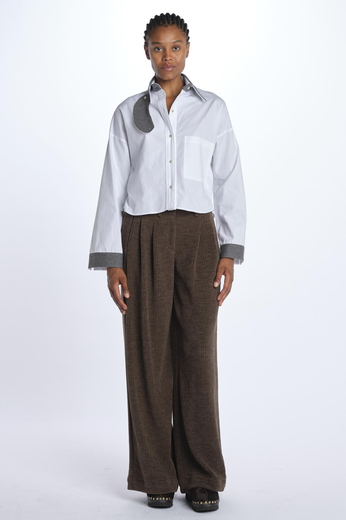 LELLY by Jejia flannel collar shirt. The model is 174 cm tall and wears a 38. Composition: 100% cotton.