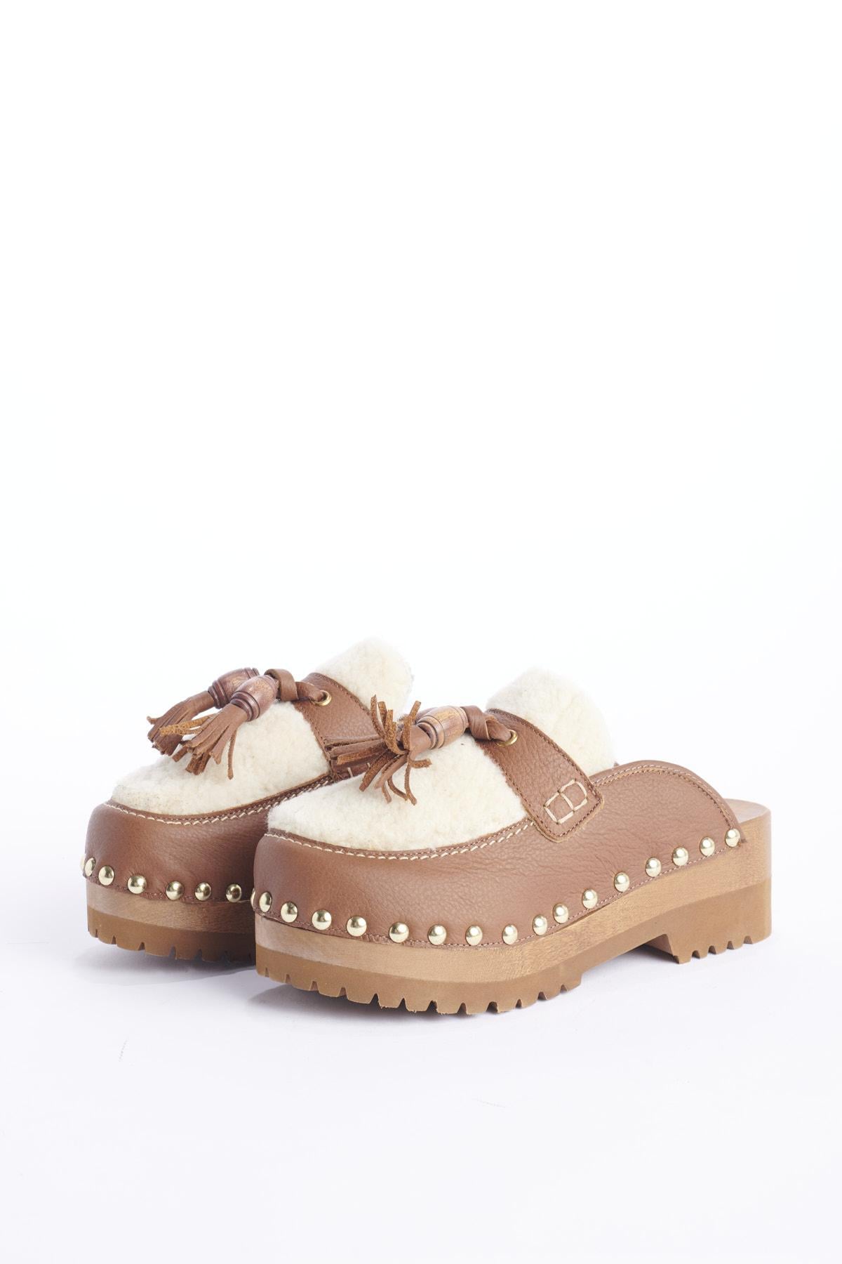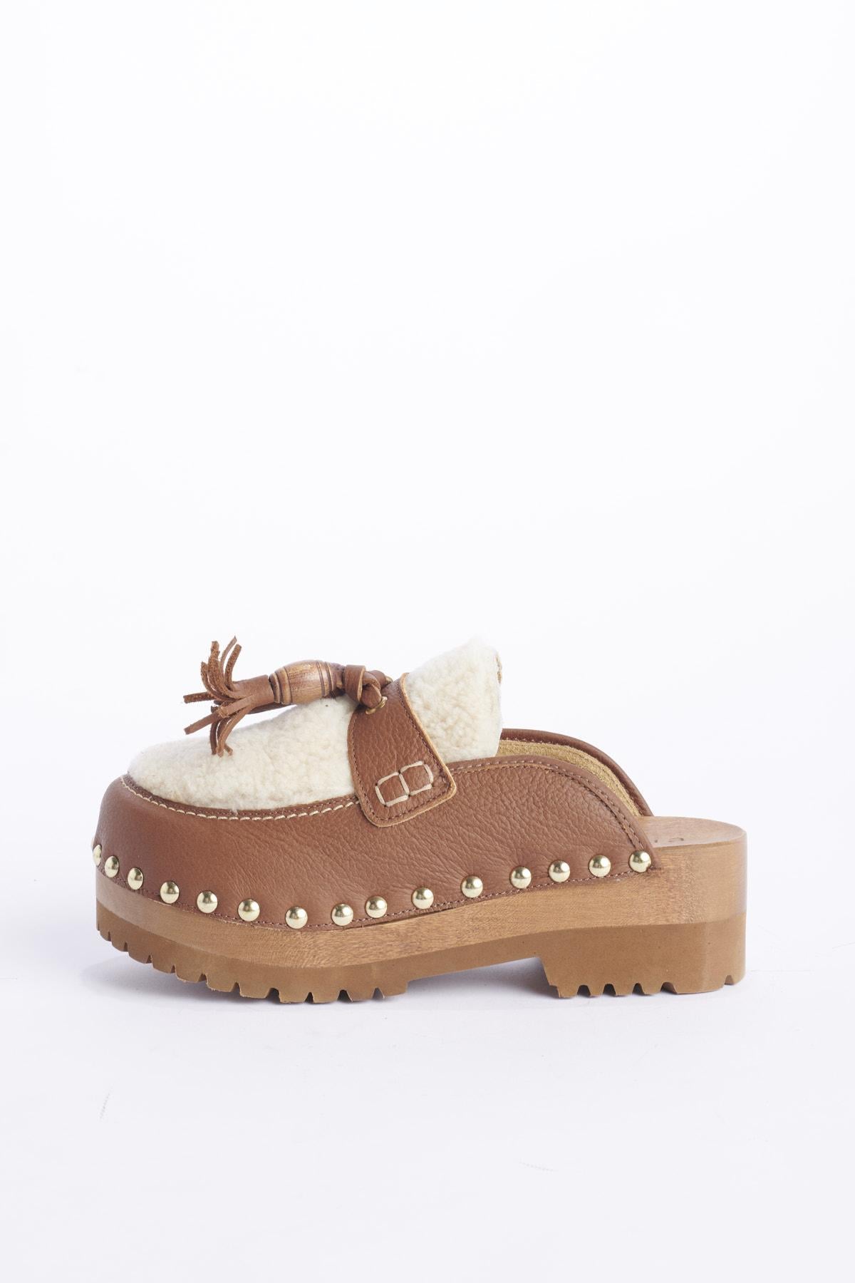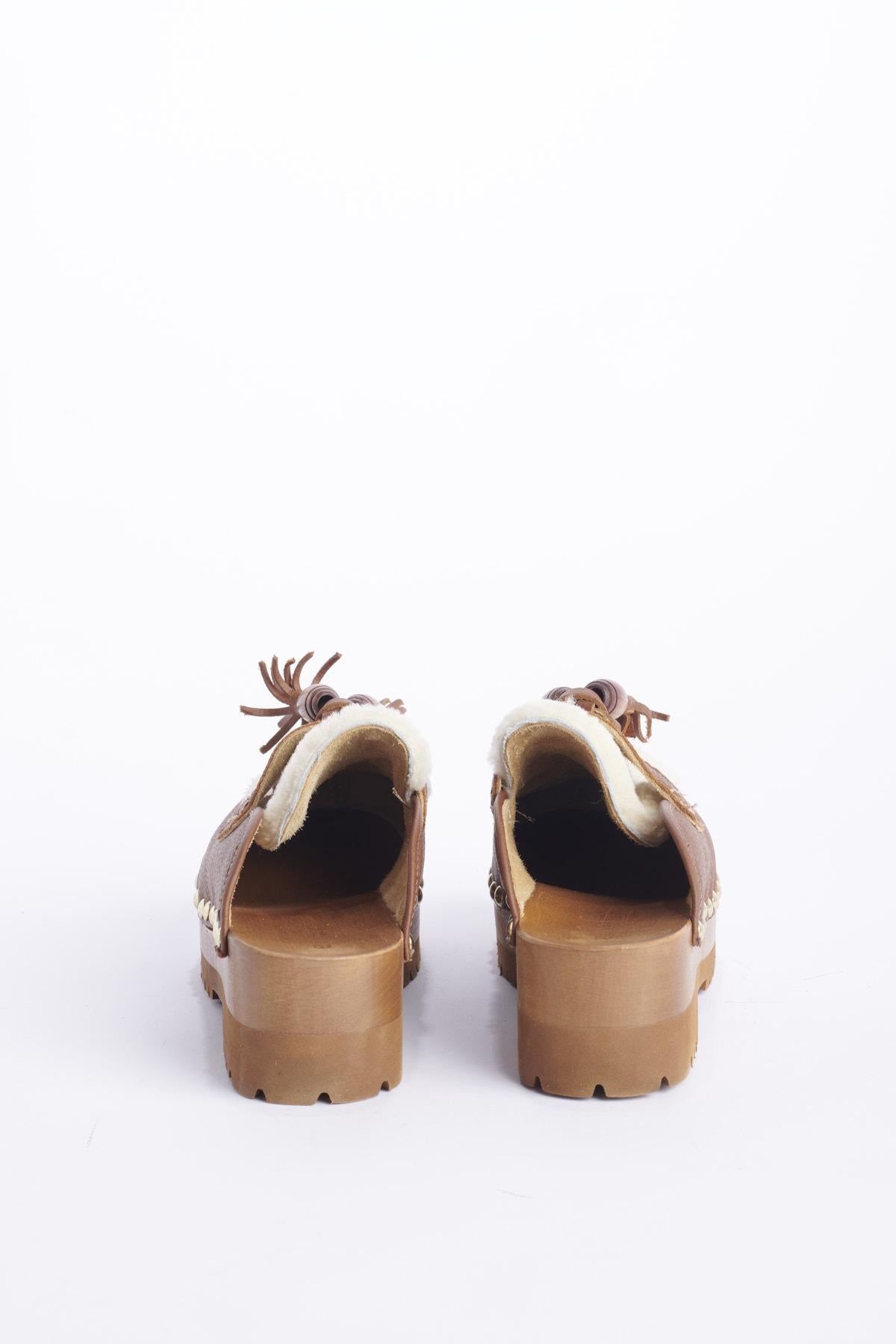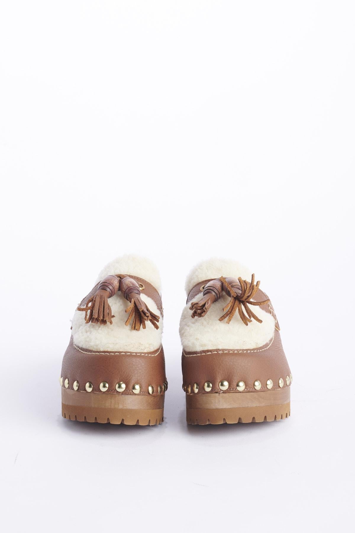 Shoe by Jejia clog with tassel in leather and sheepskin. Composition: Leather, Sheepskin, Wood.