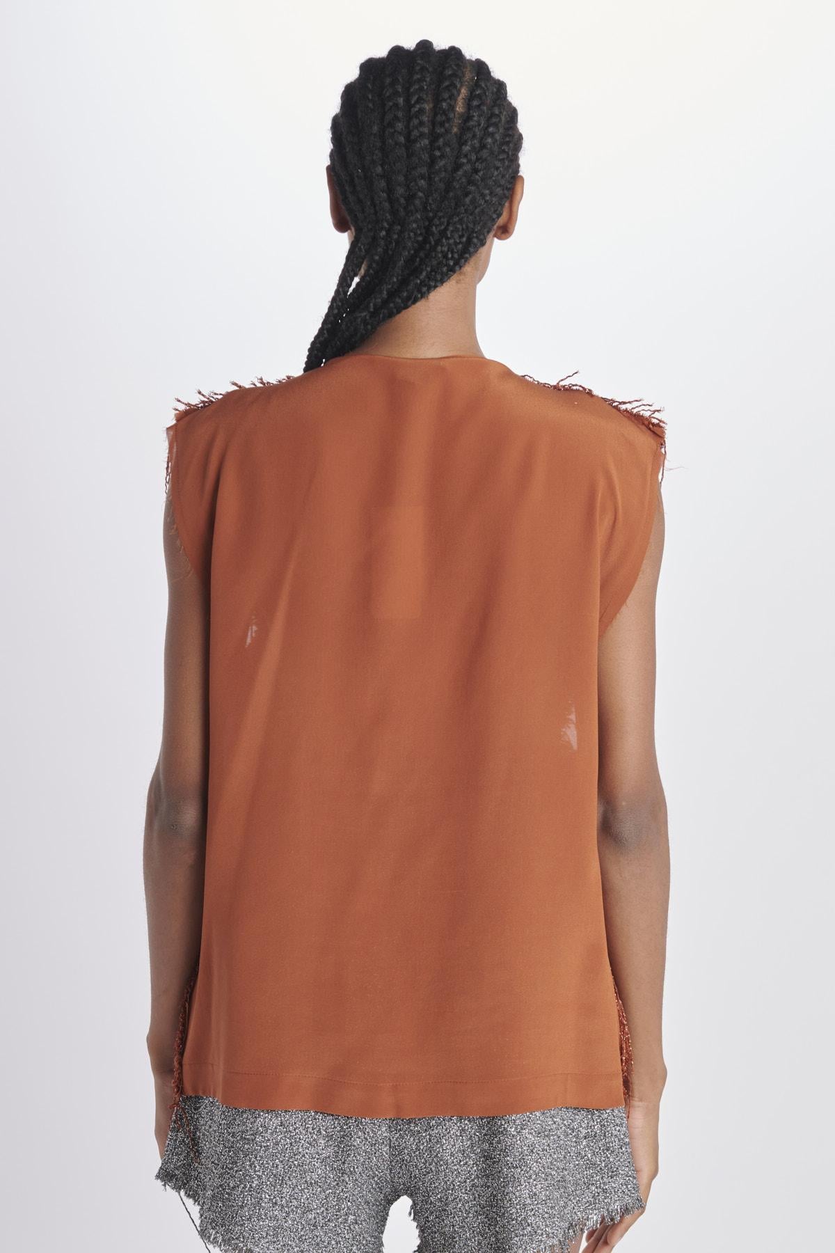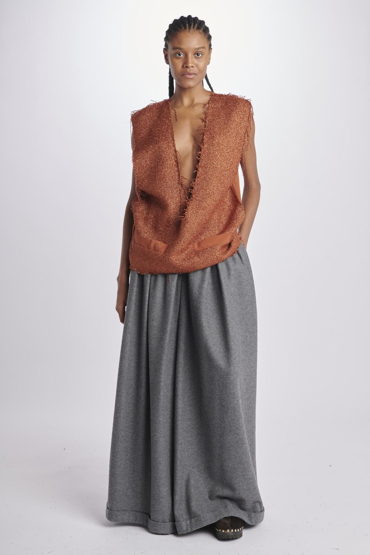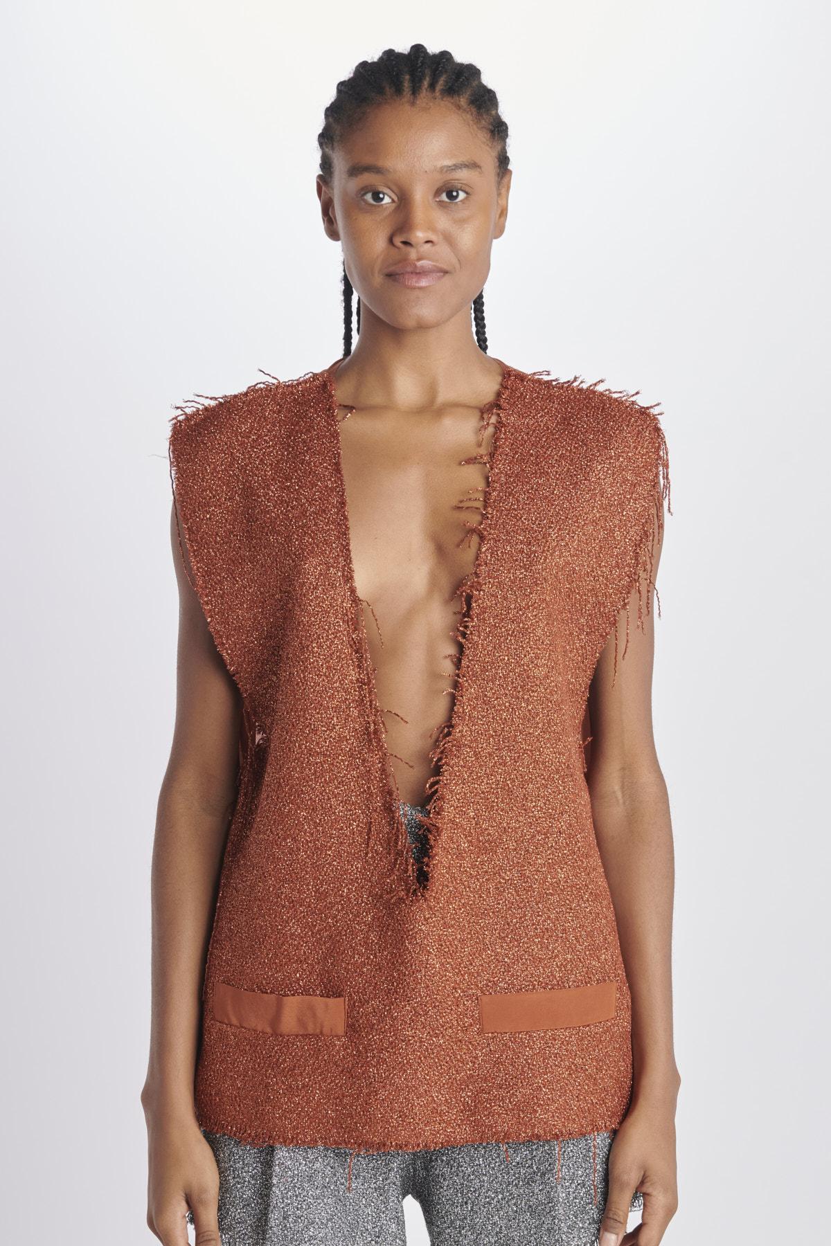 Gilet by Jejia di lurex. The model is 174 cm tall and wears size 38. Composition: 65% Viscose, 22% Polyester, 13% Polyamide.