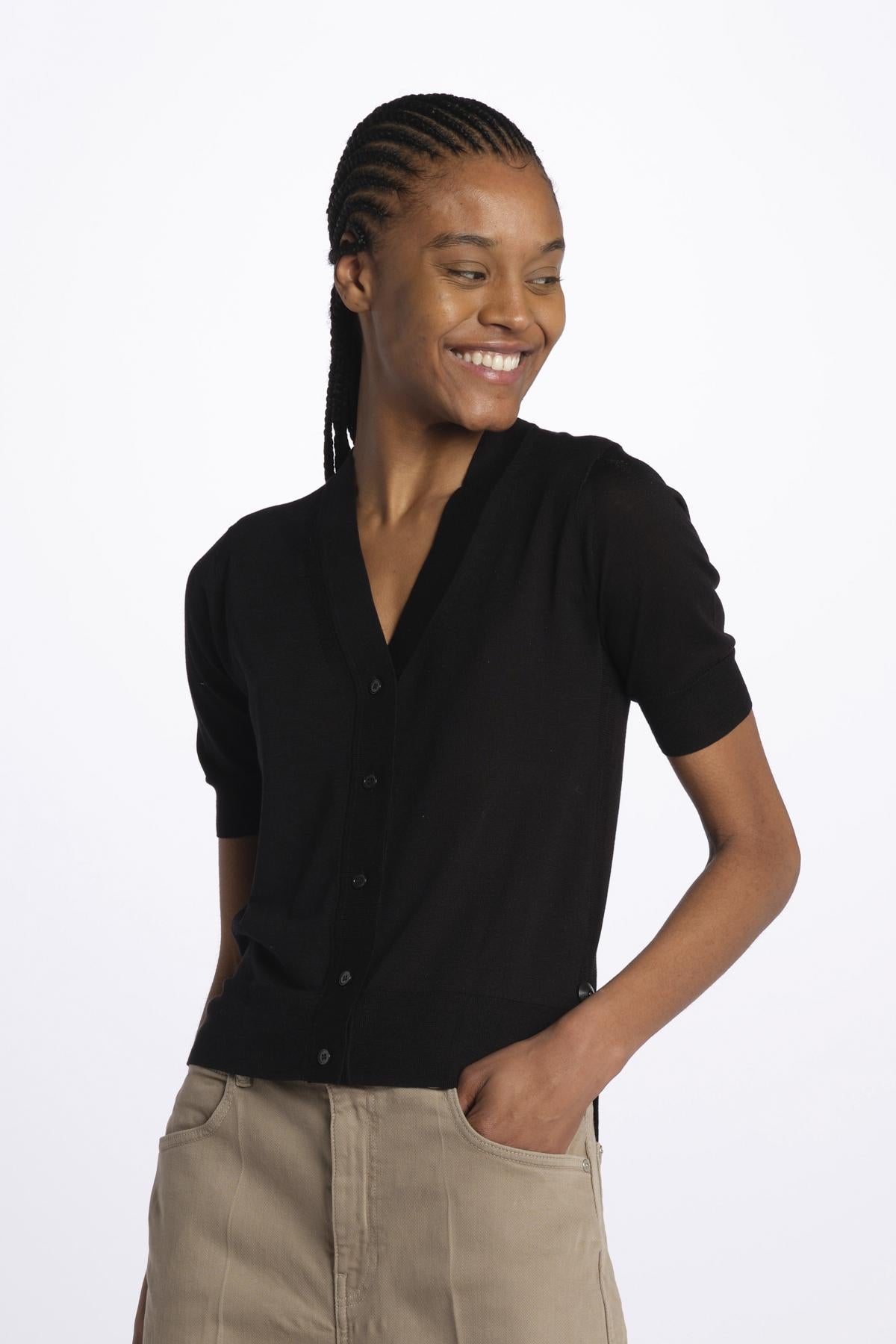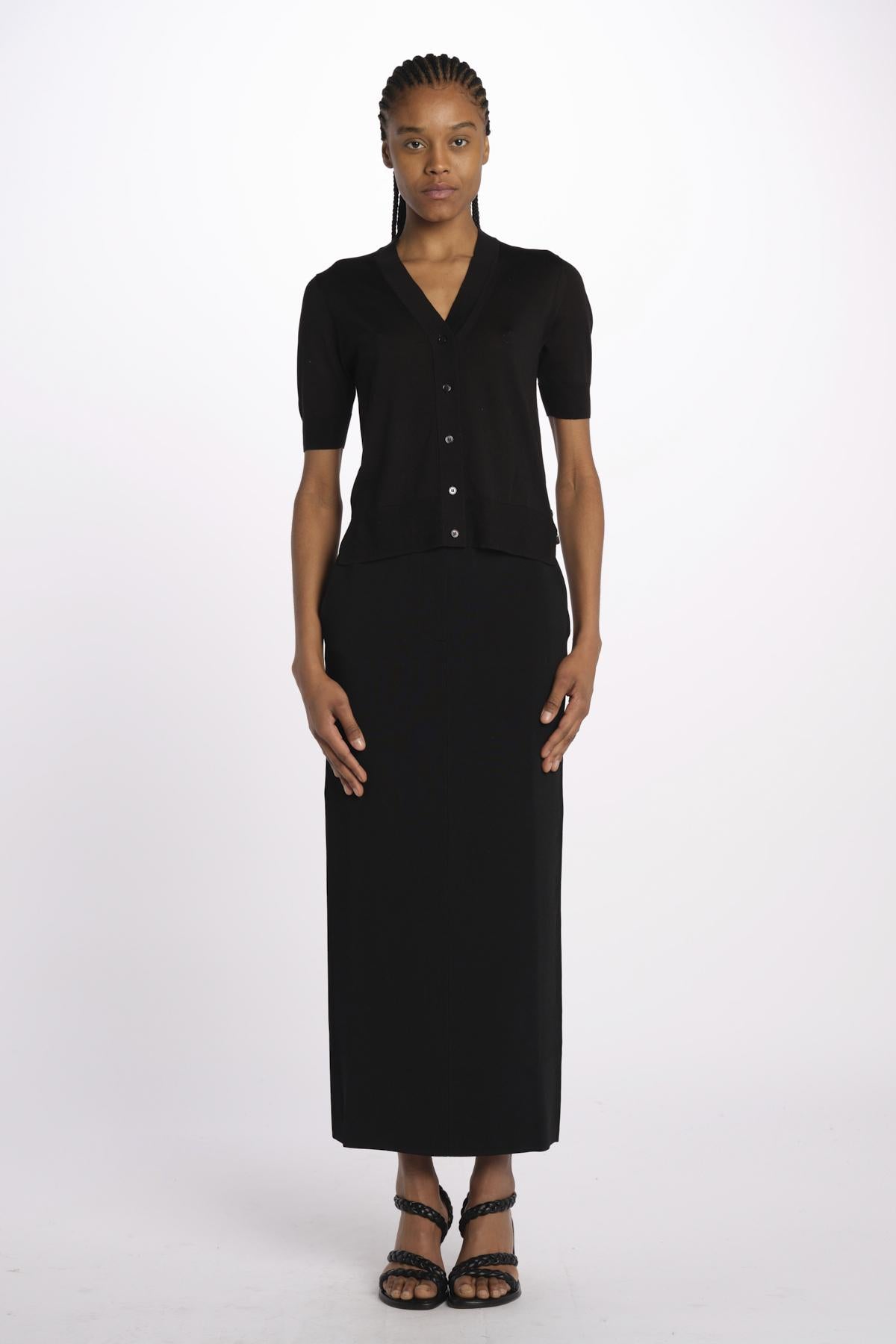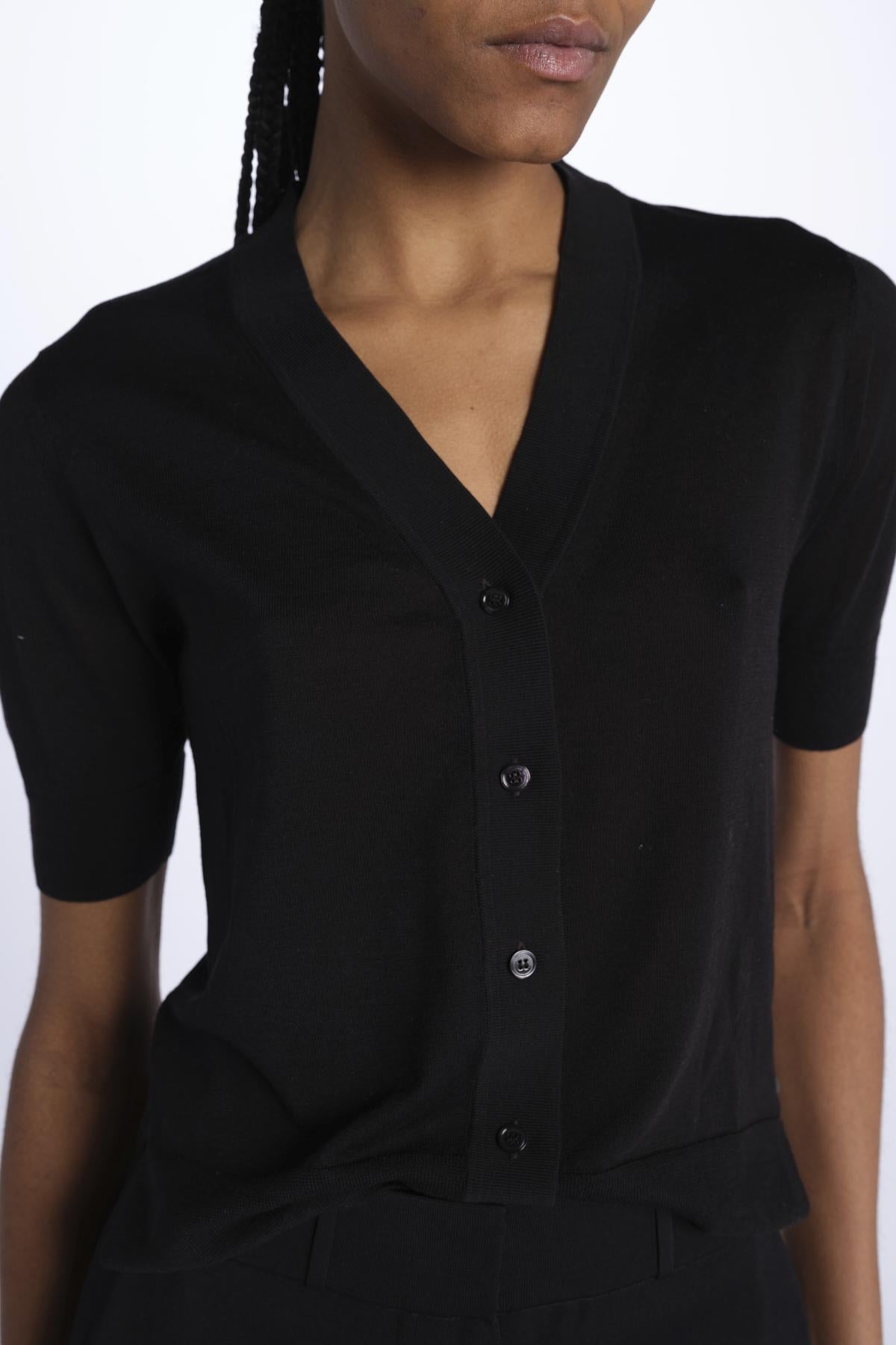 SUPERFINE cardigan by joseph. The model is 174 cm tall and wears a size XS. Composition: 57% silk, 43% cotton.