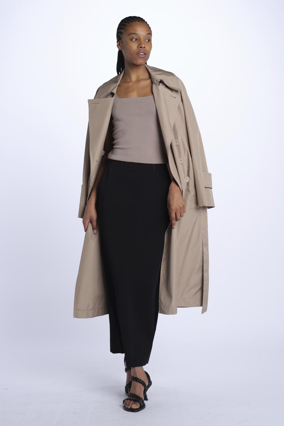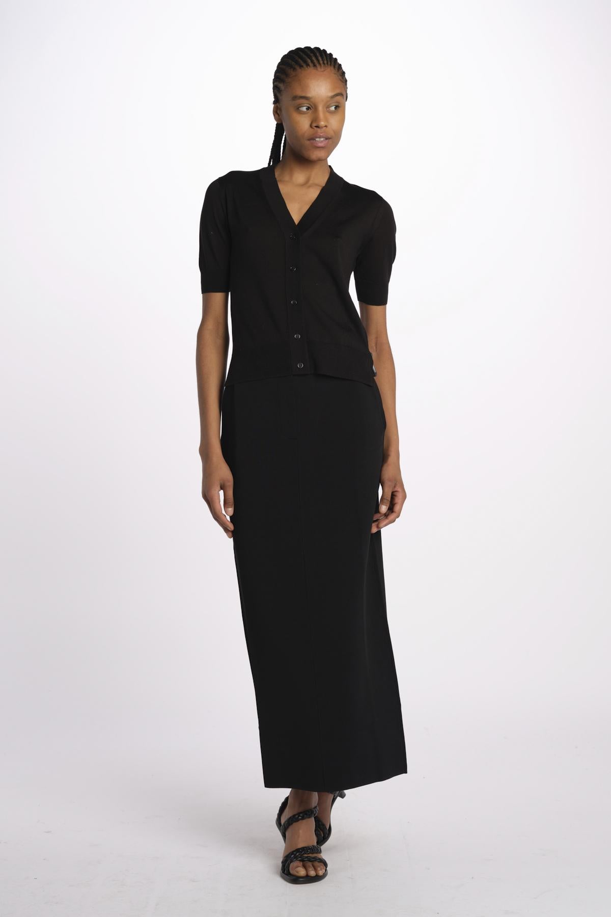 MILANO long skirt by joseph. The model is 174 cm tall and wears a size XS. Composition: 73% viscose, 24% polyamide, 3% elastane.
