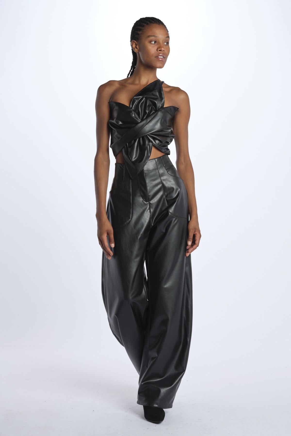 ONYX leather pants by just bee queen. The model is 174 cm tall and wears a size S. Composition 95% polyester, 5% spandex.
