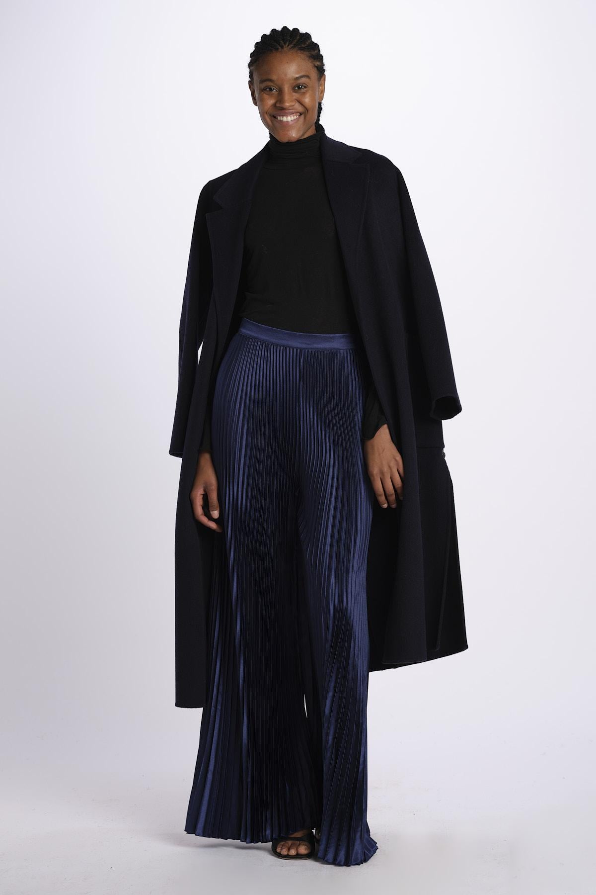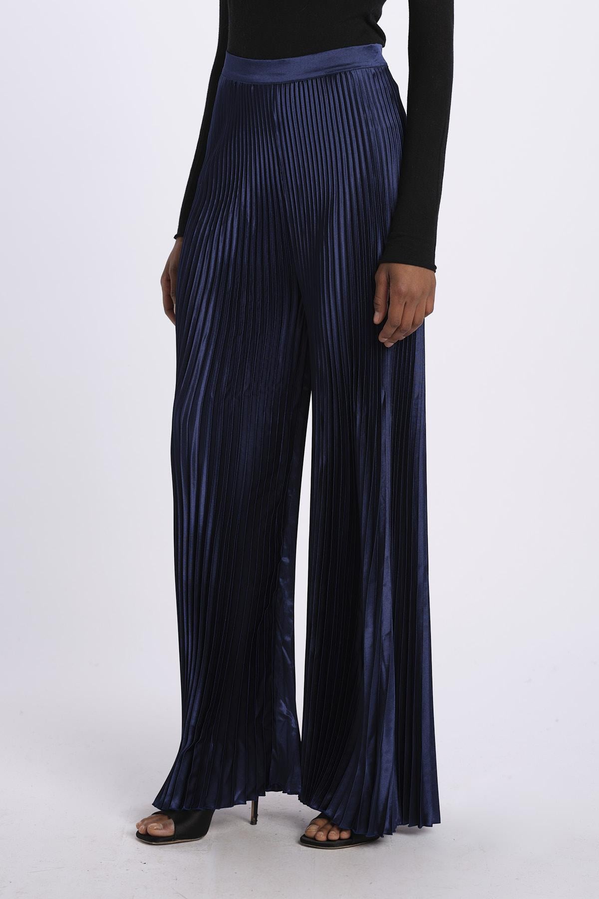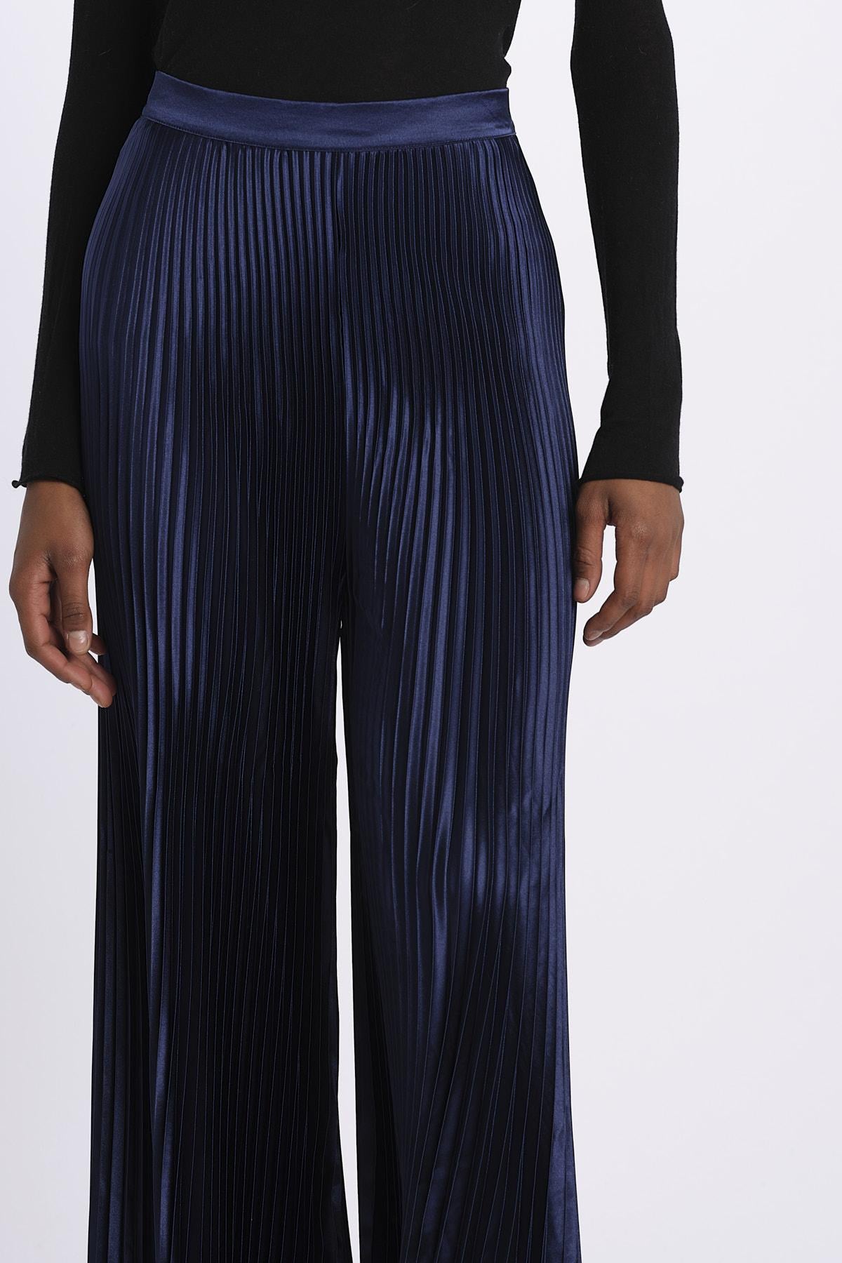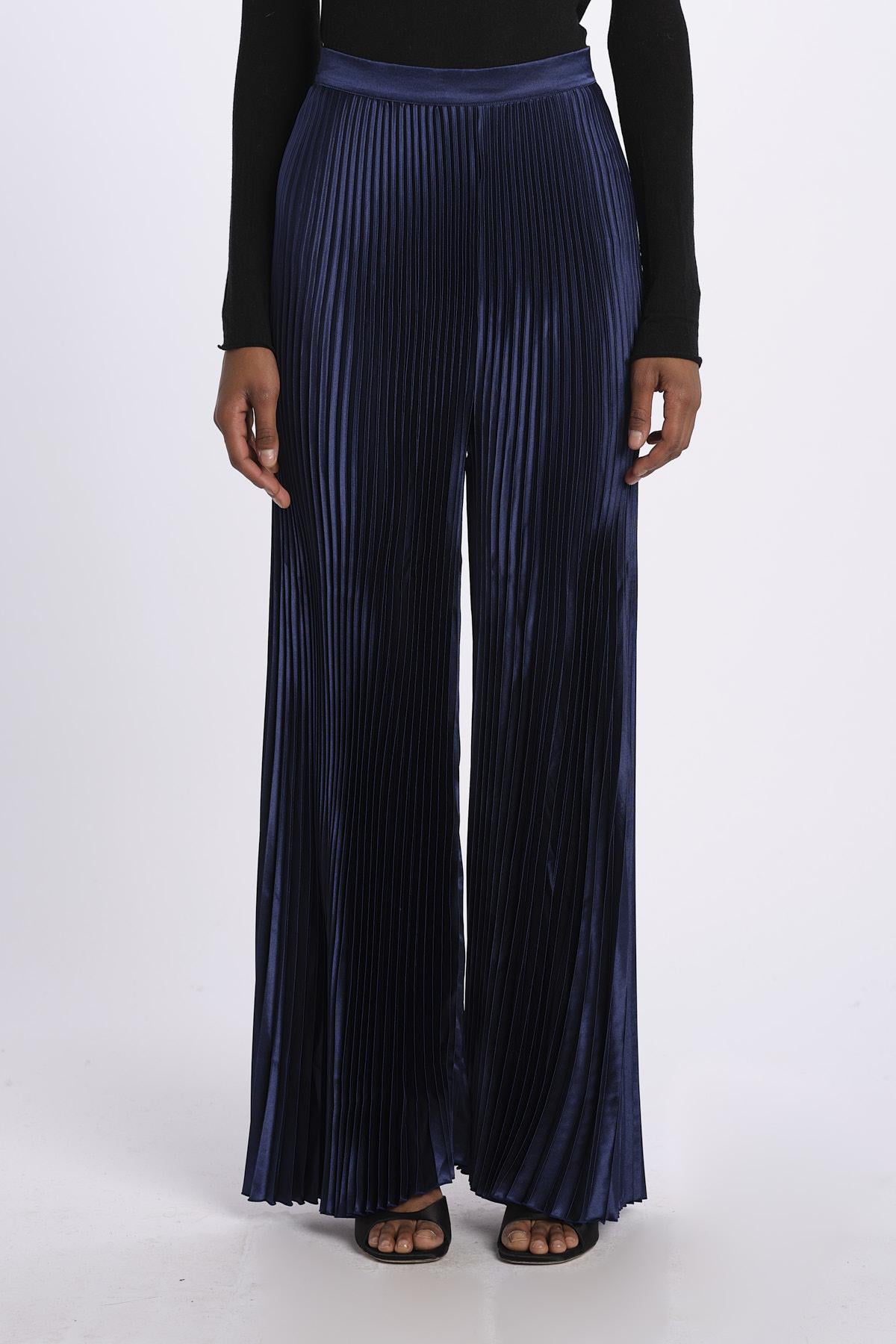 Pants by l'Idee long pleated. The model is 174 cm tall and wears size 8. Composition: 100% Polyester.