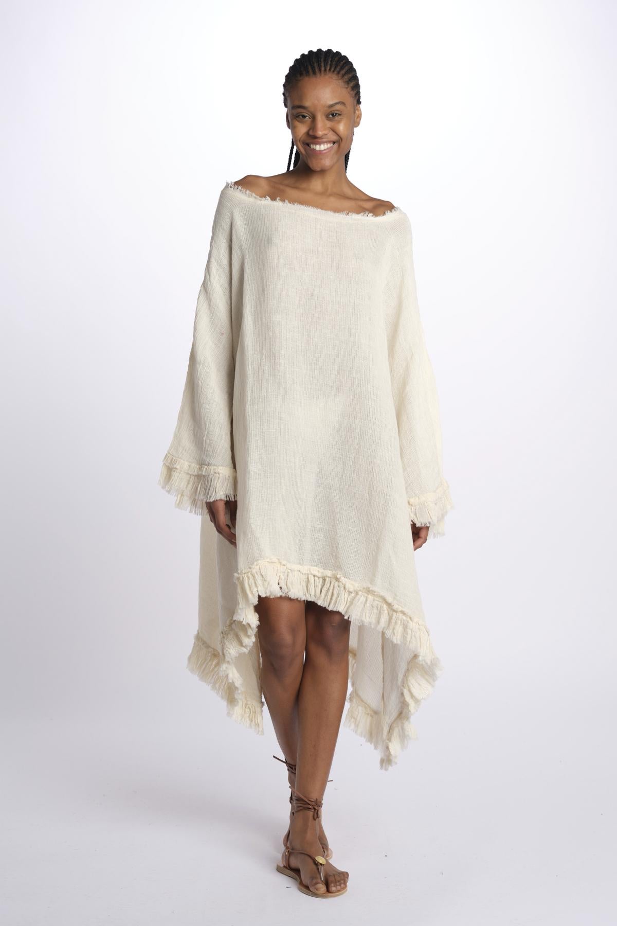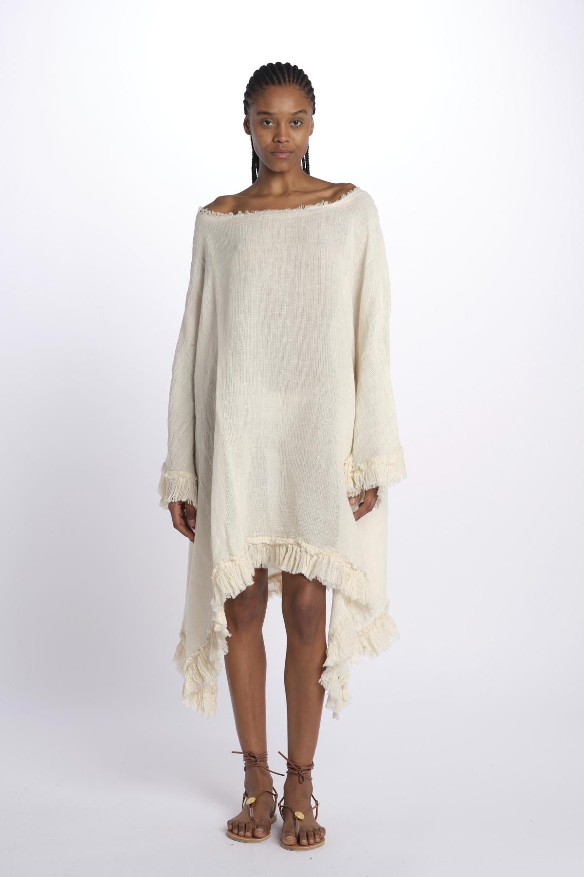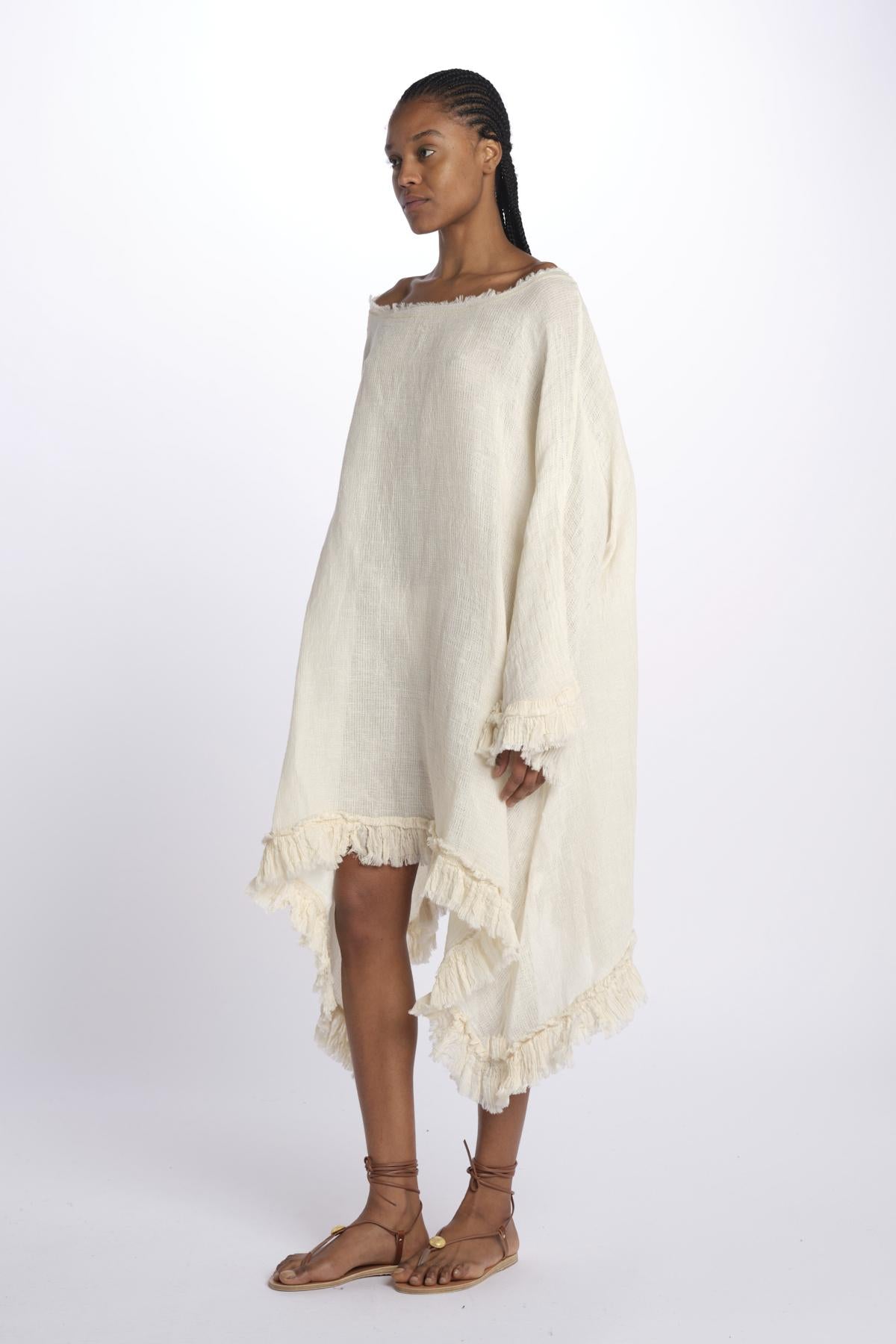 ALBA mini dress by la strega. The model is 174 cm tall and wears a one size. Composition: 100% cotton.
