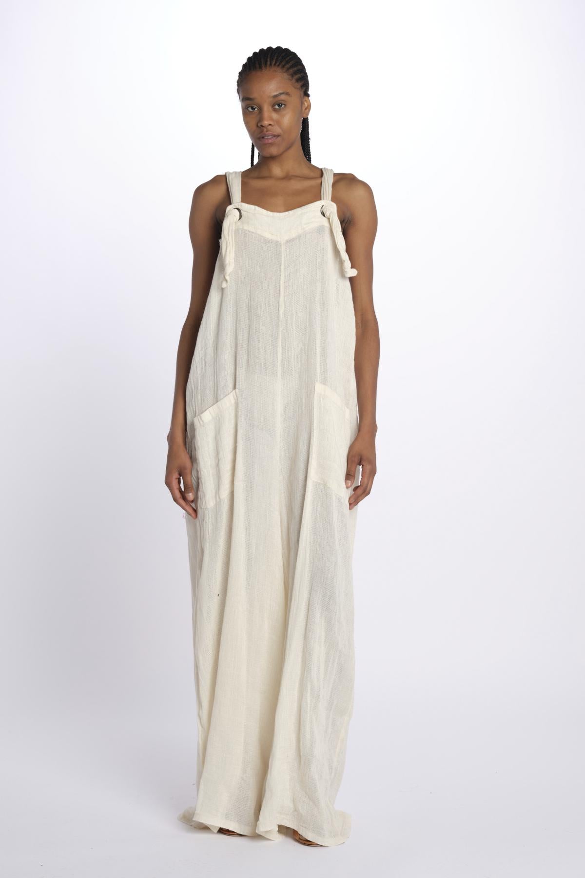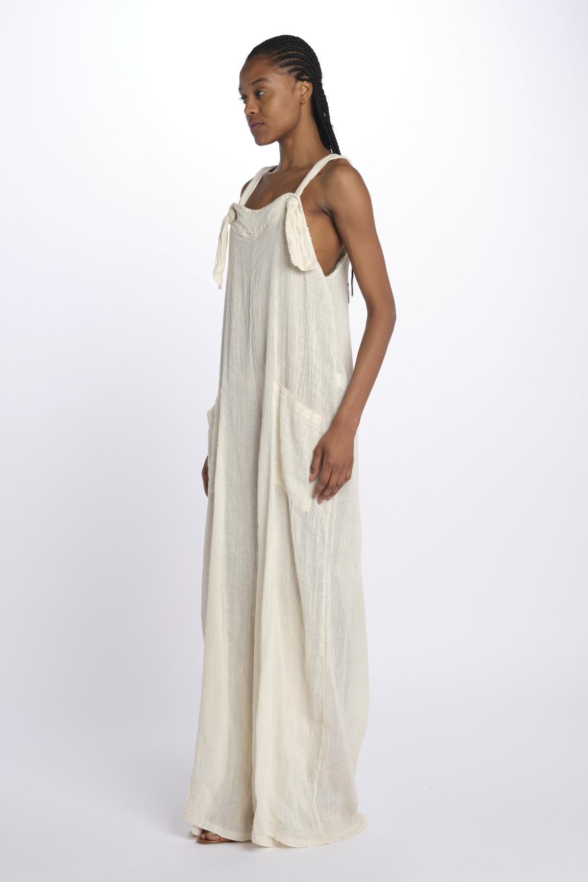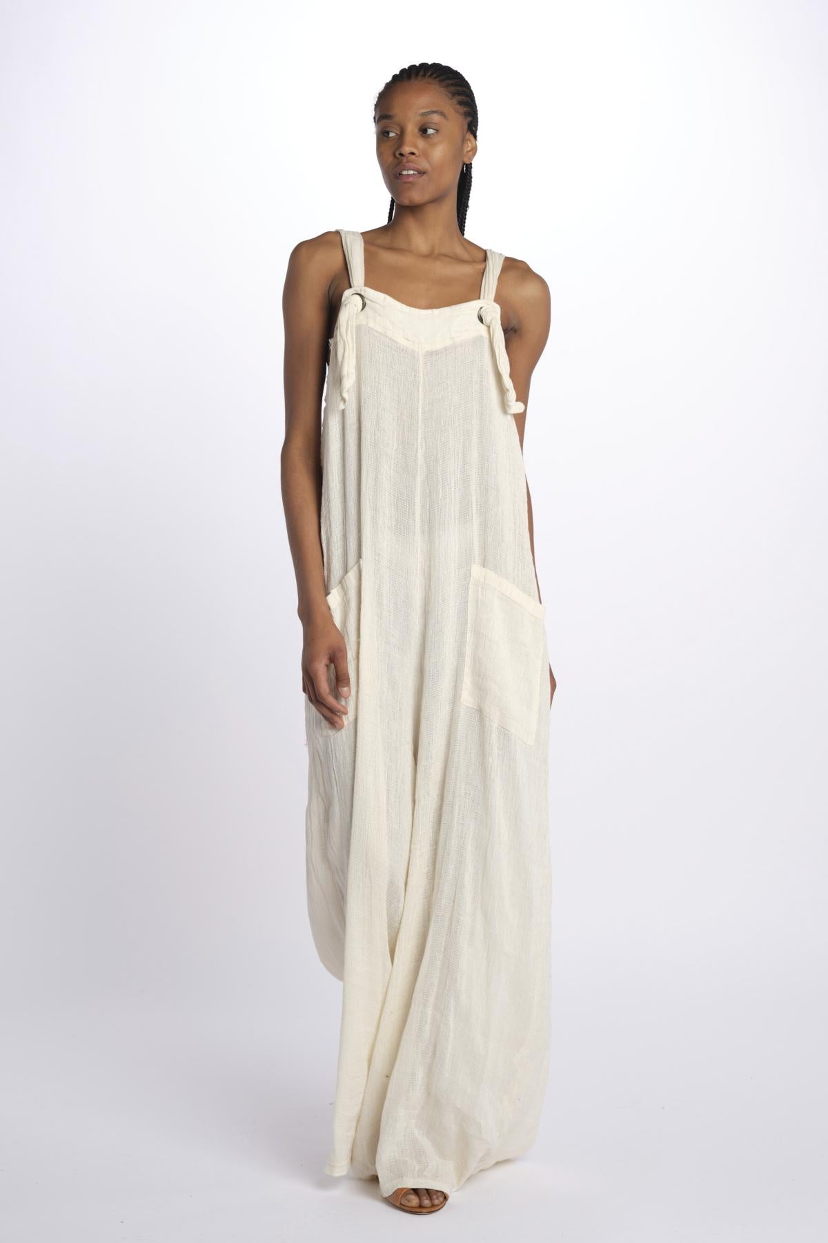 JAMAICA jumpsuit by la strega. The model is 174 cm tall and wears a one size. Composition: 100% cotton.