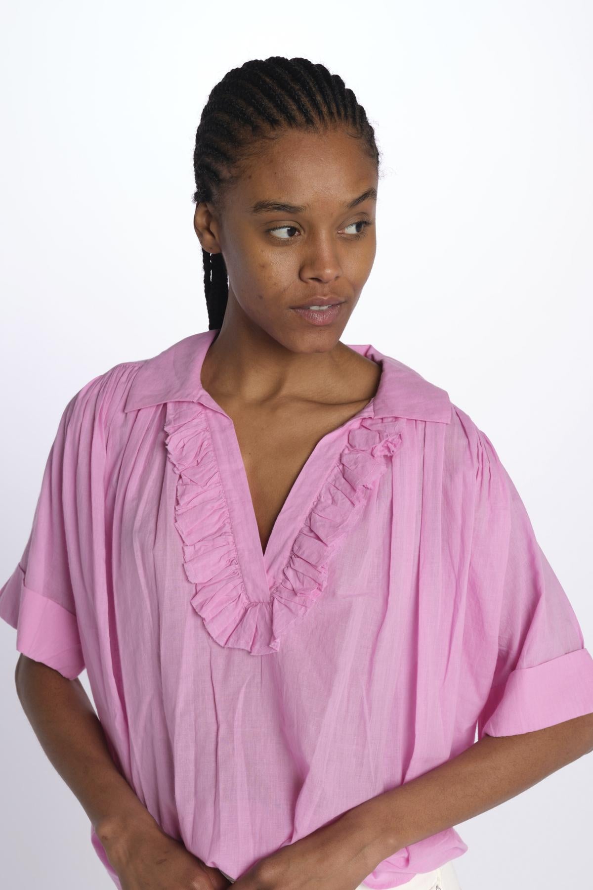 DIDI over voile shirt with ruffles by laurence bras. The model is 174 cm tall and wears a 36 (IT40). Composition: 100% cotton.