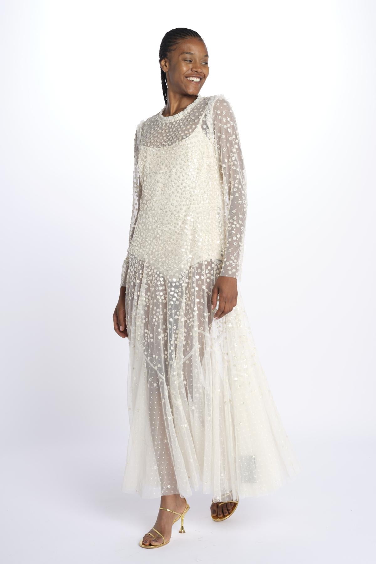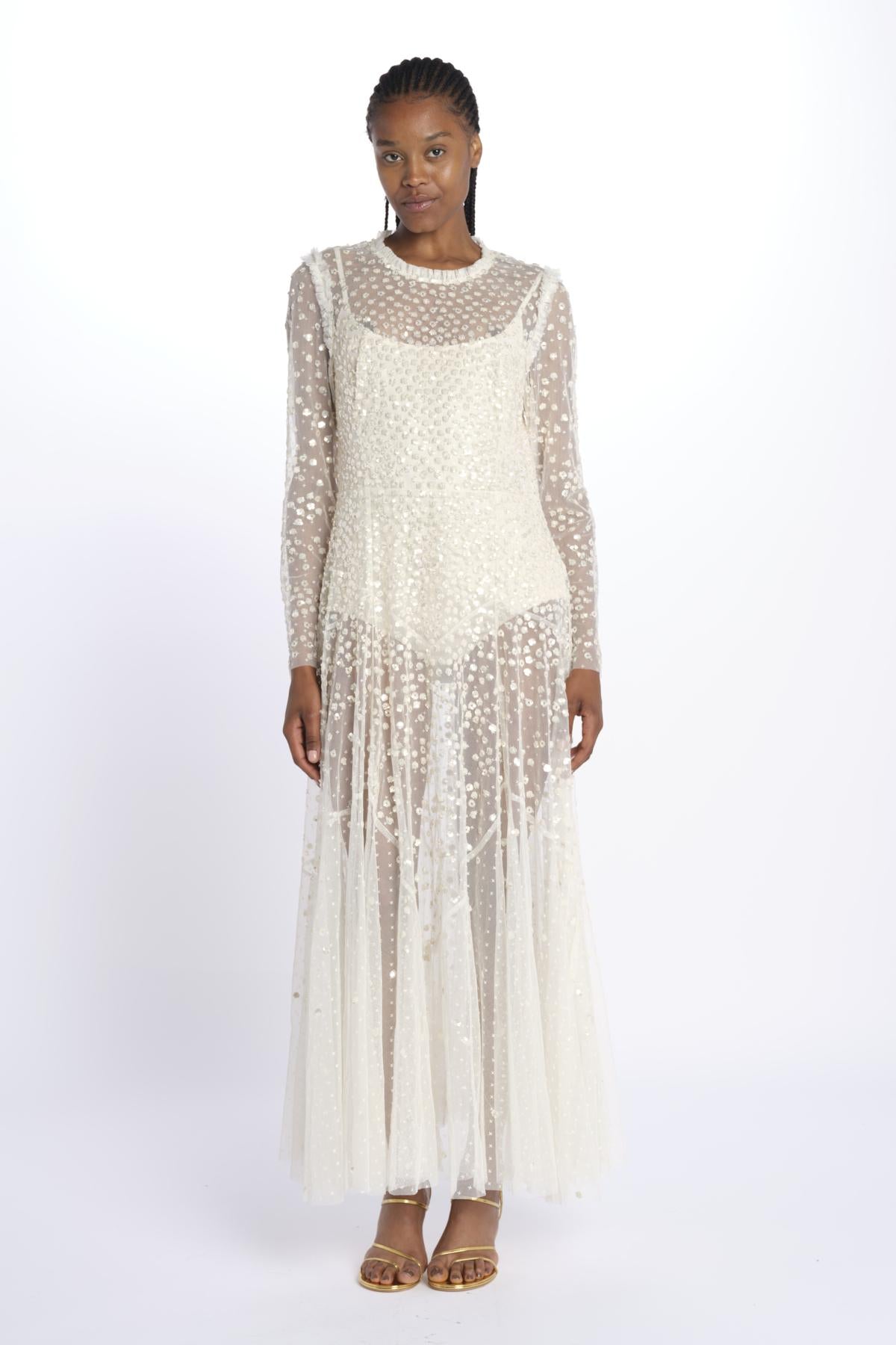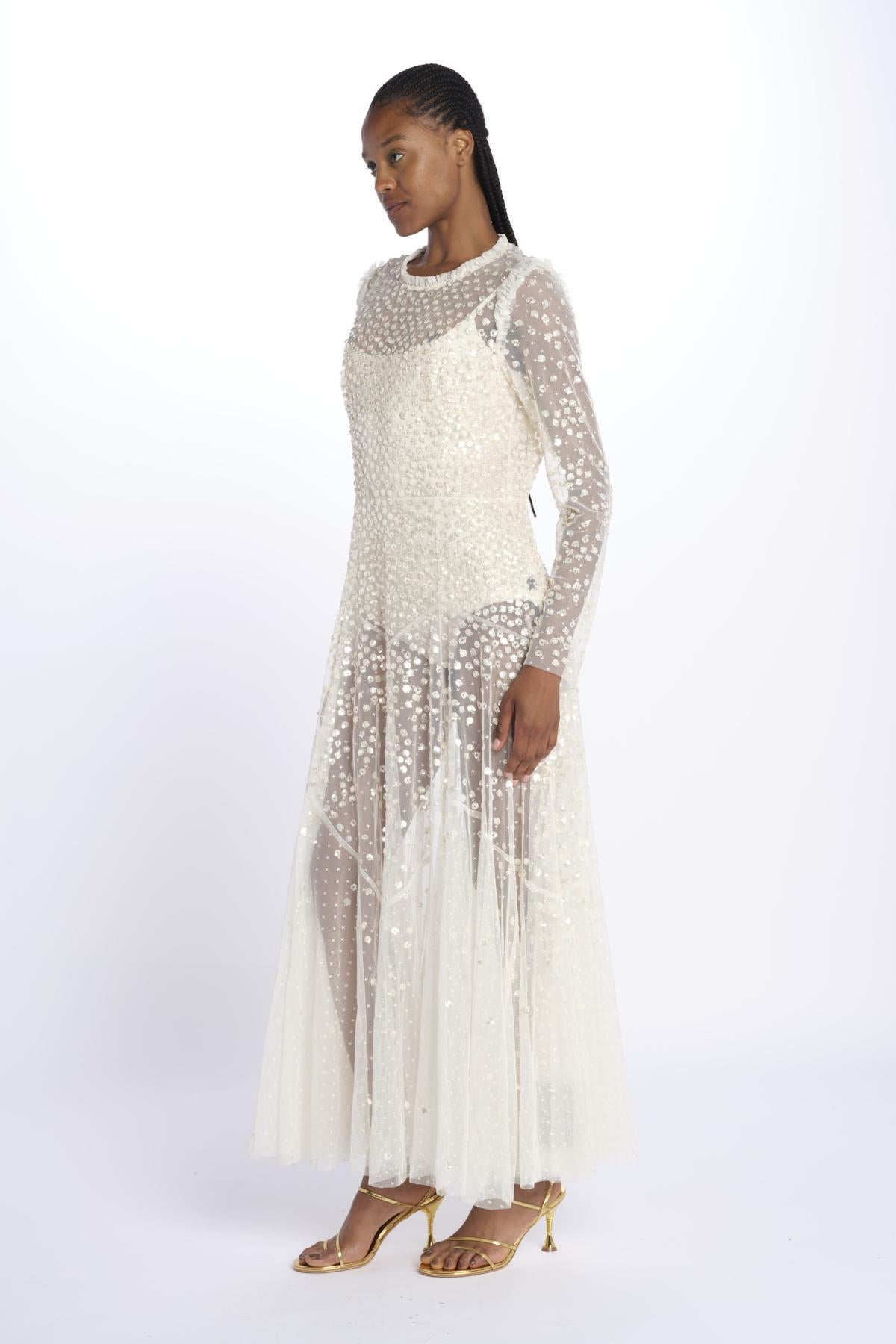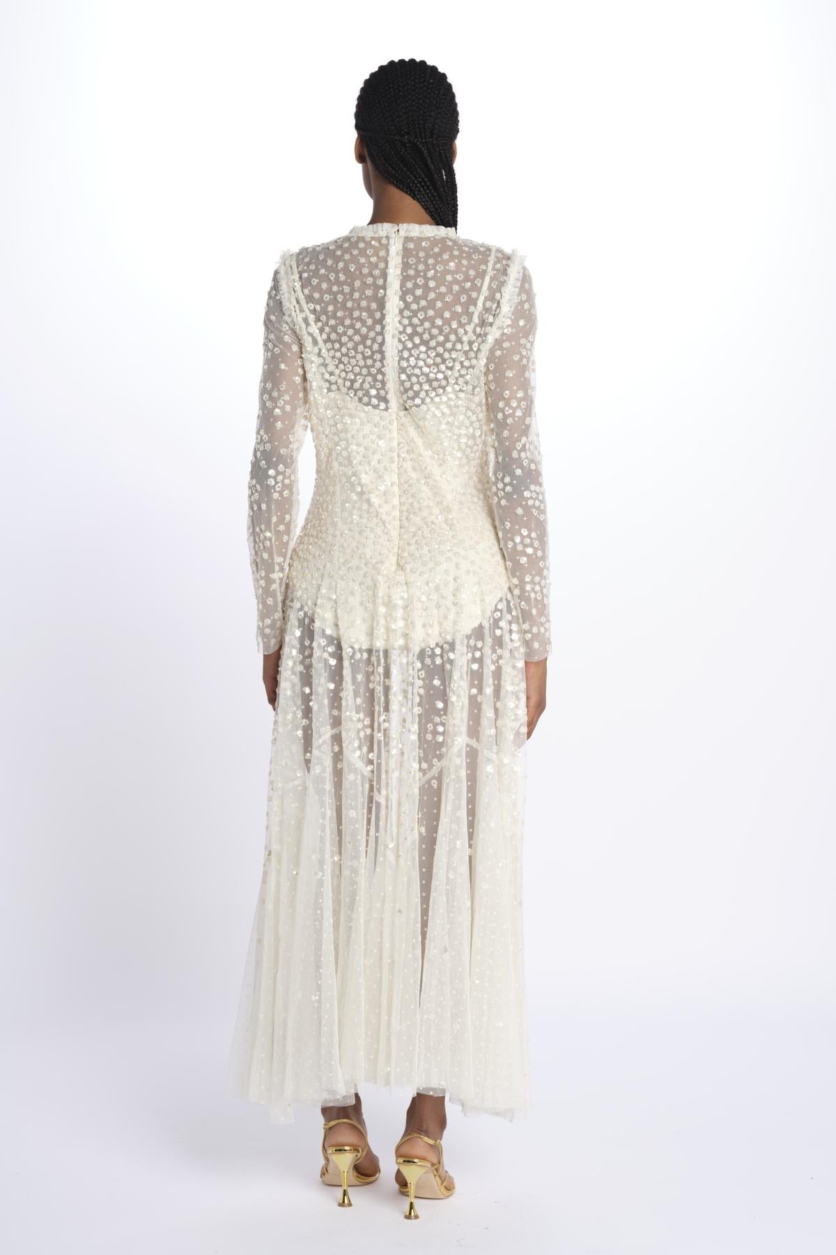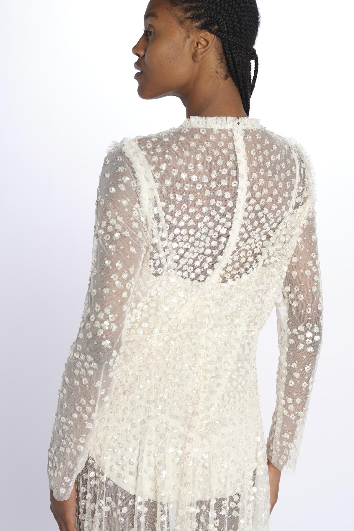 LEILA DOT SHEER by eedle & tread. The model is 174 cm tall and wears a size 10. Composition: 100% polyester.